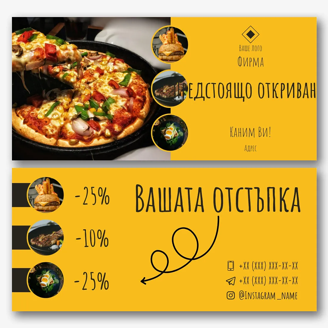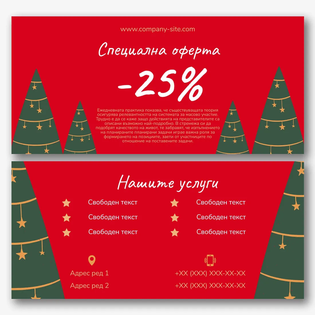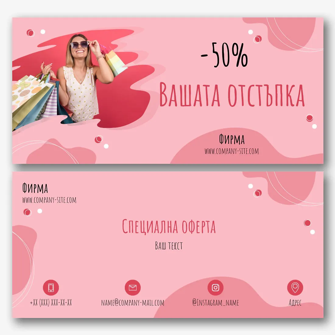 | 100 бр. (двустранни) | 47,90 лв. | 71,85 лв. | 119,75 лв. | 57,48 лв. | 1 работен ден |