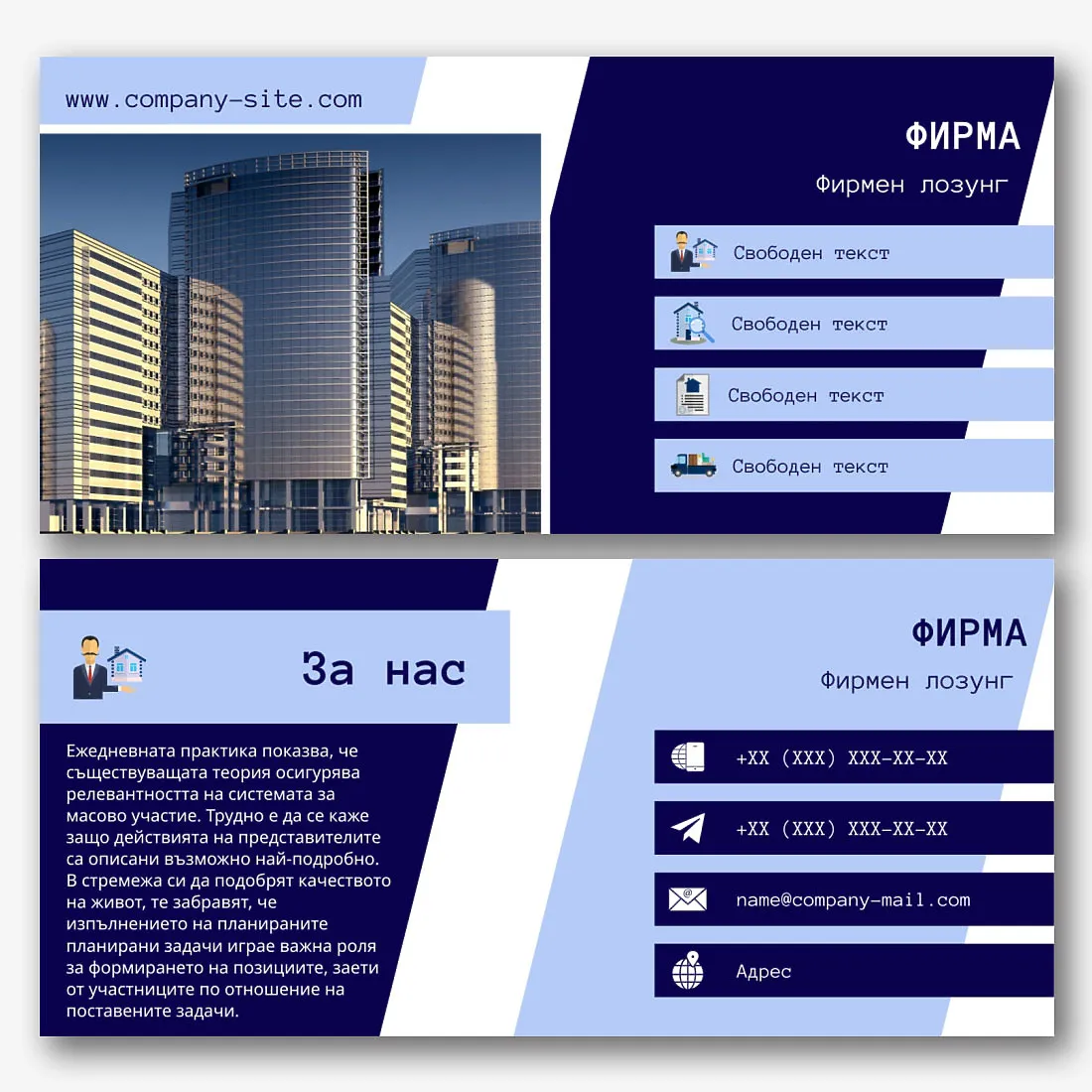 | 100 бр. (едностранни) | 34,90 лв. | 52,35 лв. | 87,25 лв. | 41,88 лв. | 1 работен ден |