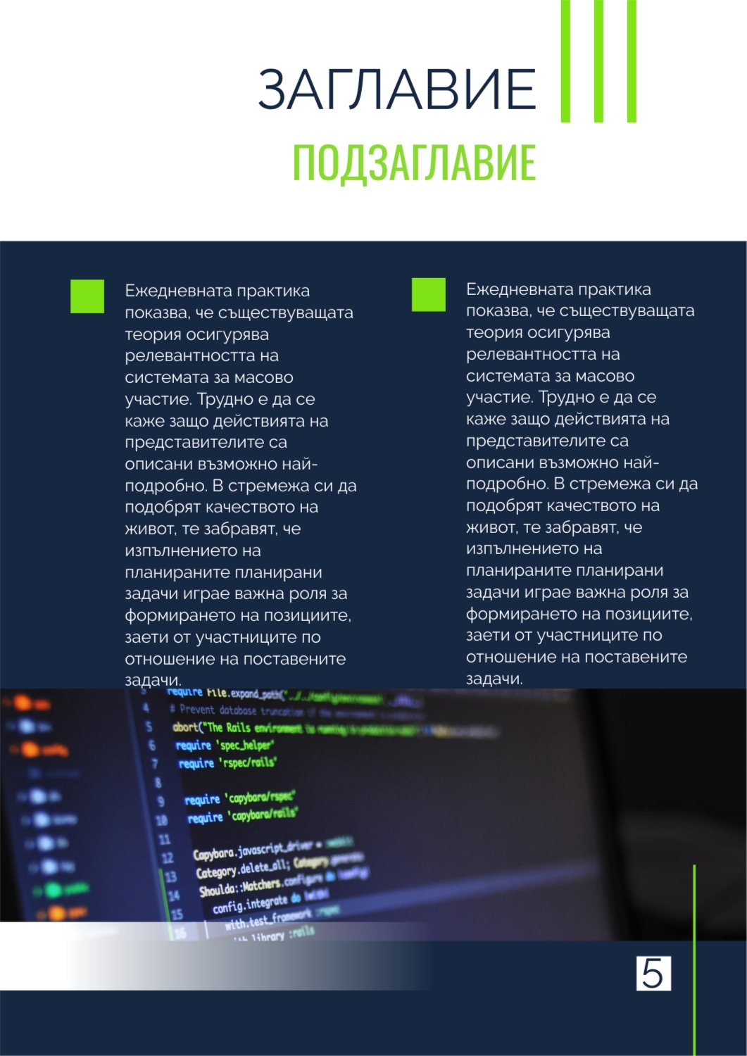 - Оформлението трябва да бъде направено с отстъп (bleed) от всички страни.