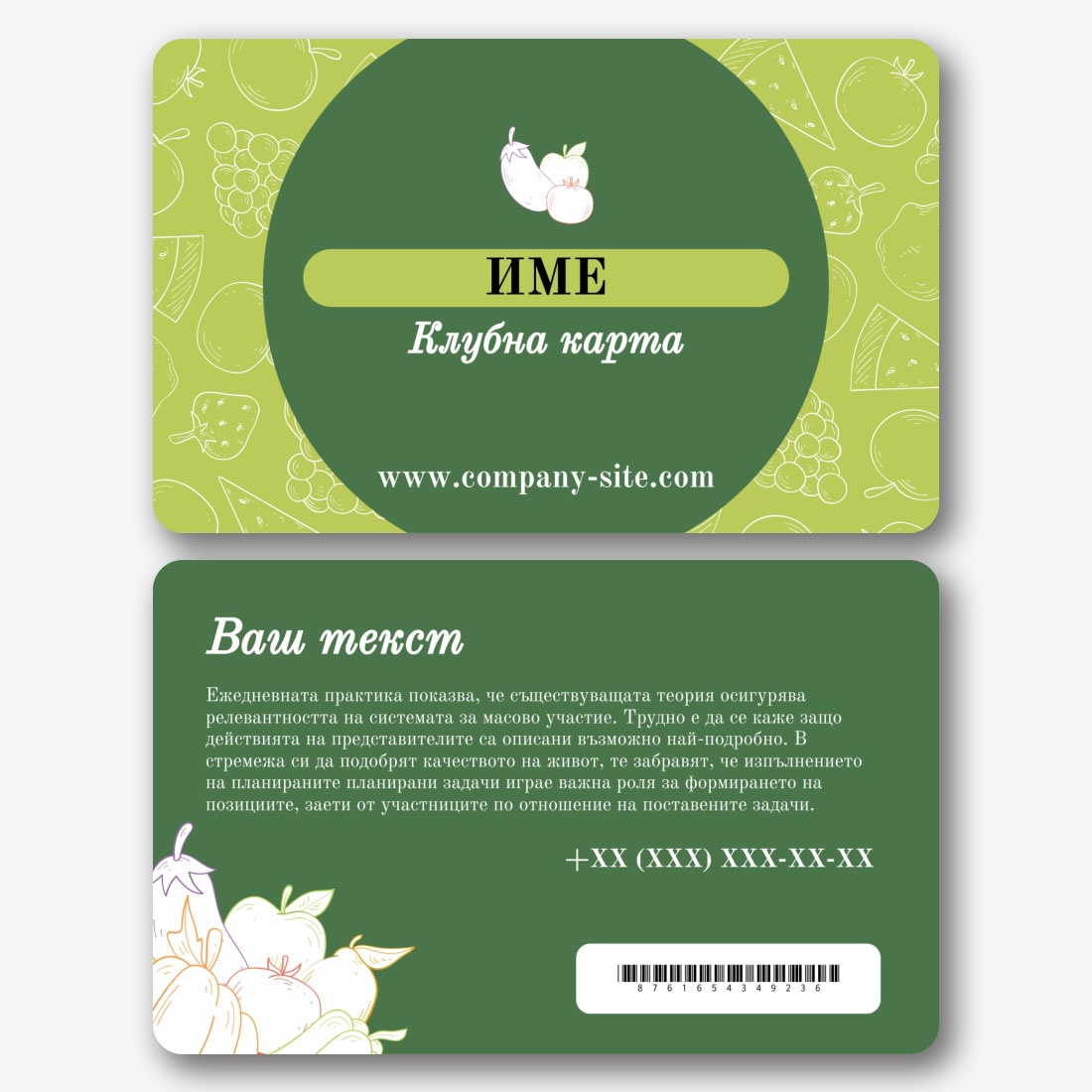Шаблон за клубна карта на зеленчуков магазин