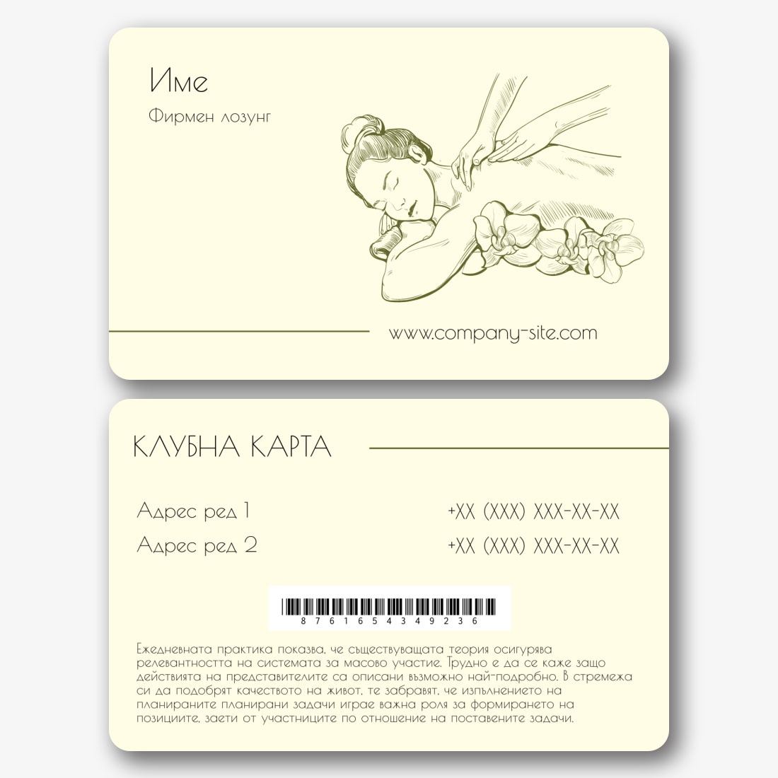 Шаблон за клубна карта на СПА салон