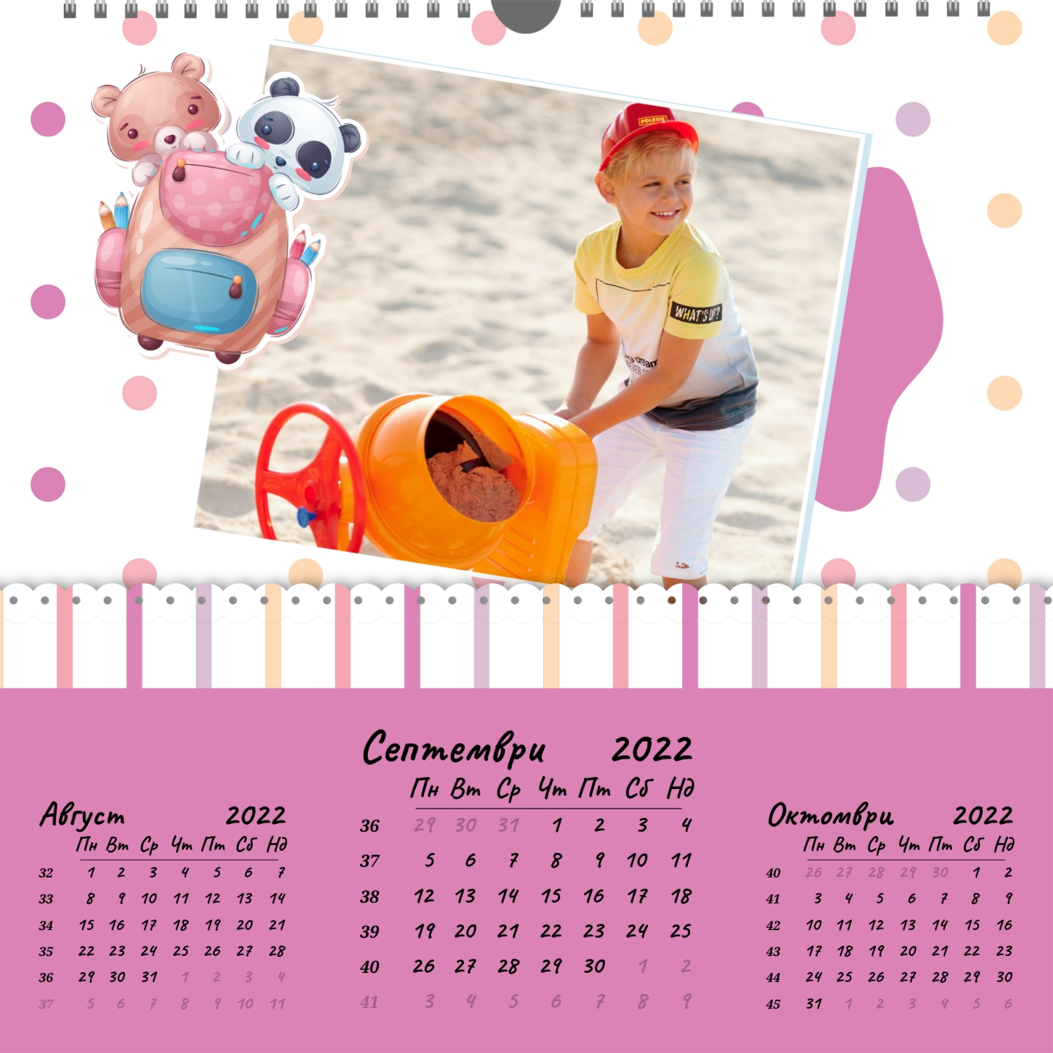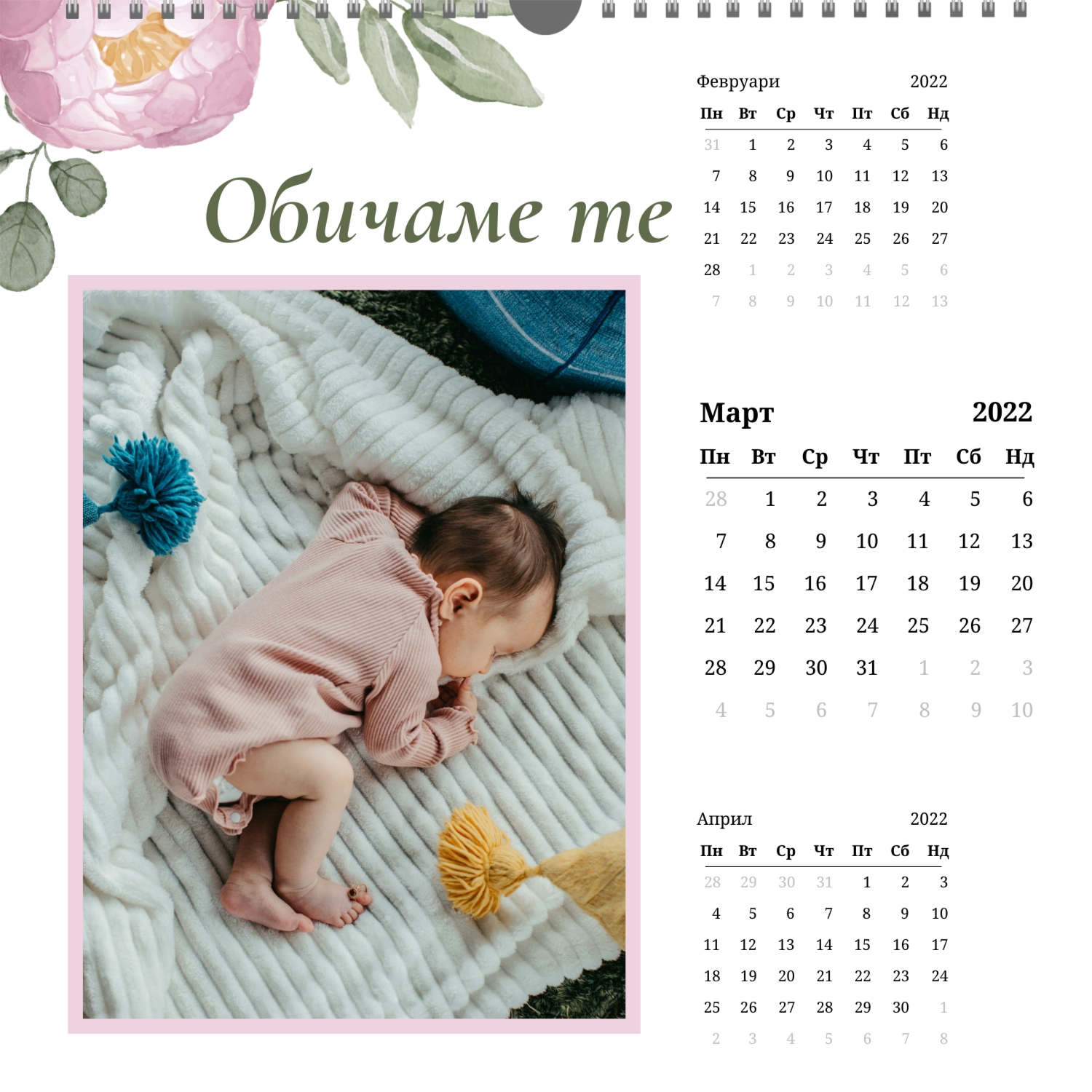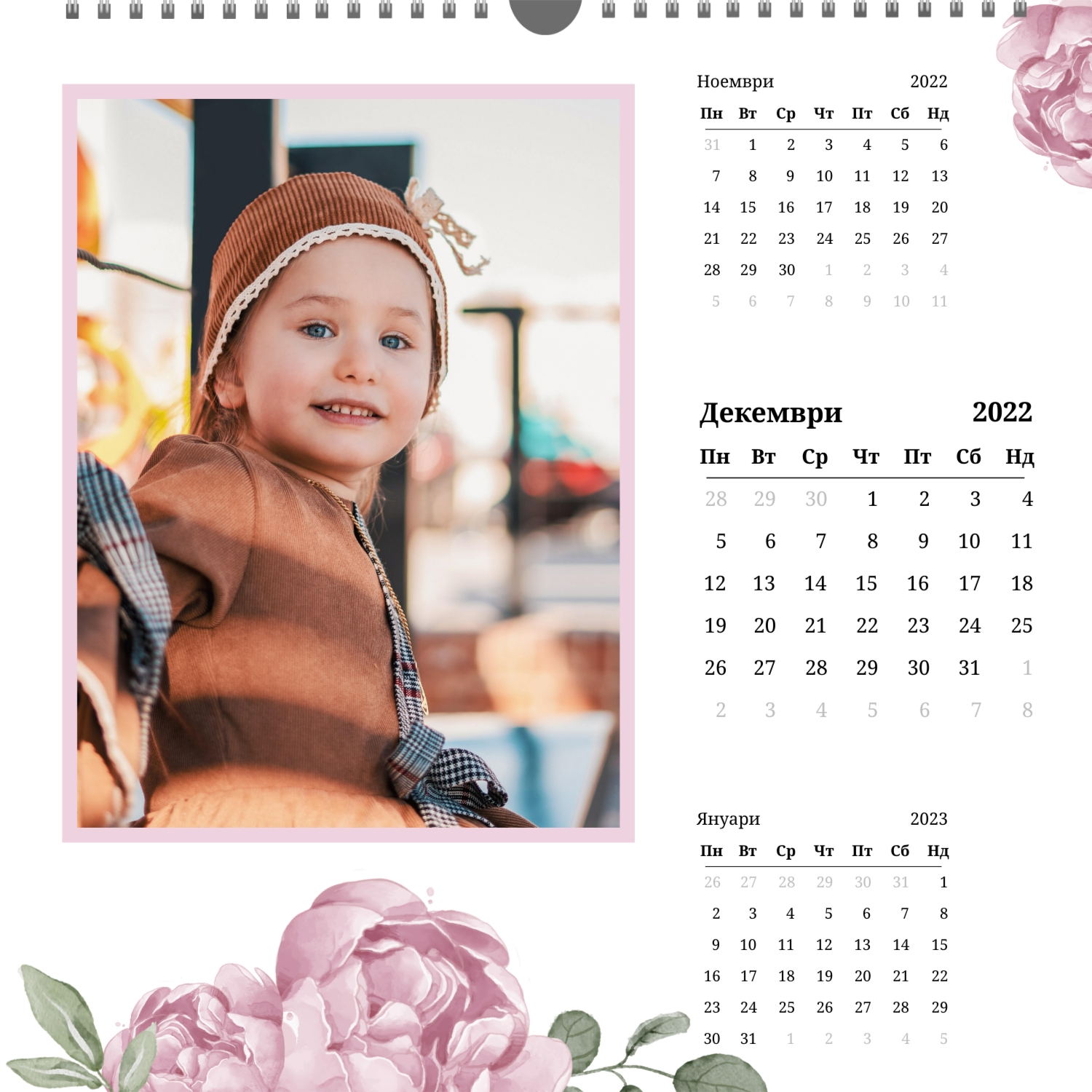 - Квадрат (210x210) – малък фото календар, подходящ за детски или романтични снимки.