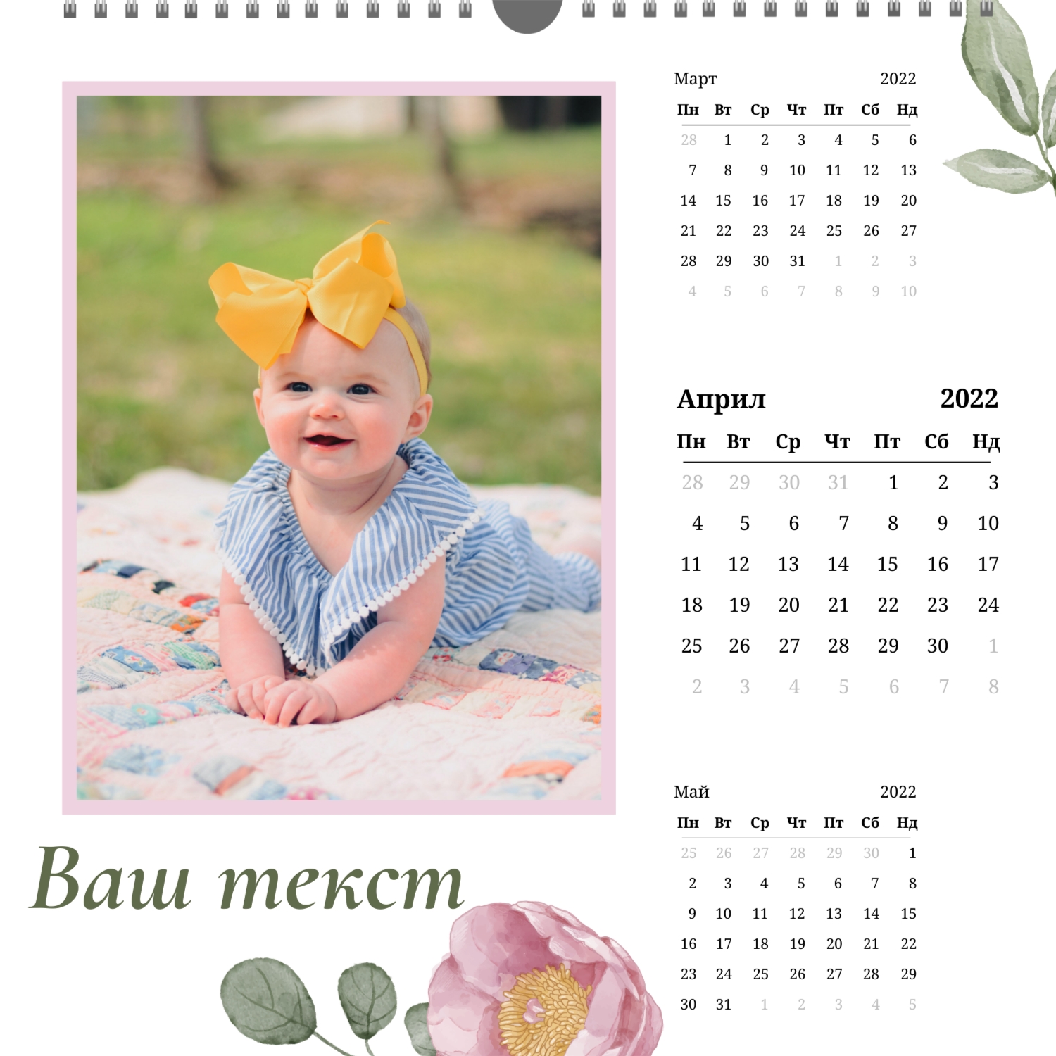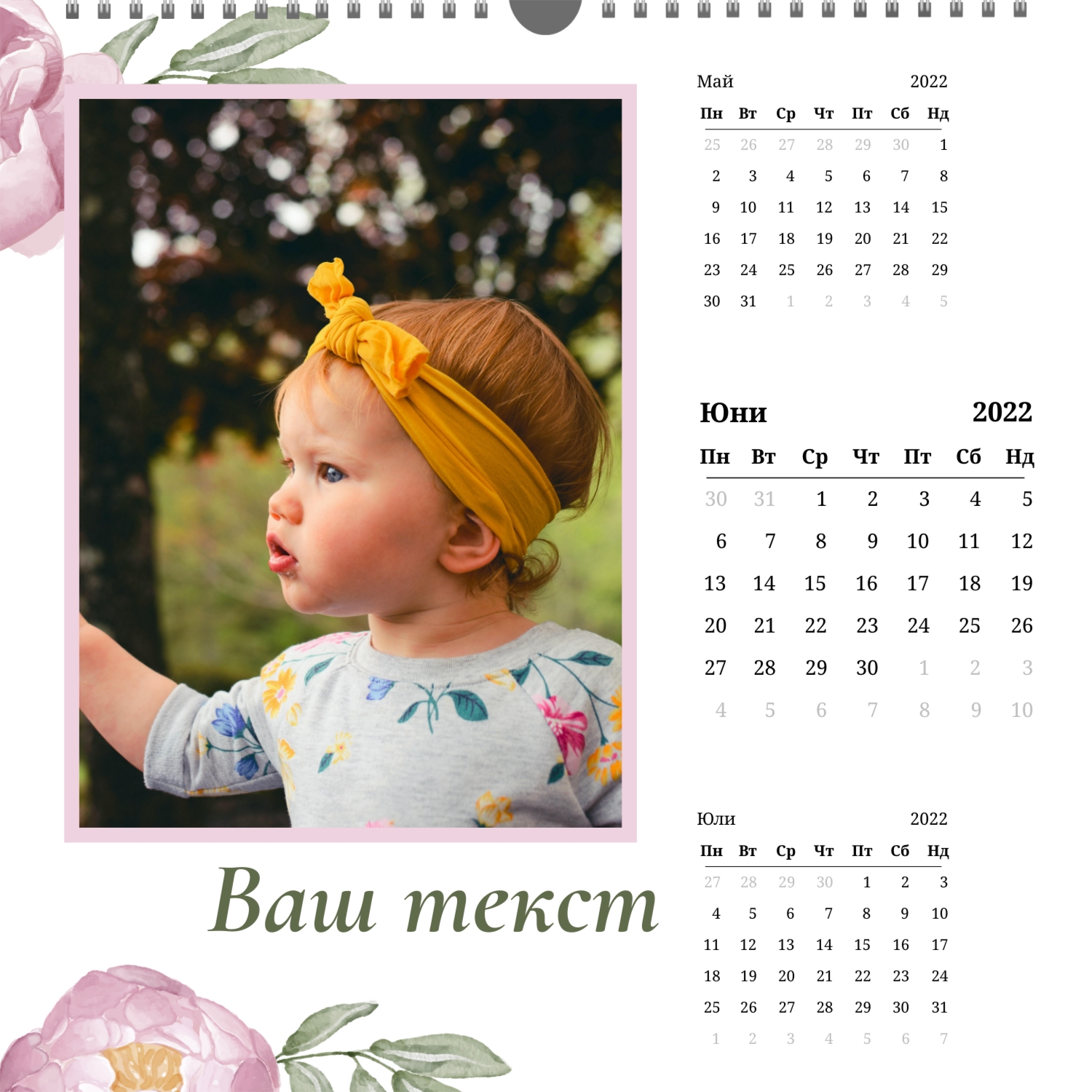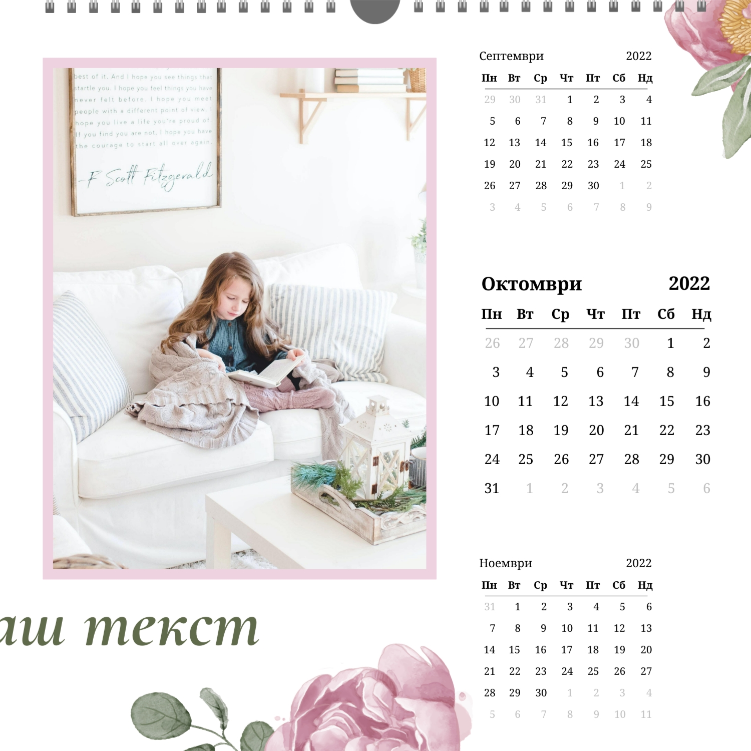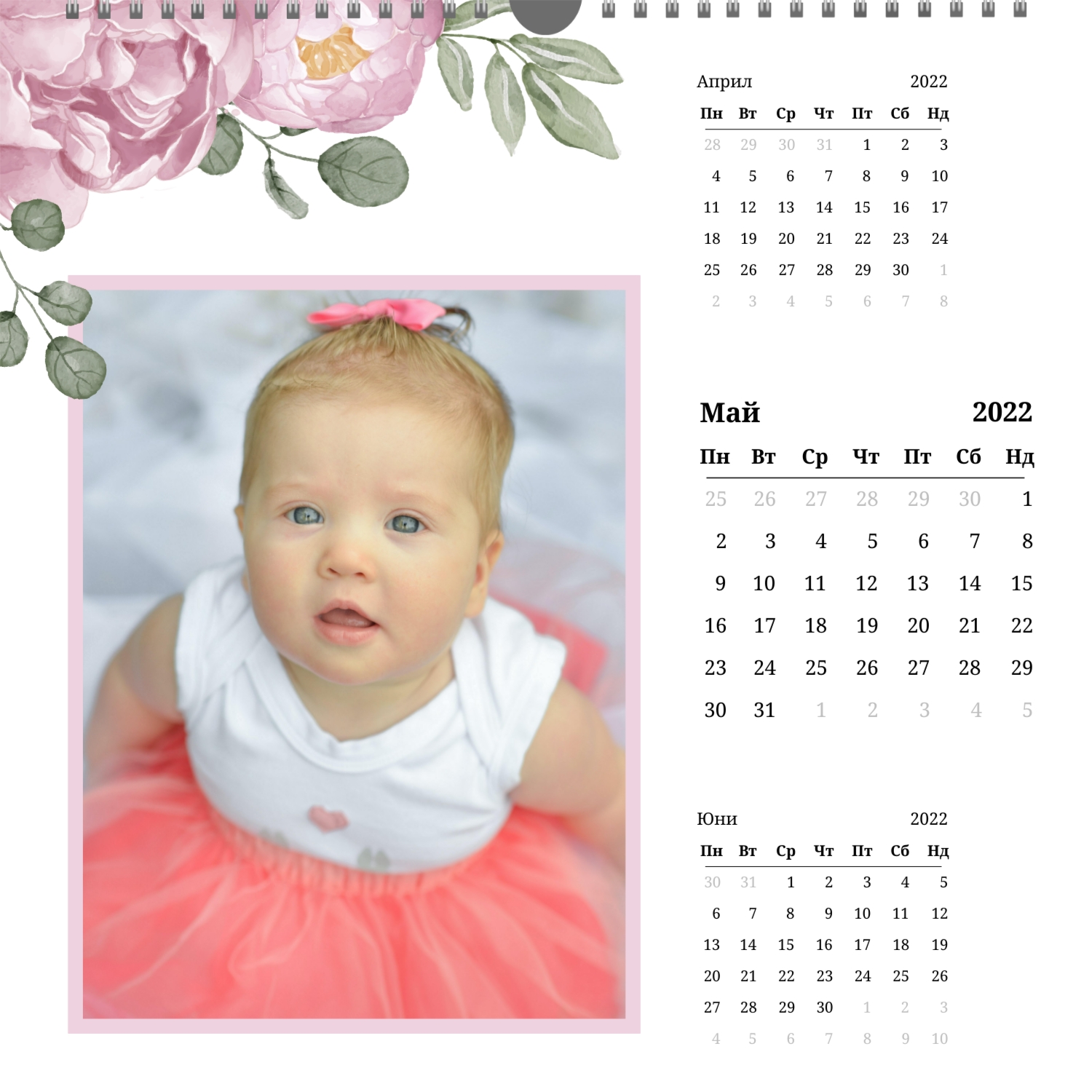 - Квадрат (210x210) – малък фото календар, подходящ за детски или романтични снимки.
