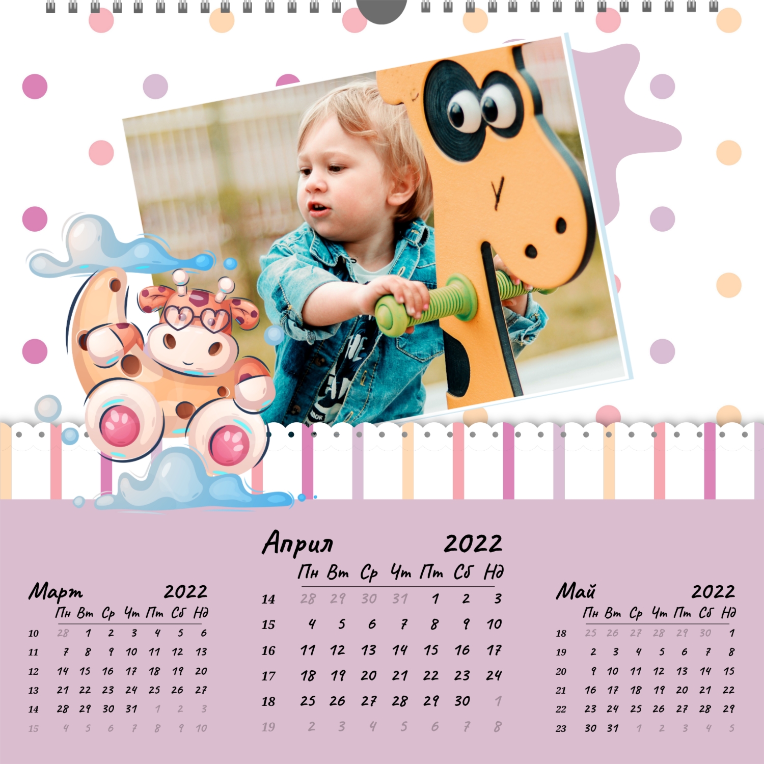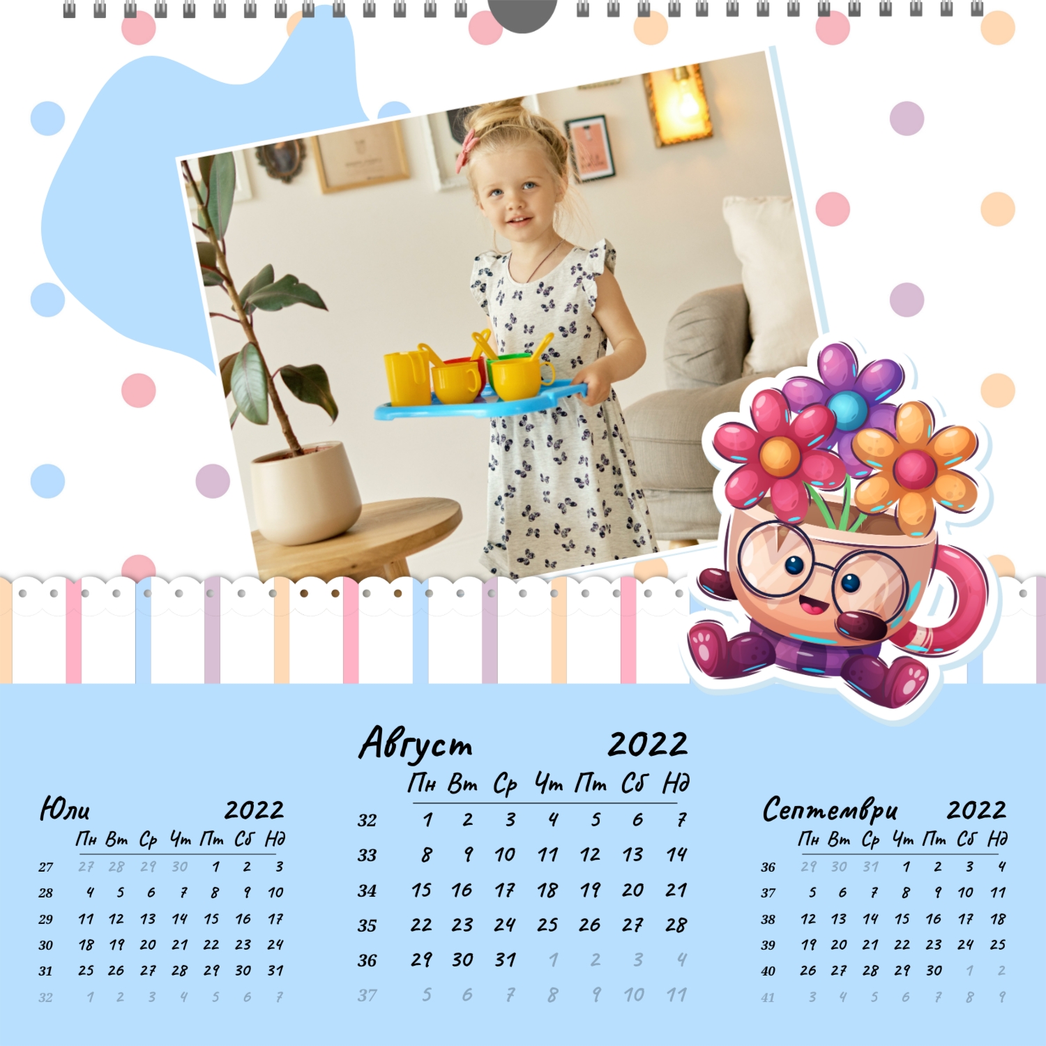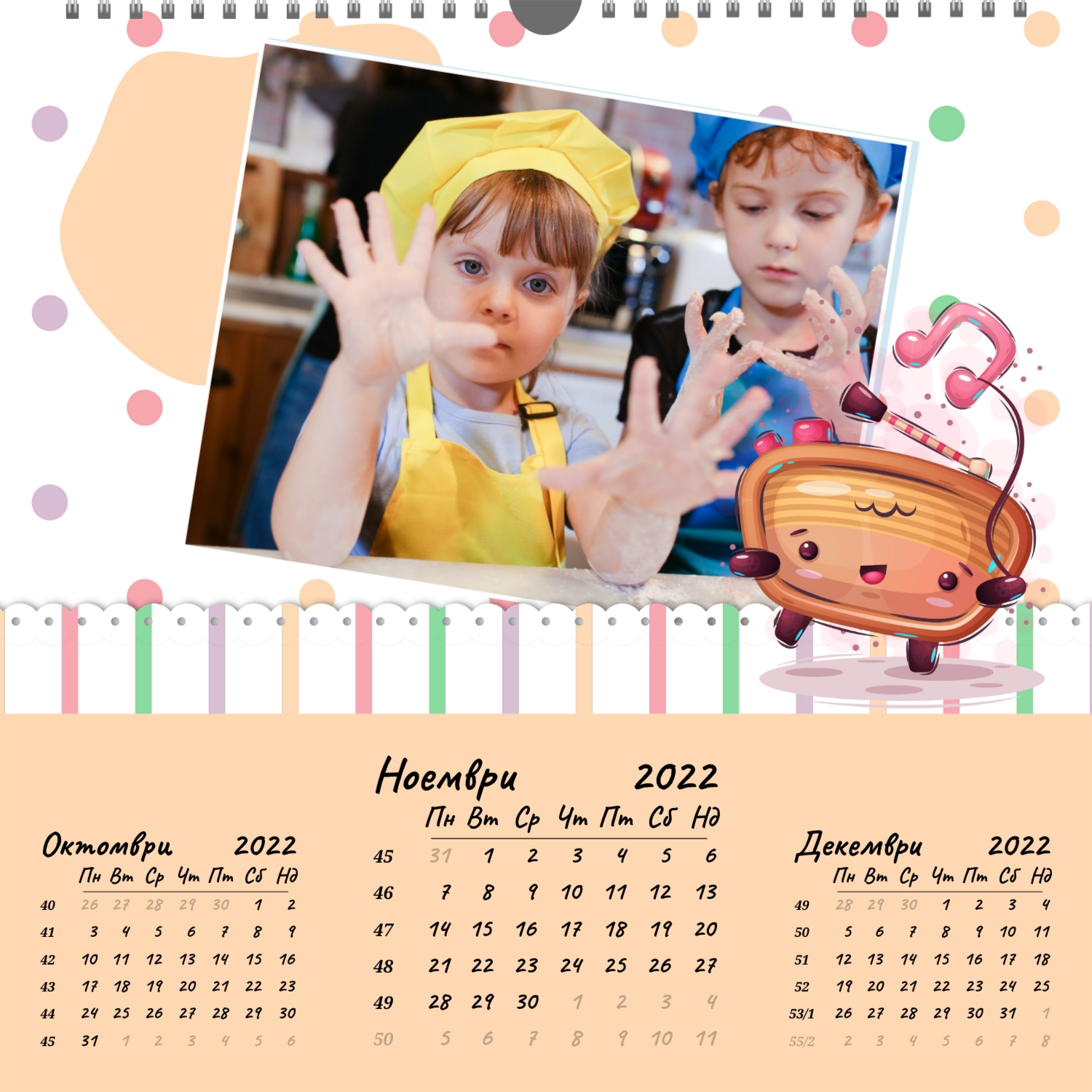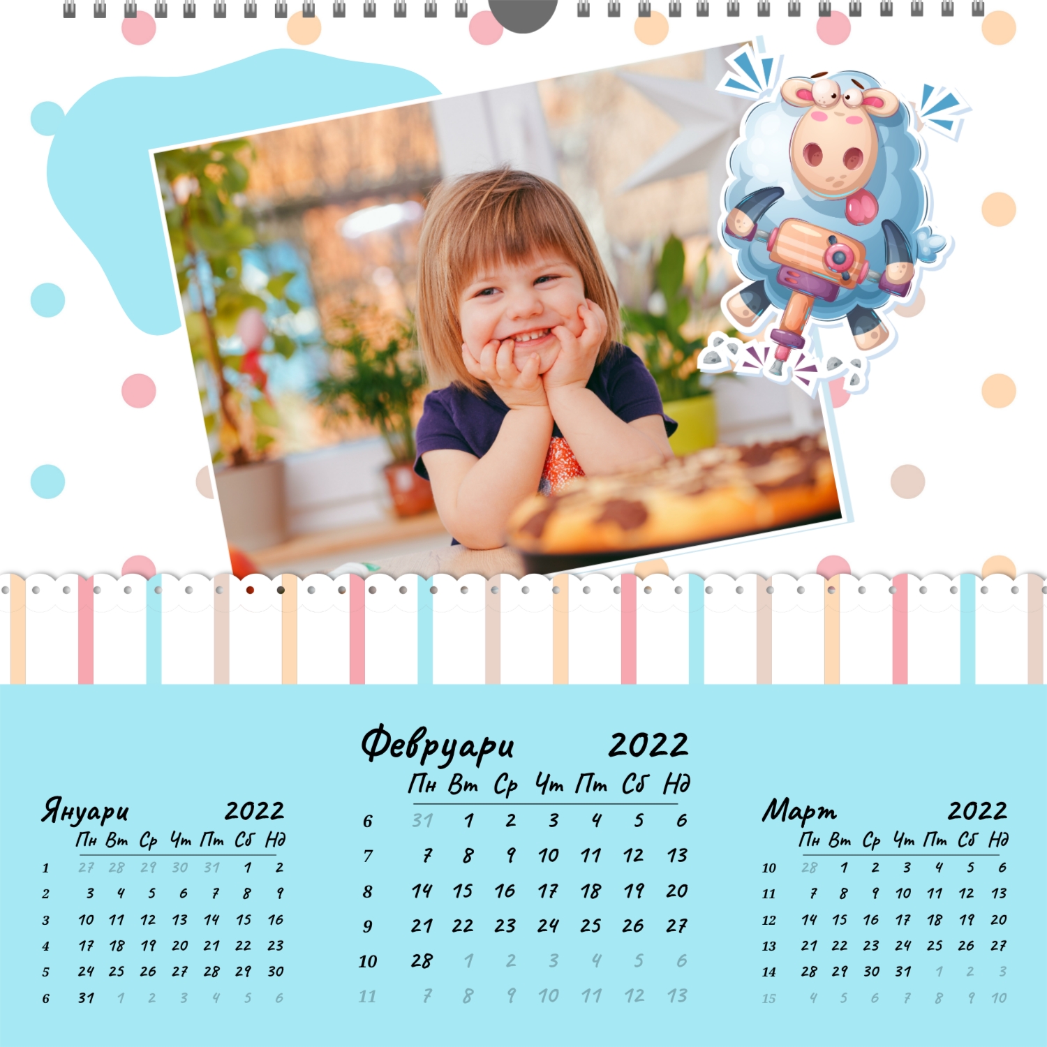 Стенният фото календар е незаменим атрибут за Новогодишните празници. Това е прекрасен подарък за приятели, колеги, партньори. Съвременните технологии за дигитален печат Ви позволяват да създадете уникален стенен фото календар за и при това да направите тираж дори в едно копие. Поръчайте този стенен фото календар със семейни снимки и той ще бъде прекрасен подарък за цялото семейство.