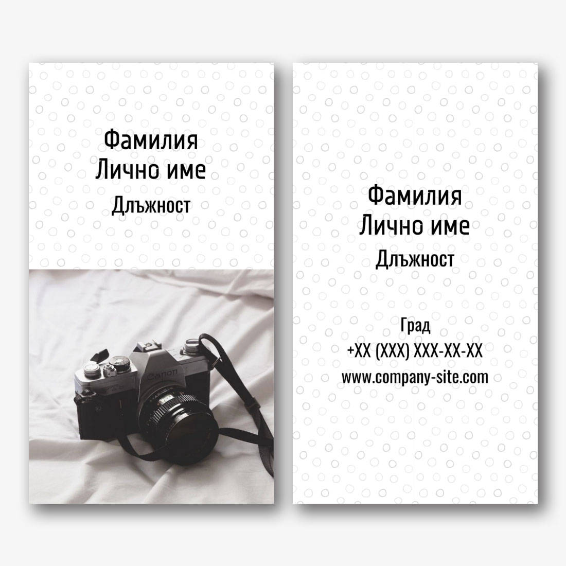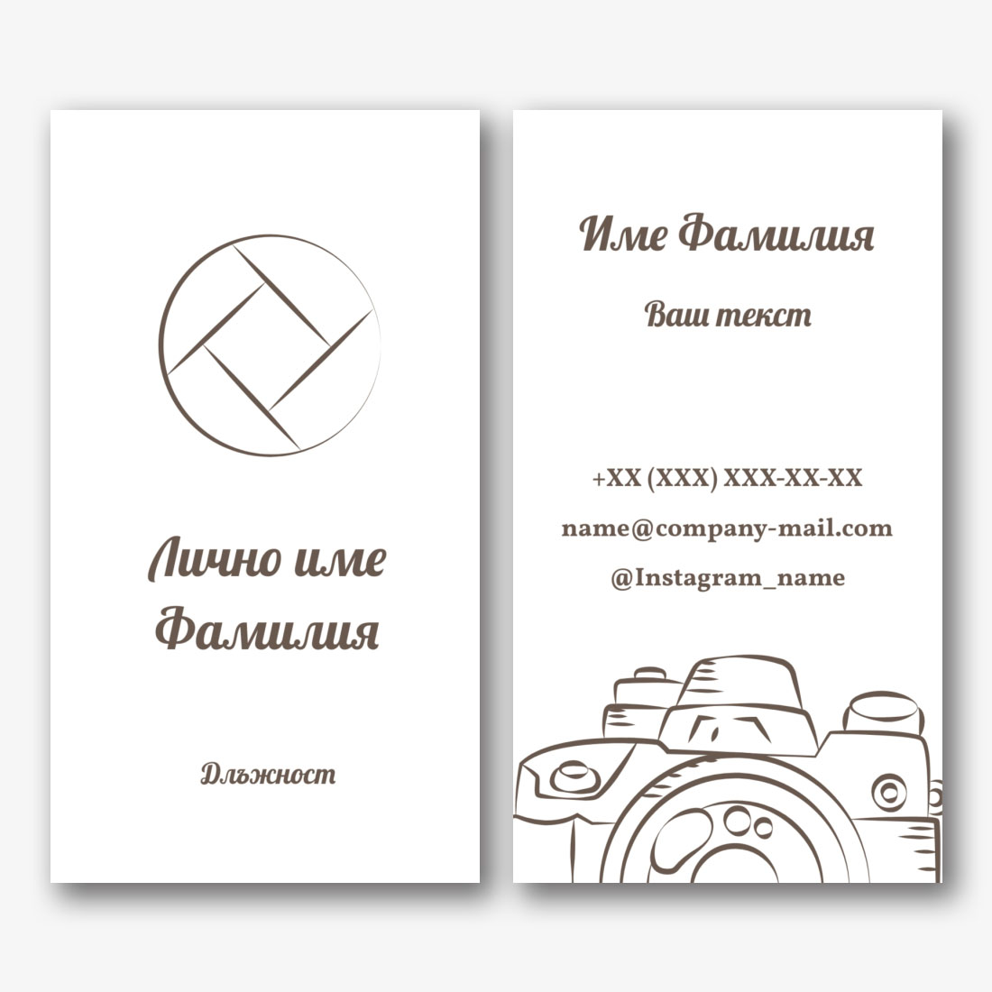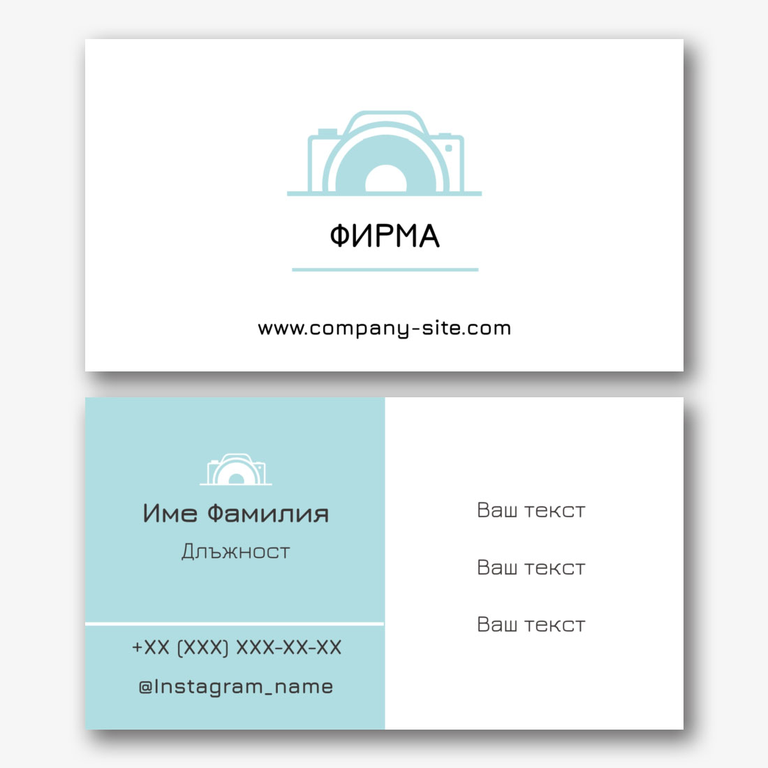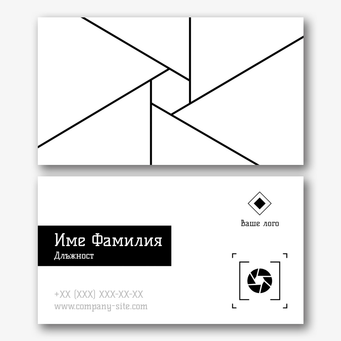 Безплатен шаблон за визитка за Фотостудио и фотографи. Създайте оформление на визитка със собствените си ръце в дизайнера на визитки.