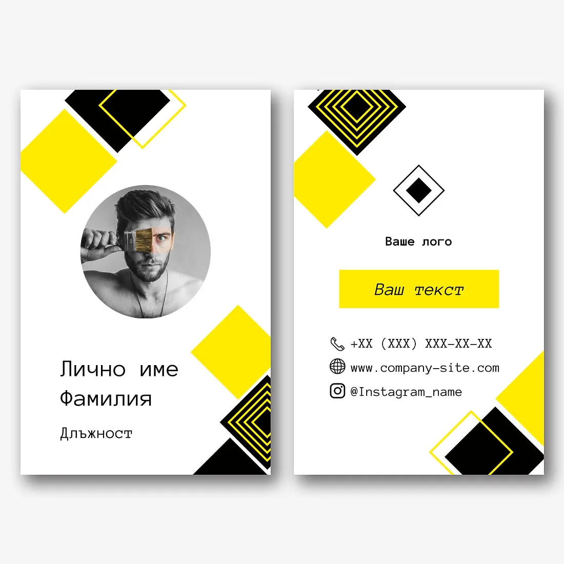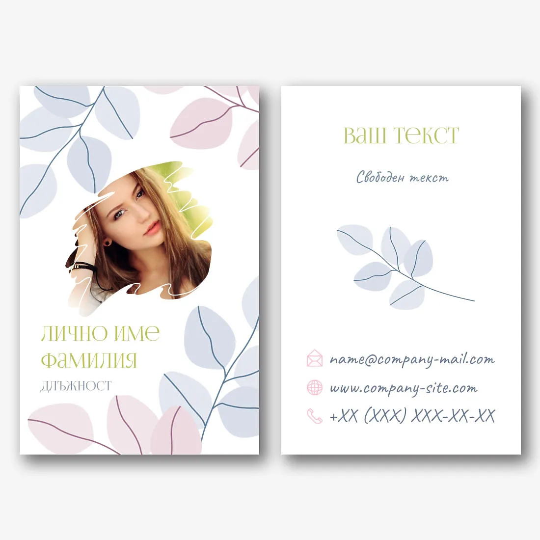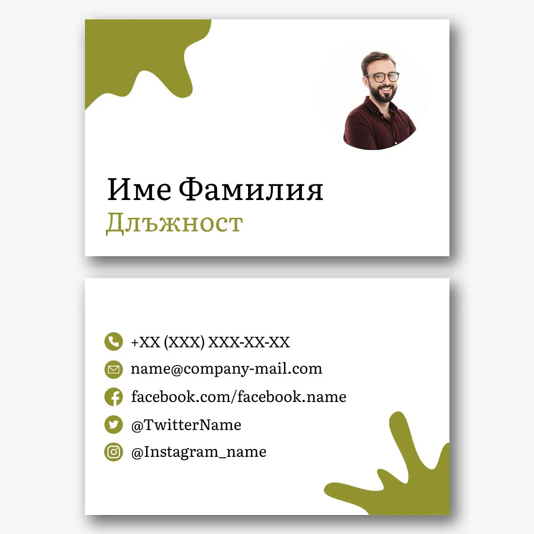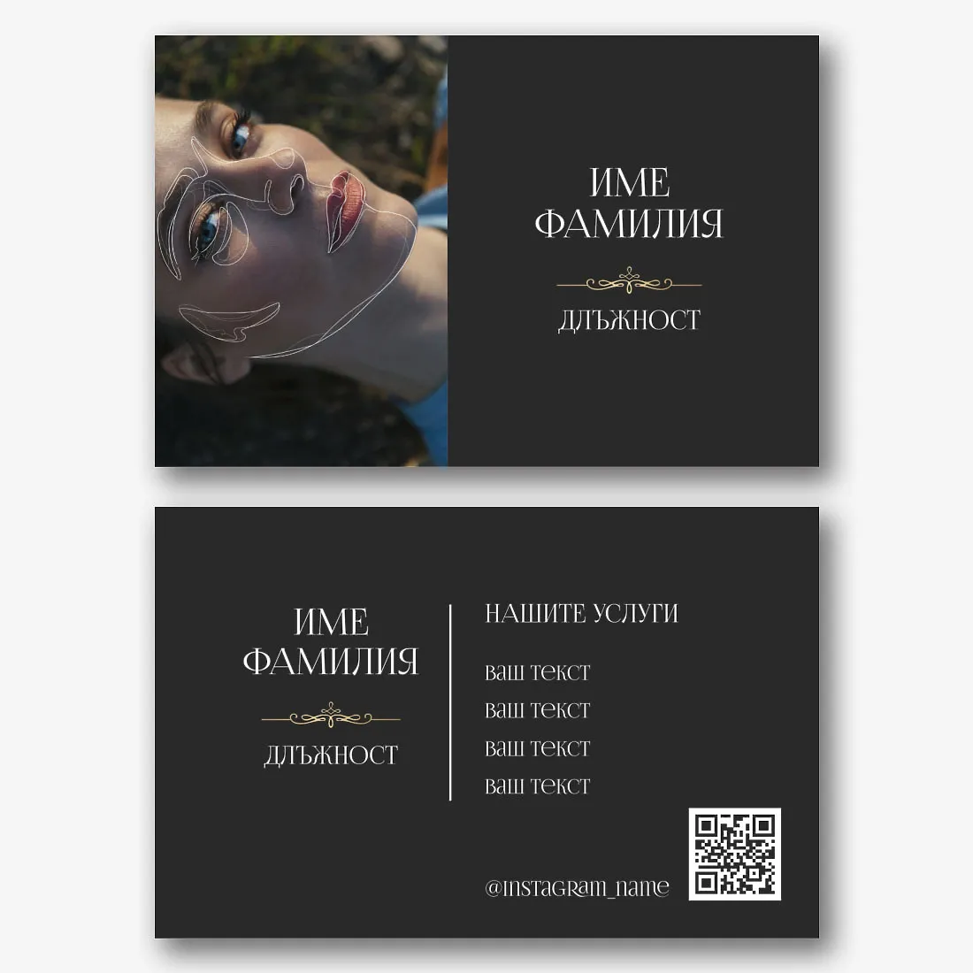Безплатен, стилен шаблон за лична визитка със снимка. Създайте оформление на визитка със собствените си ръце в конструктора на визитки.