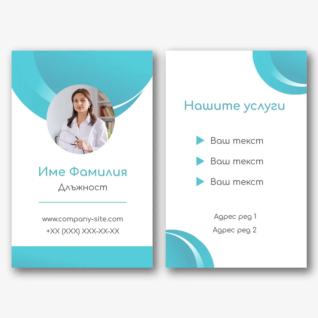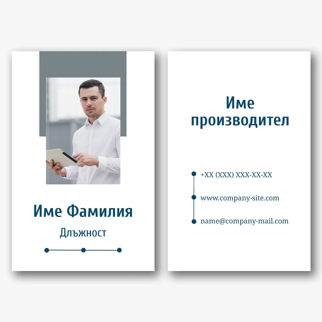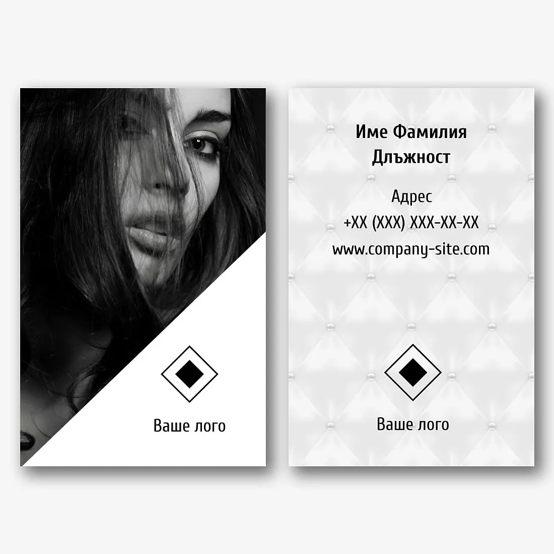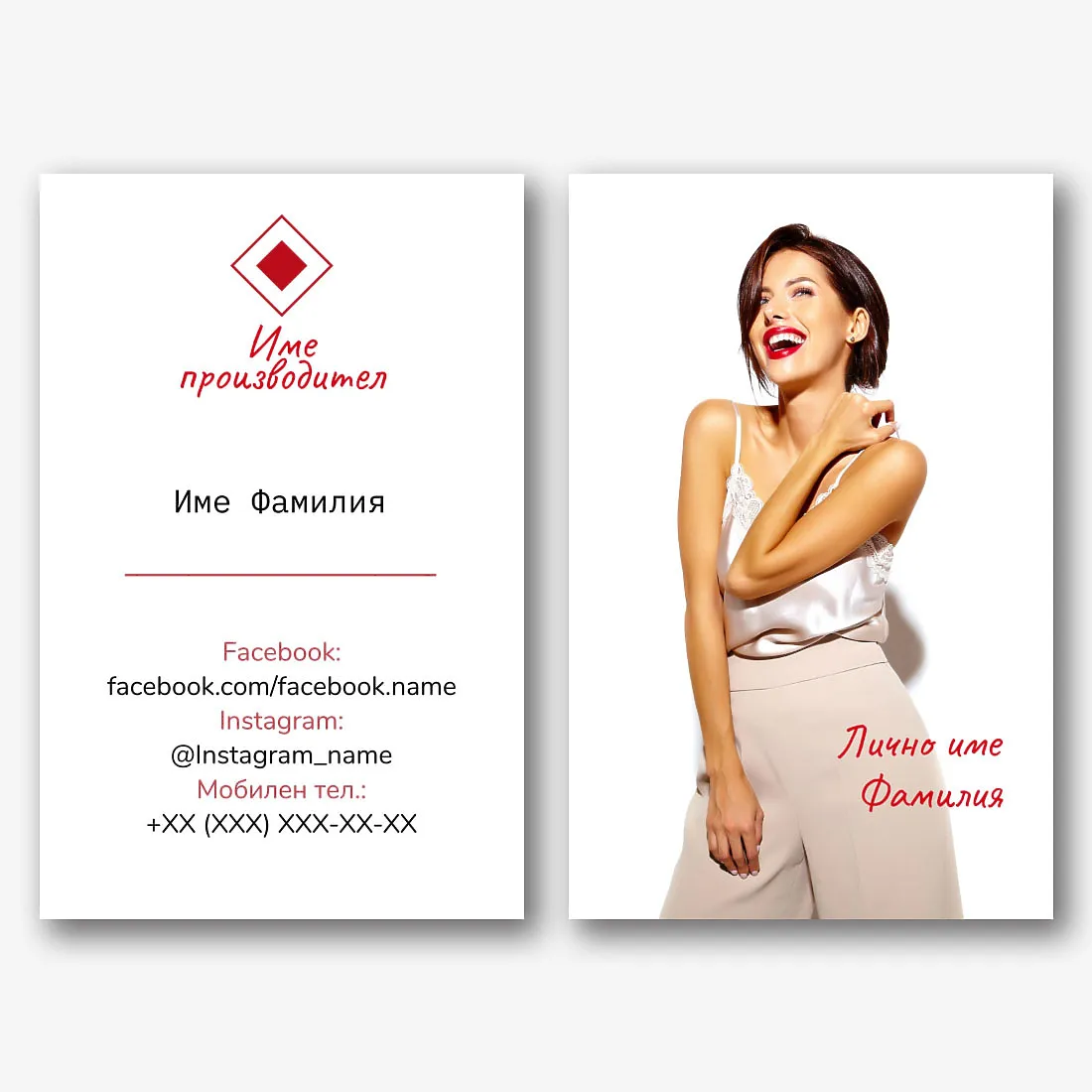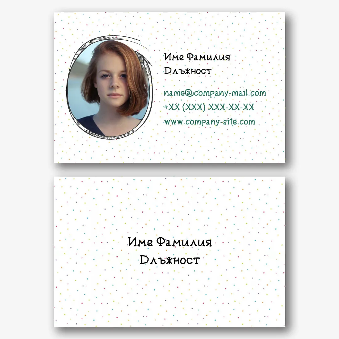 Безплатен, стилен шаблон за лична визитка със снимка. Създайте оформление на визитка със собствените си ръце в конструктора на визитки.