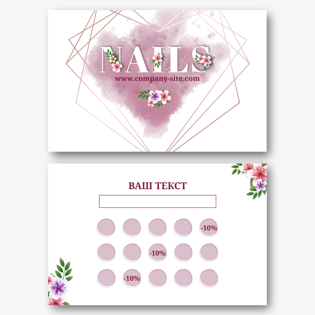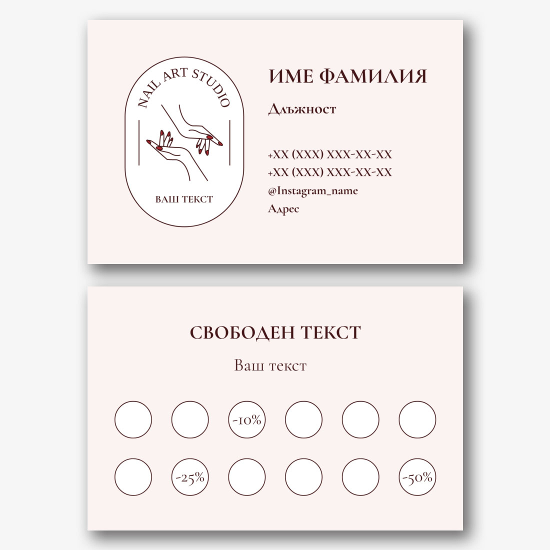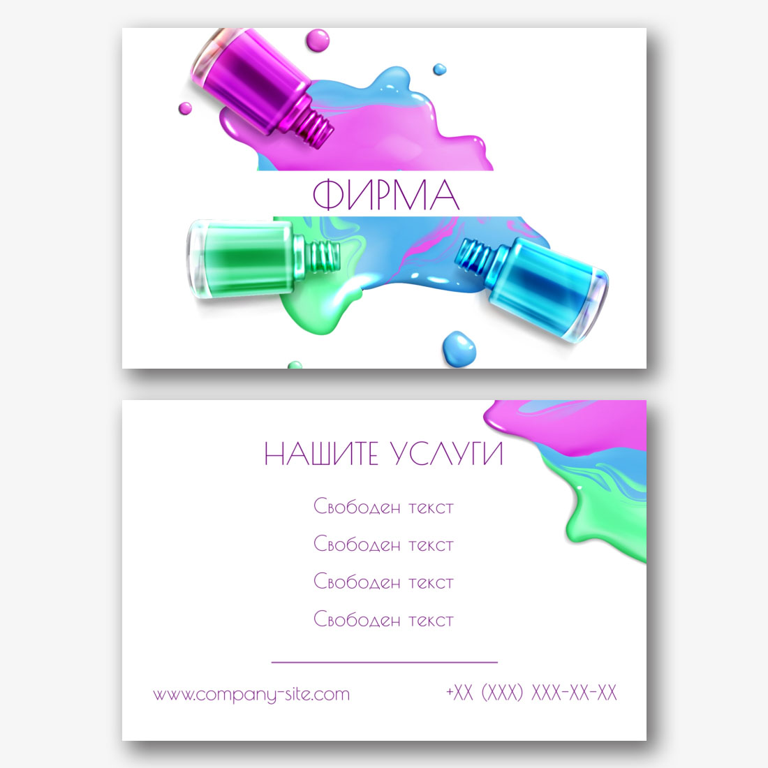 Безплатен шаблон за визитка за салон за красота, Маникюрист. Създайте оформление на визитка със собствените си ръце в дизайнера на визитки.