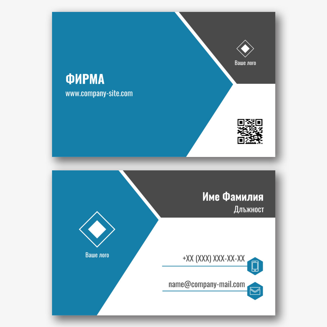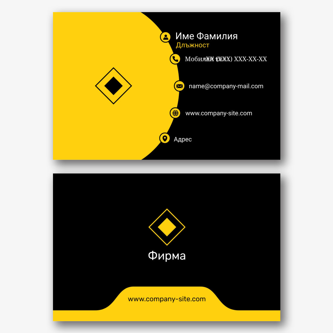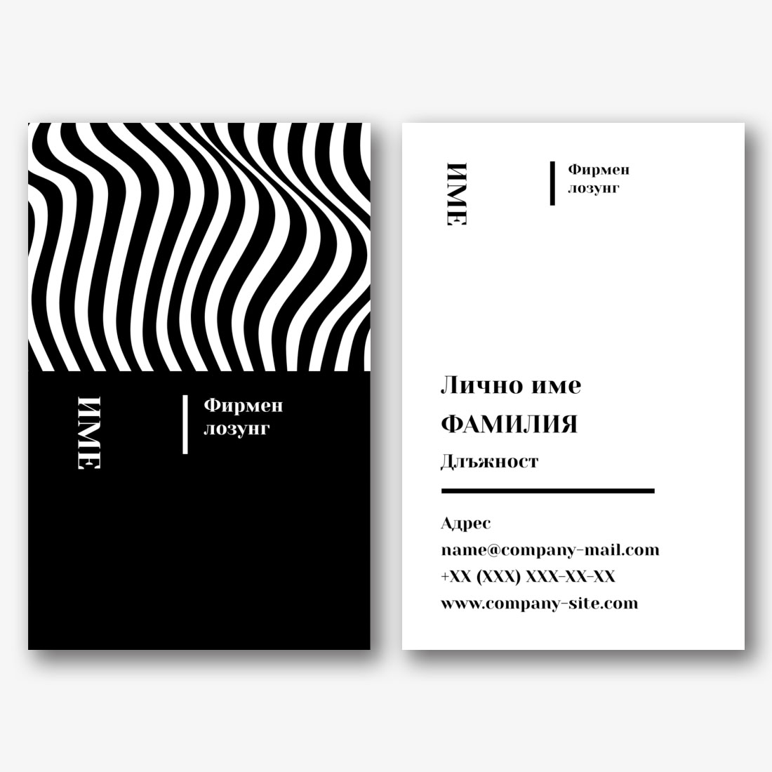 Безплатен шаблон за модерна, абстрактна визитка със символи. Създайте оформление със собствените си ръце в дизайнера на визитки.