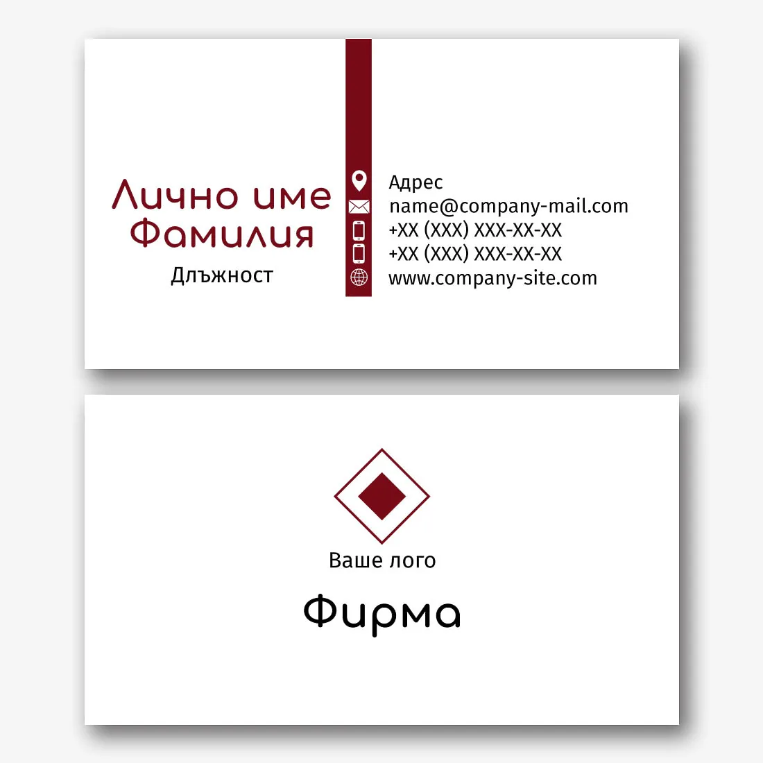 Безплатен шаблон за проста, класическа визитка. Създайте оформление със собствените си ръце в дизайнера на визитки.