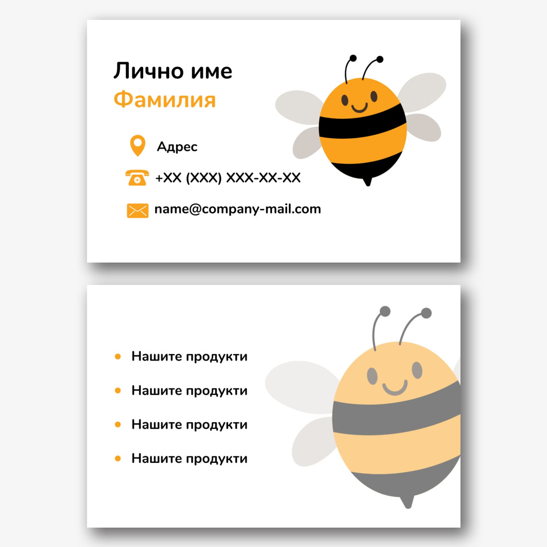 Безплатен шаблон за визитка за пчелина, пчелари и пчелари. Създайте оформление на визитка със собствените си ръце в дизайнера на визитки.