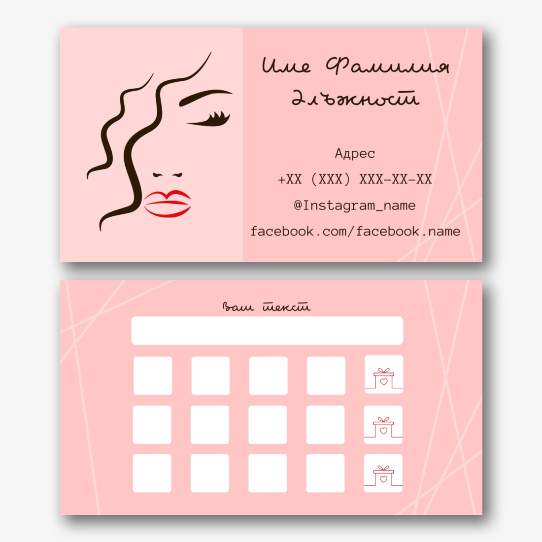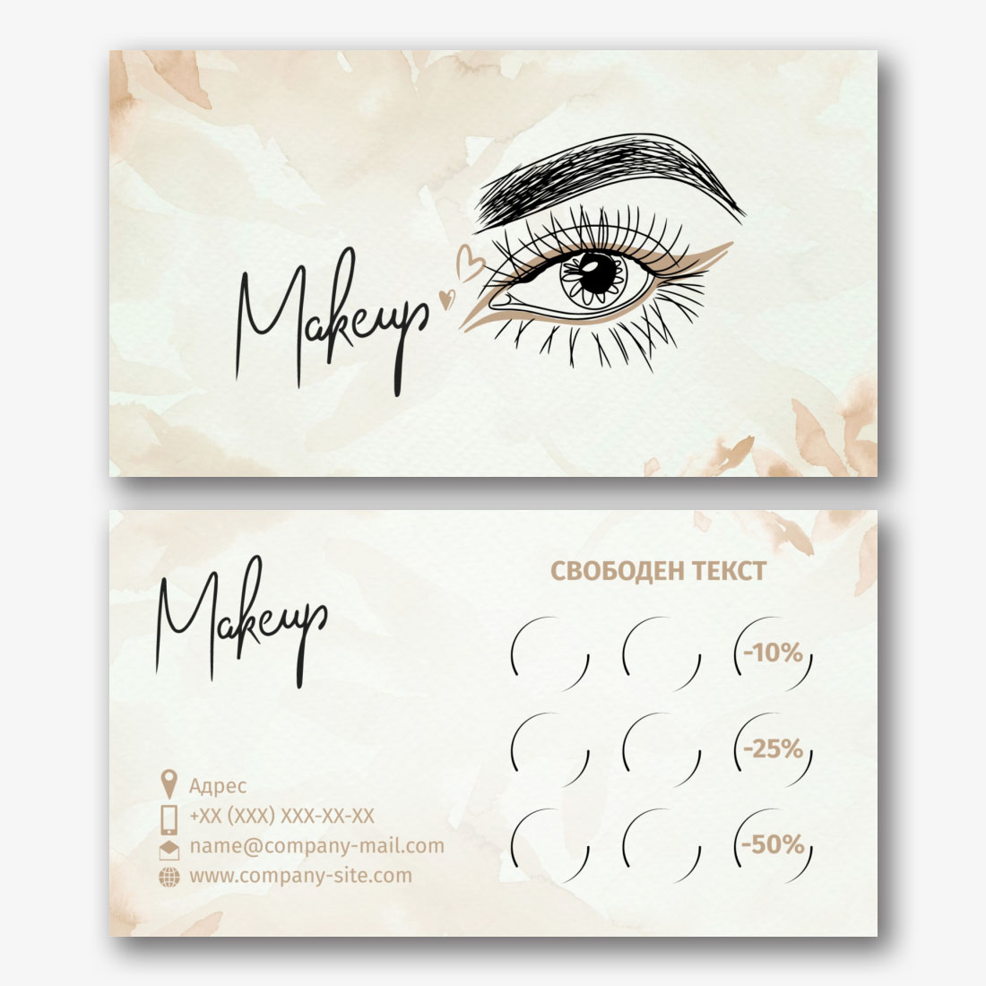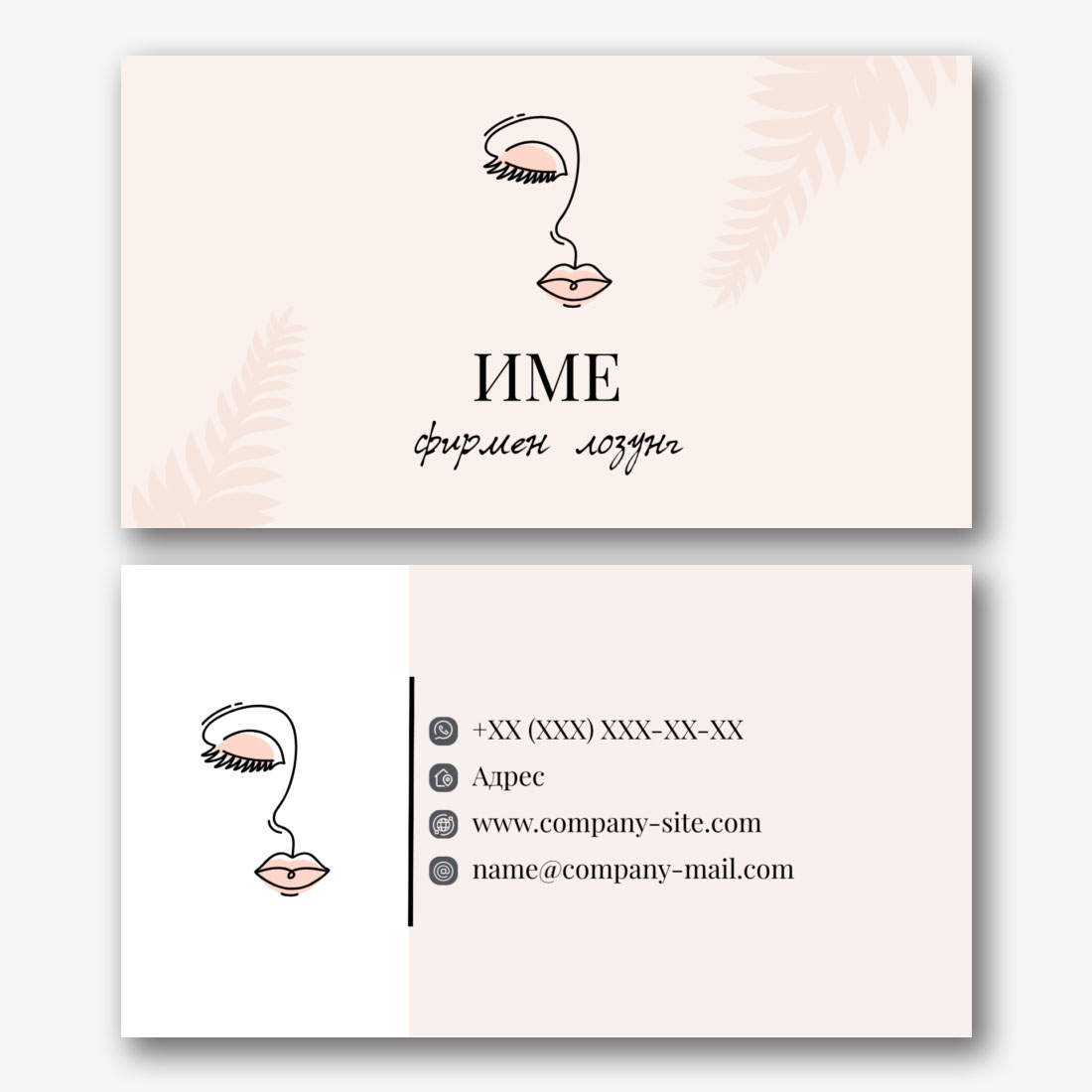 Безплатен шаблон за визитка на магазин за козметика, производител на козметика, козметик. Създайте оформление със собствените си ръце в дизайнера на визитки.