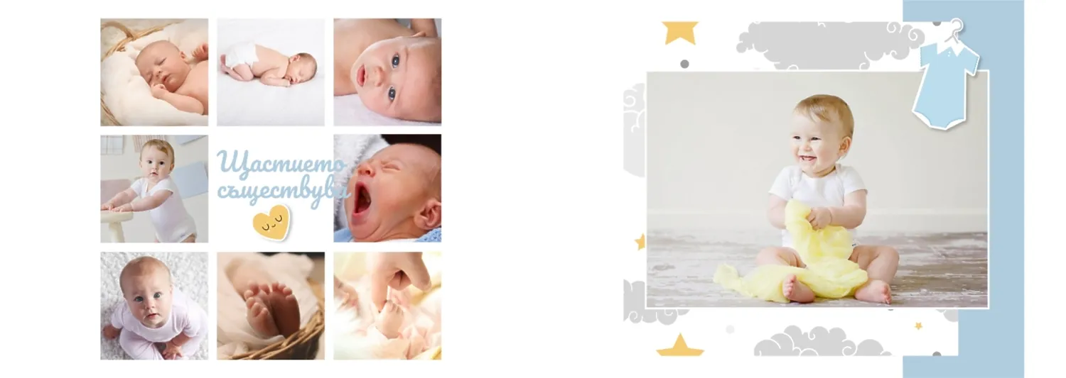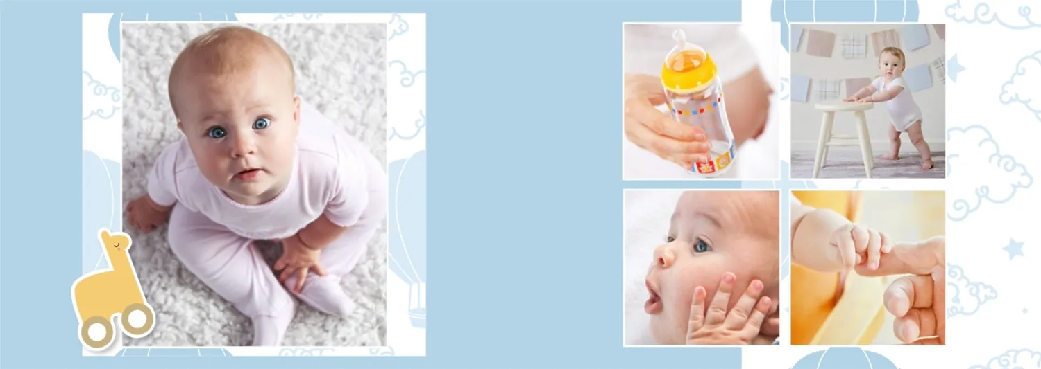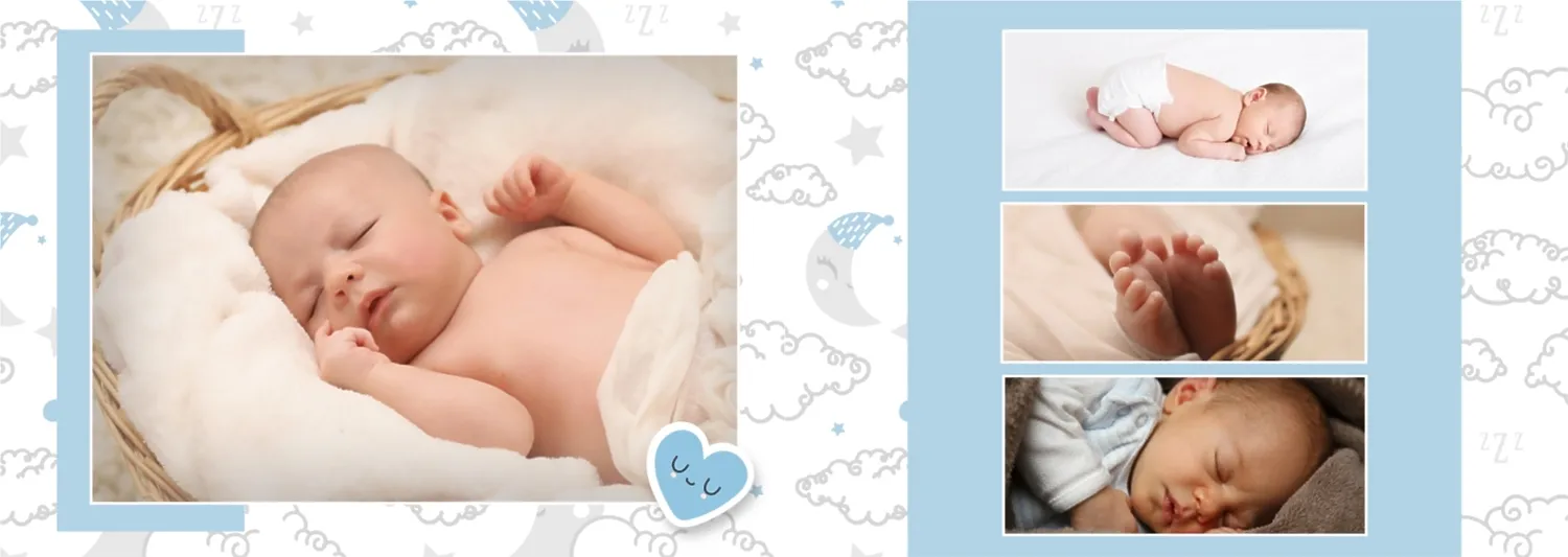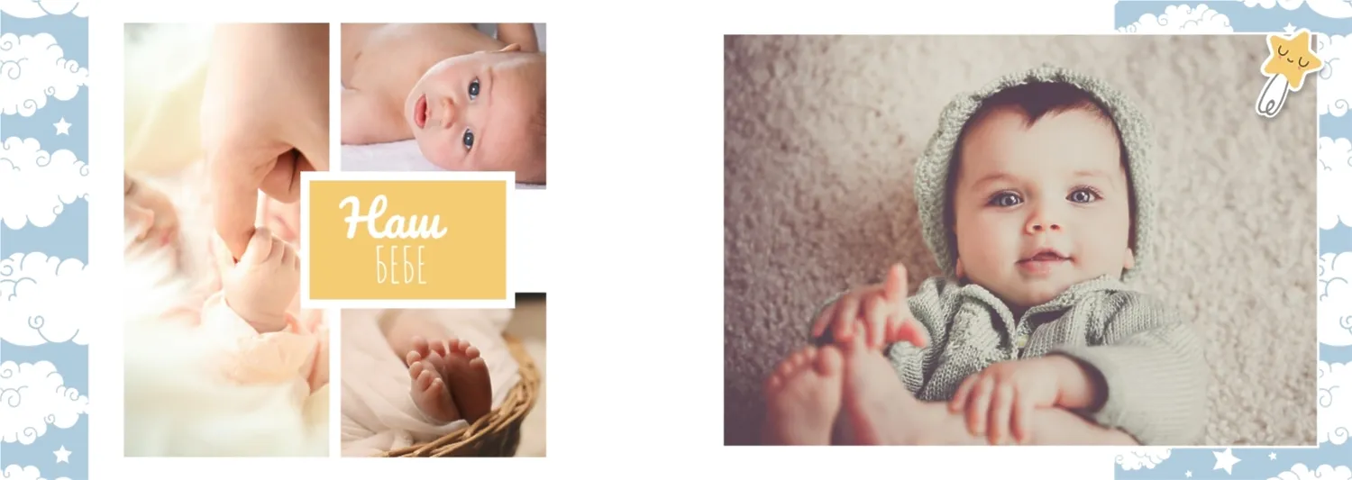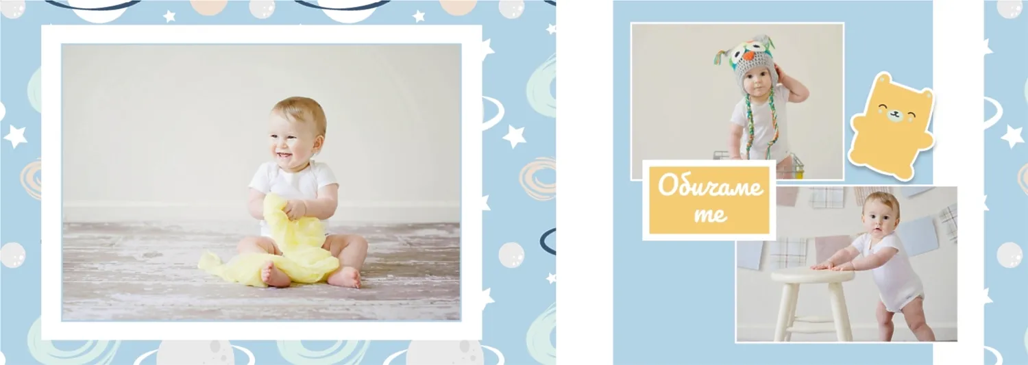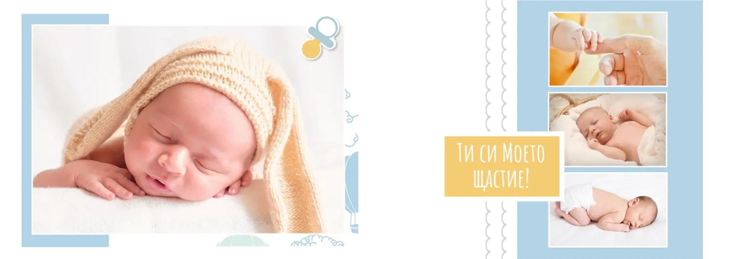 Безплатен шаблон за детска фотокнига за новородено момче. Създайте оформление със собствените си ръце в онлайн конструктора на фотокниги.