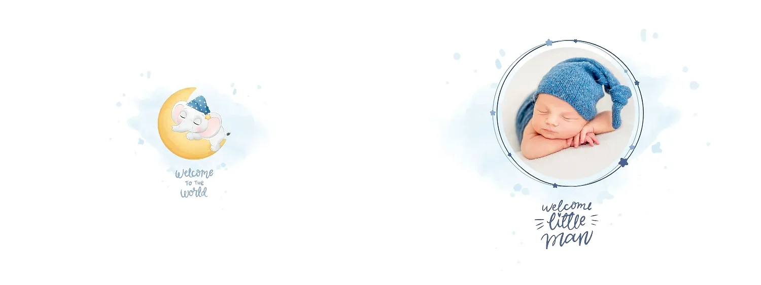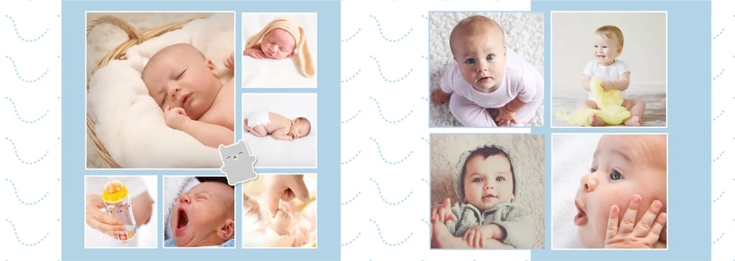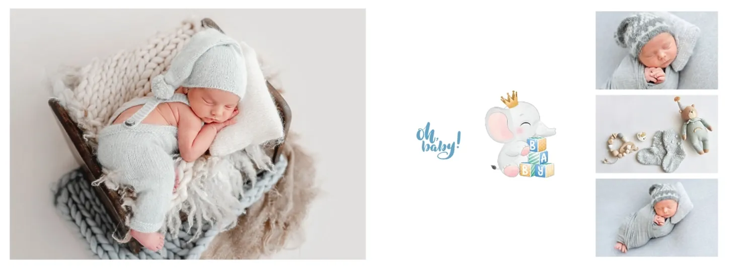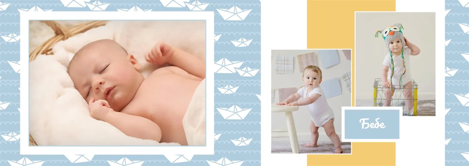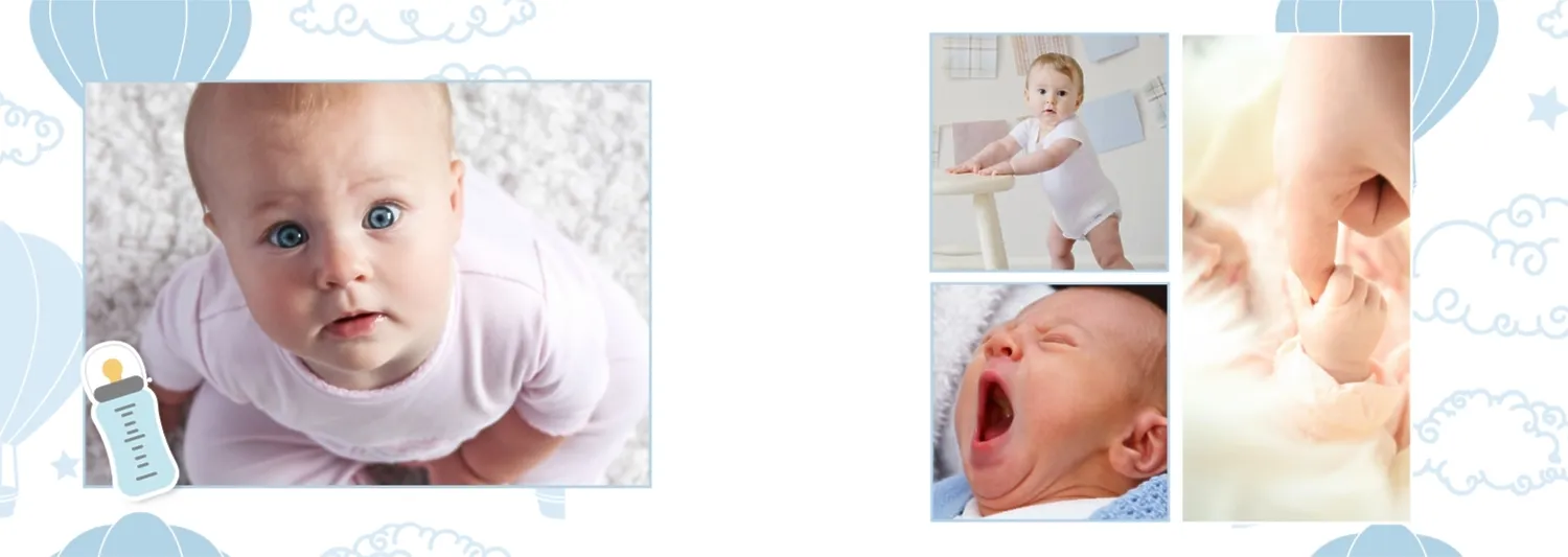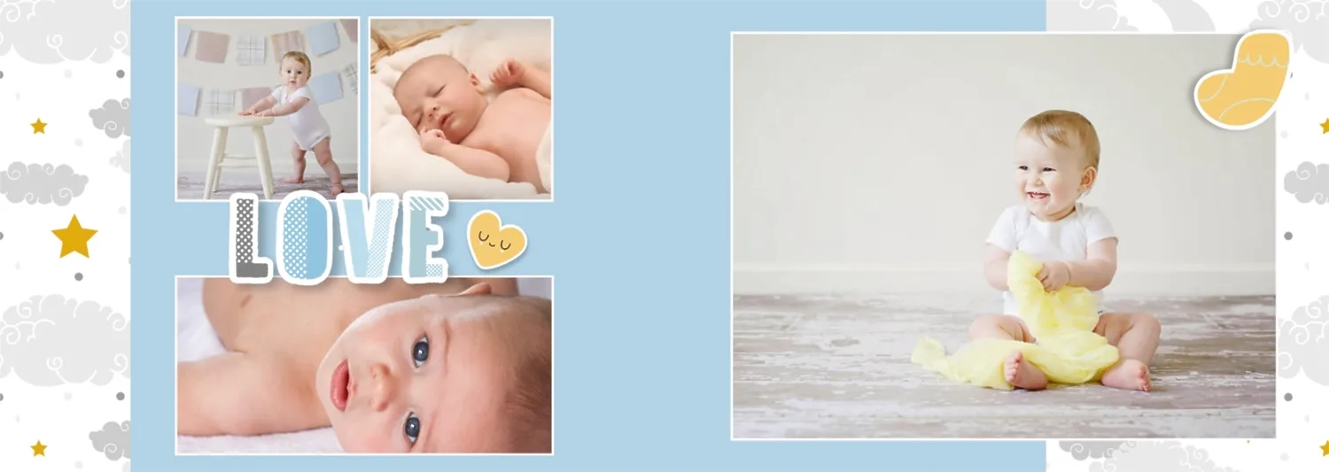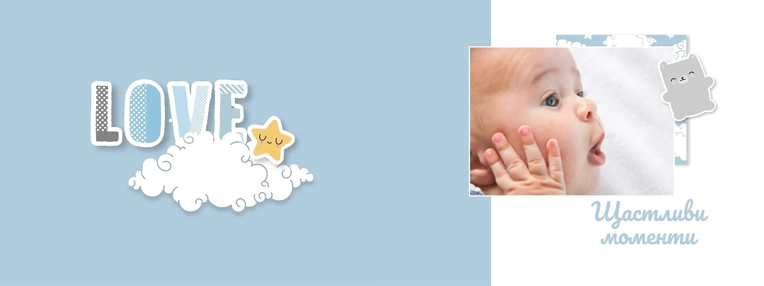 Безплатен шаблон за детска фотокнига за новородено момче. Създайте оформление със собствените си ръце в онлайн конструктора на фотокниги.