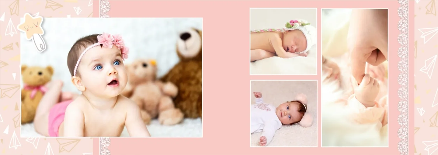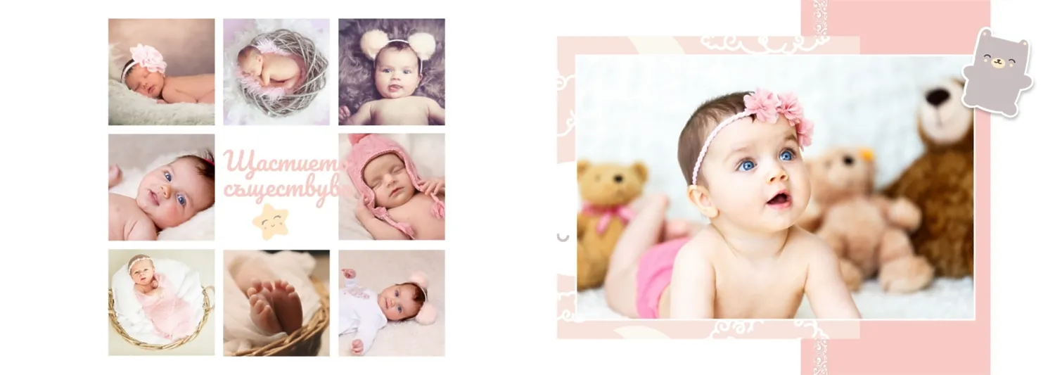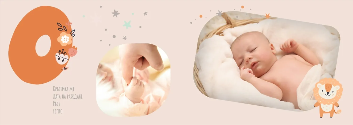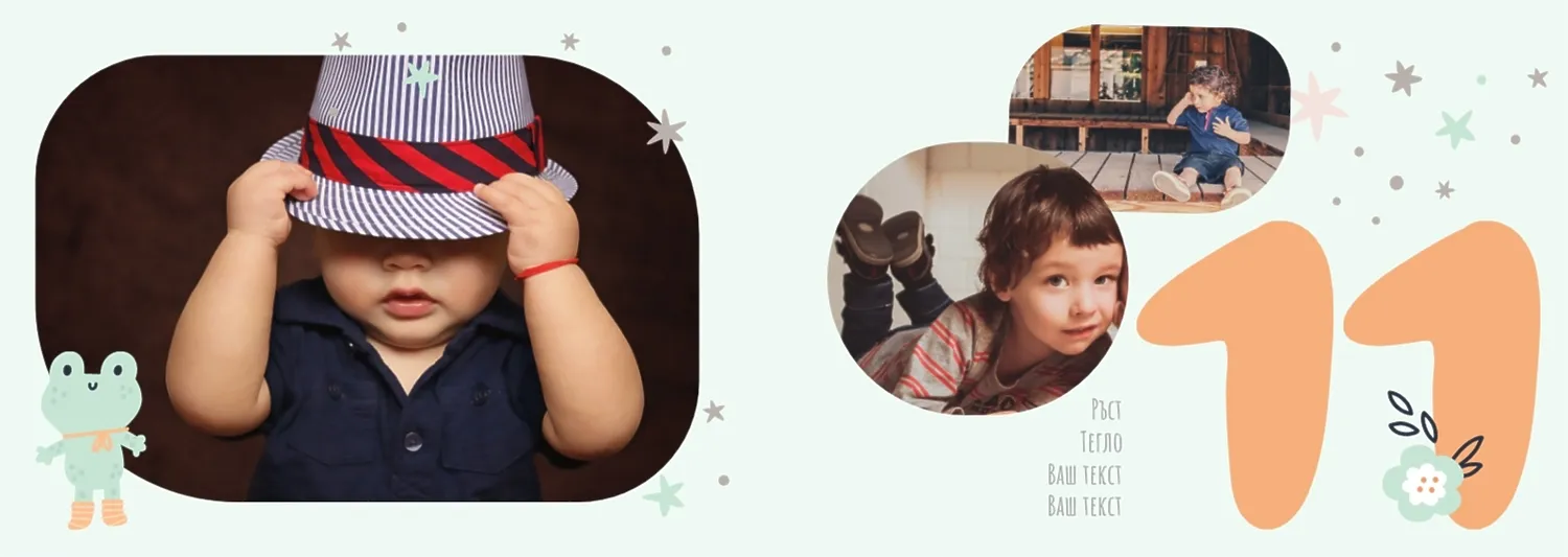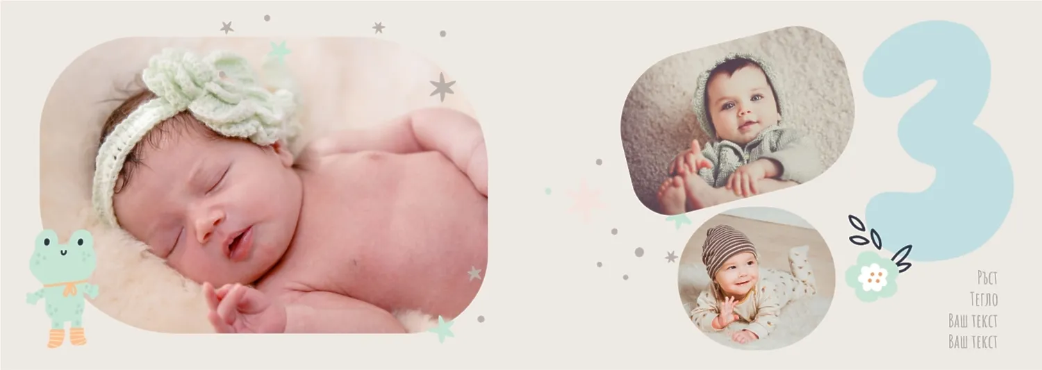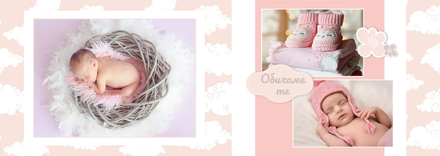 Безплатен шаблон за детска фотокнига за новородено момче. Създайте оформление със собствените си ръце в онлайн конструктора на фотокниги.