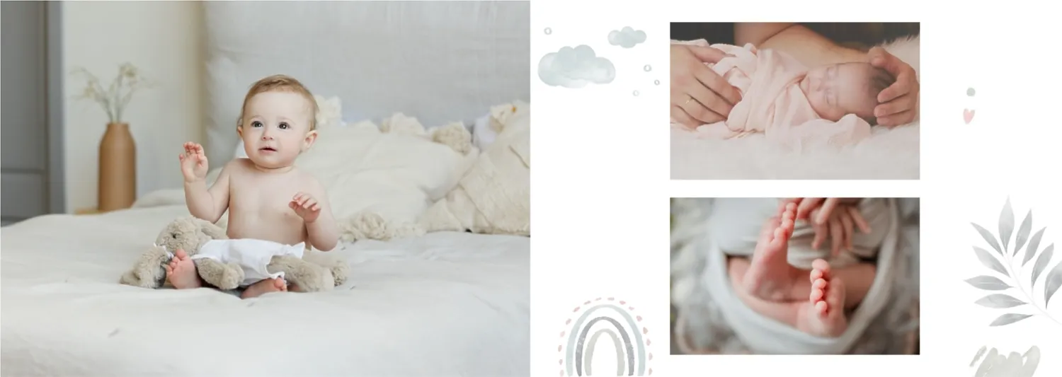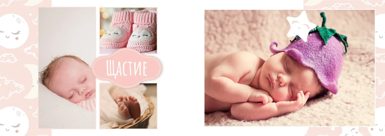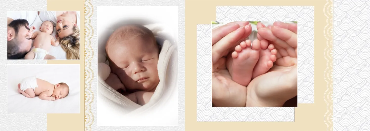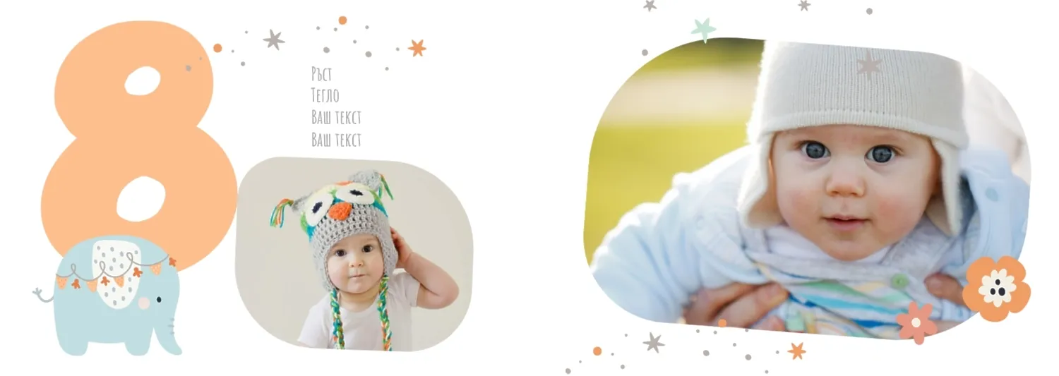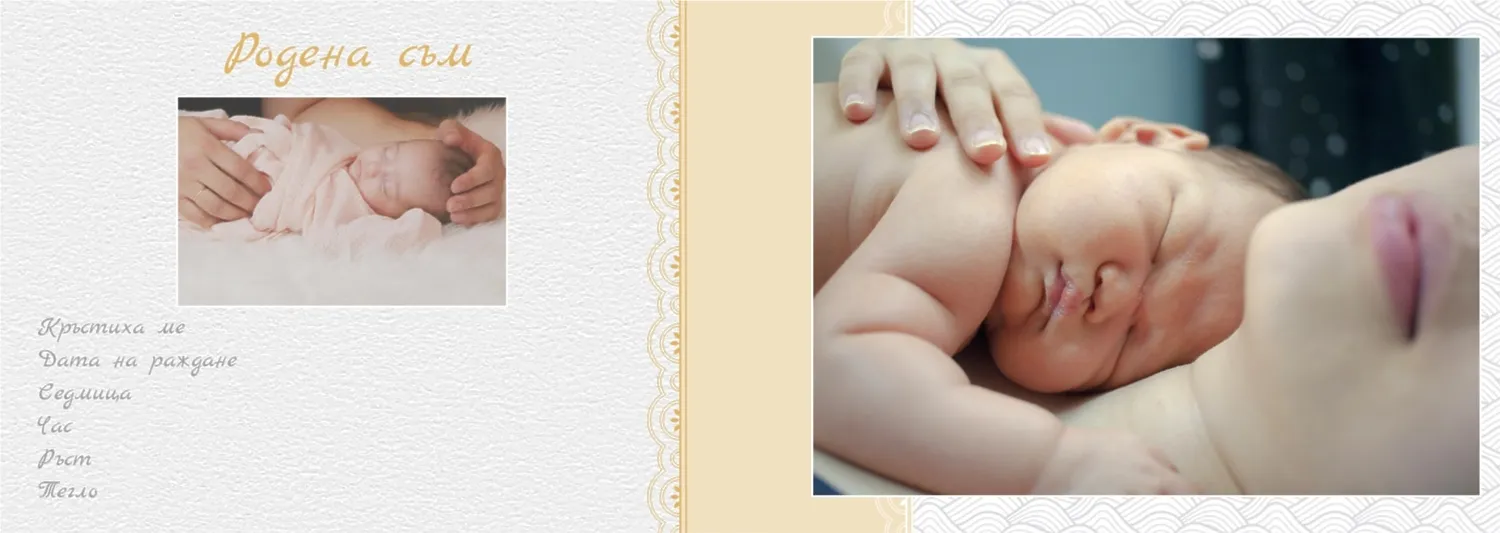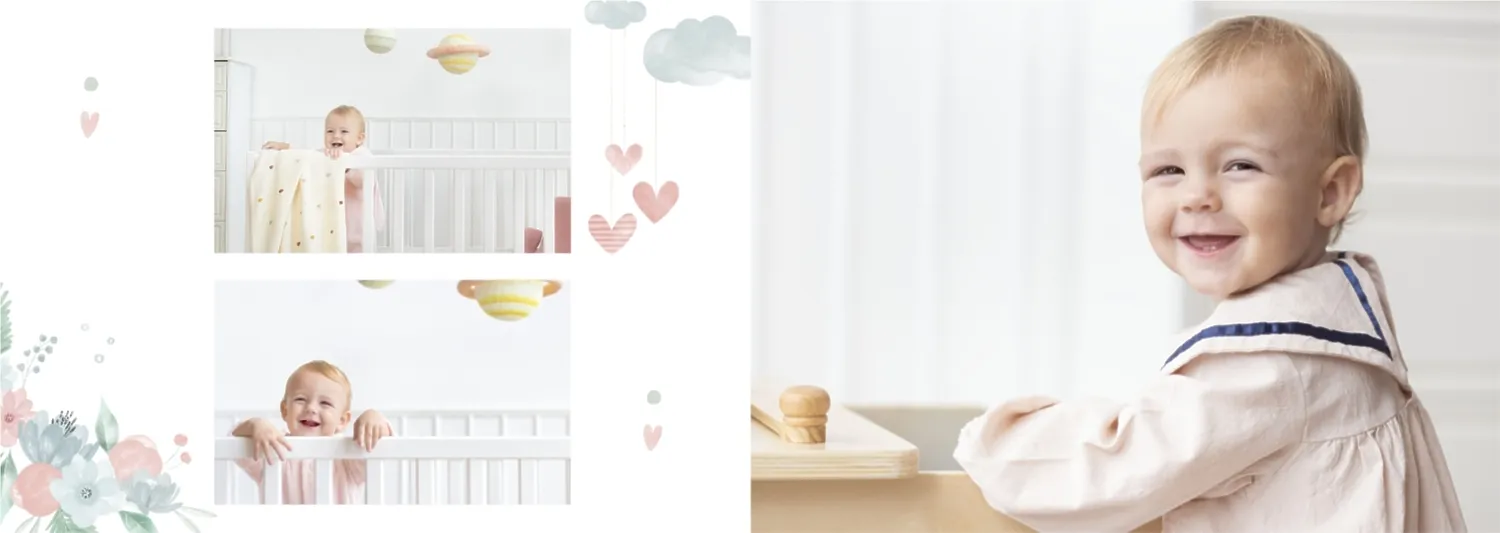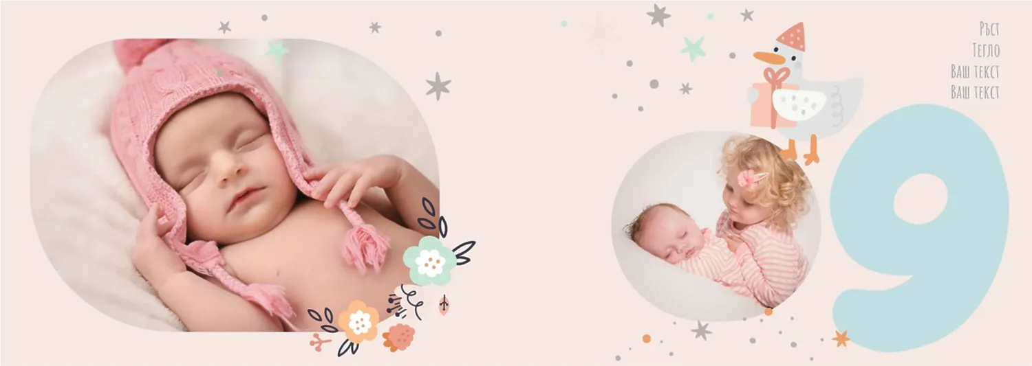 Безплатен шаблон за детска фотокнига за новородено момче. Създайте оформление със собствените си ръце в онлайн конструктора на фотокниги.