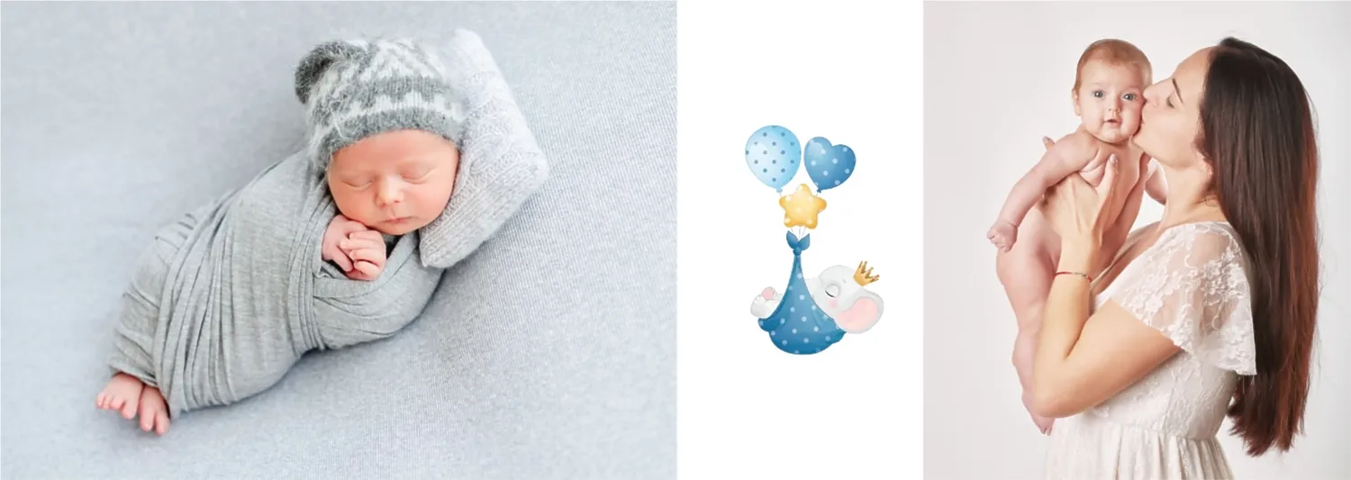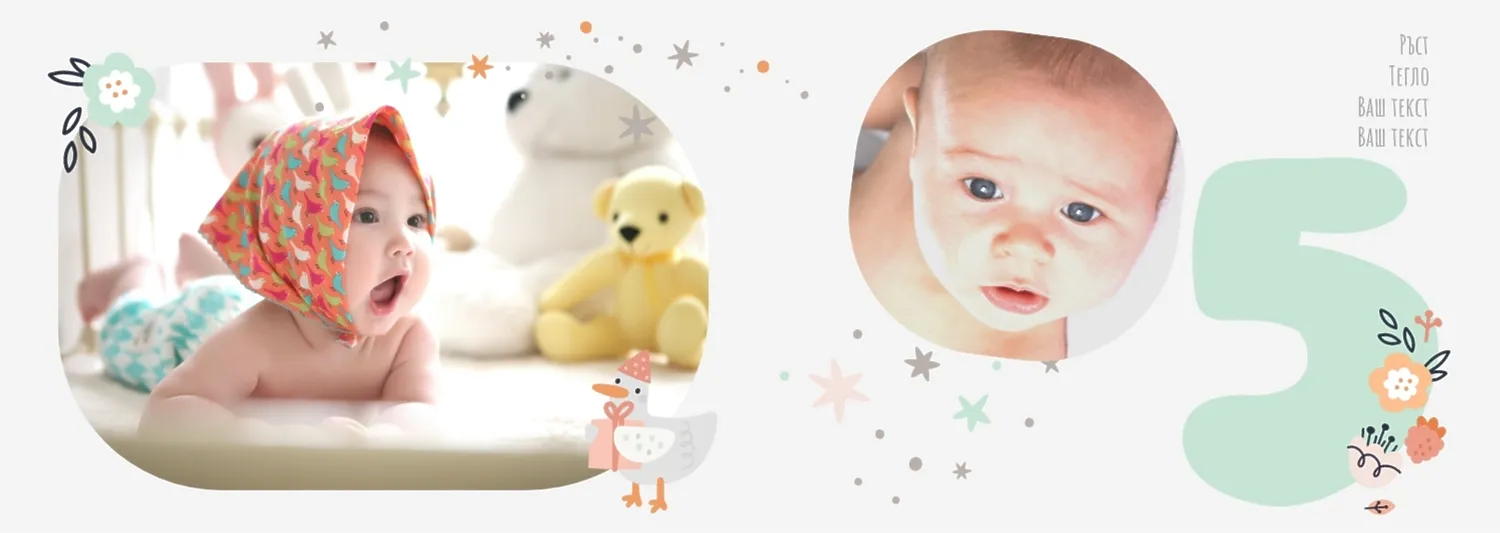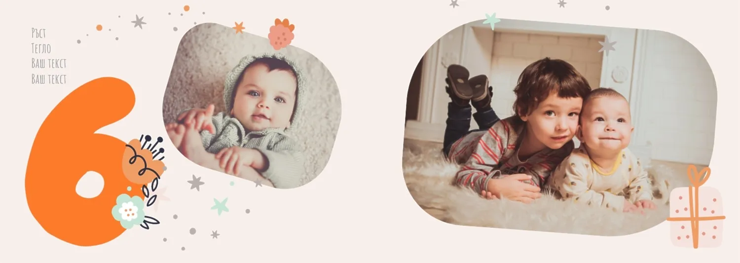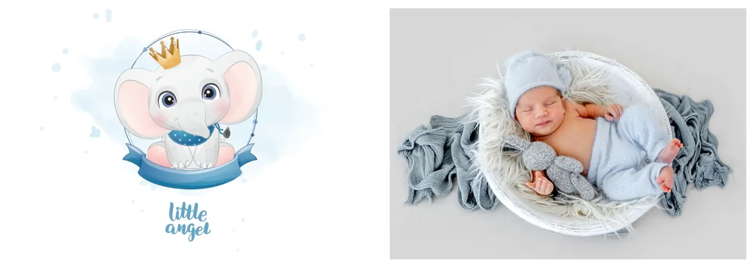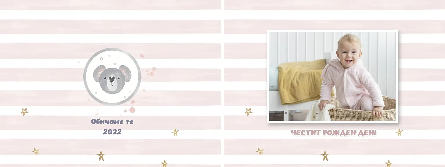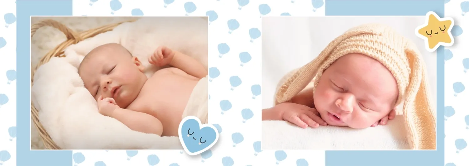 Безплатен шаблон за детска фотокнига за новородено момче. Създайте оформление със собствените си ръце в онлайн конструктора на фотокниги.
