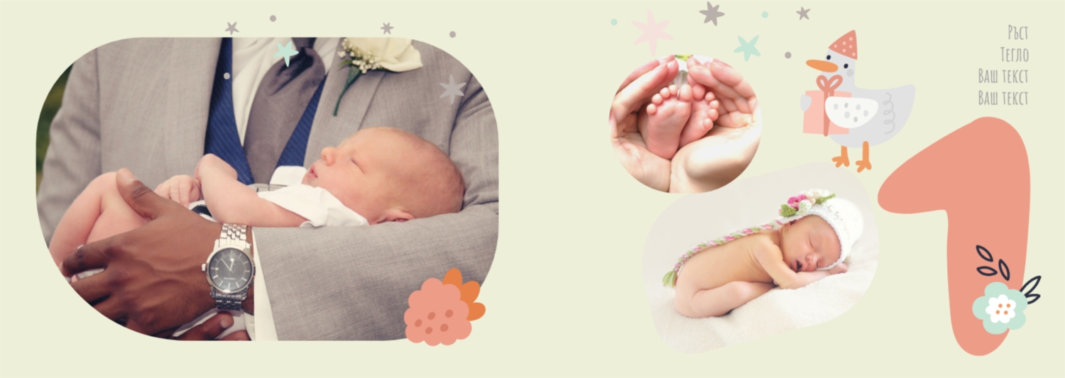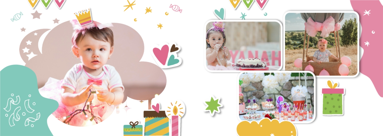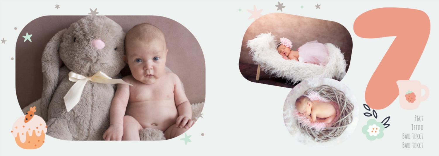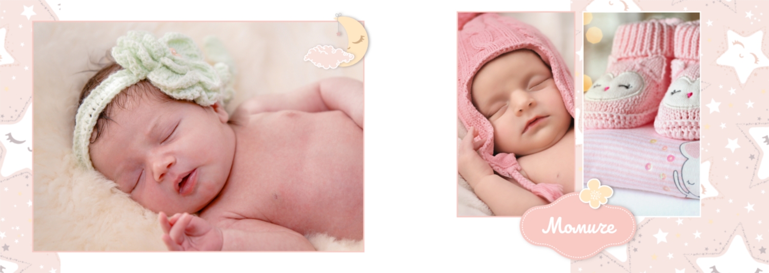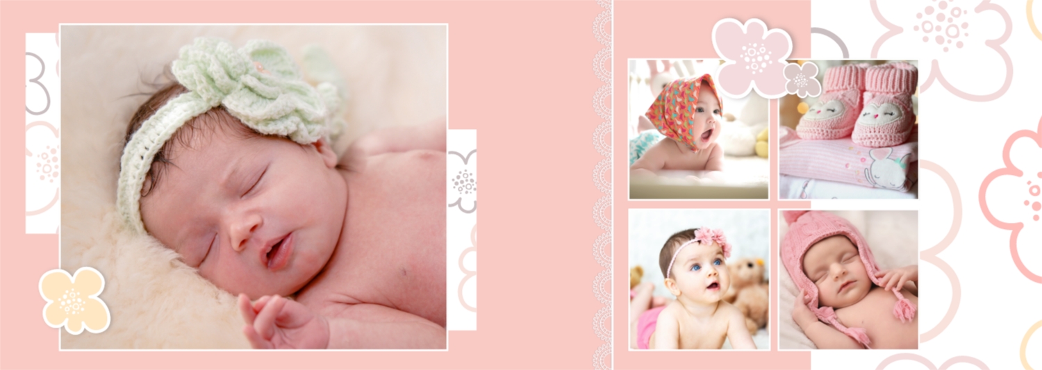 Безплатен шаблон за детска фотокнига за новородено момиче. Създайте оформление със собствените си ръце в онлайн конструктора на фотокниги.