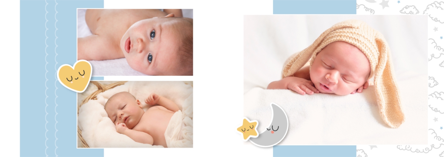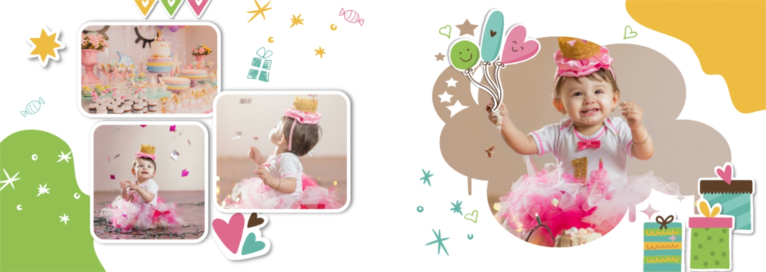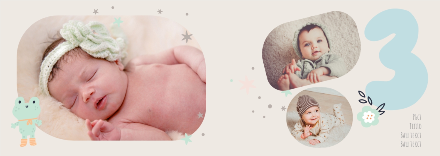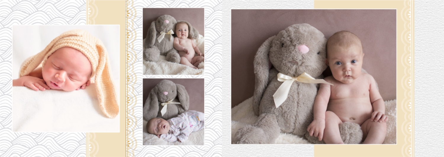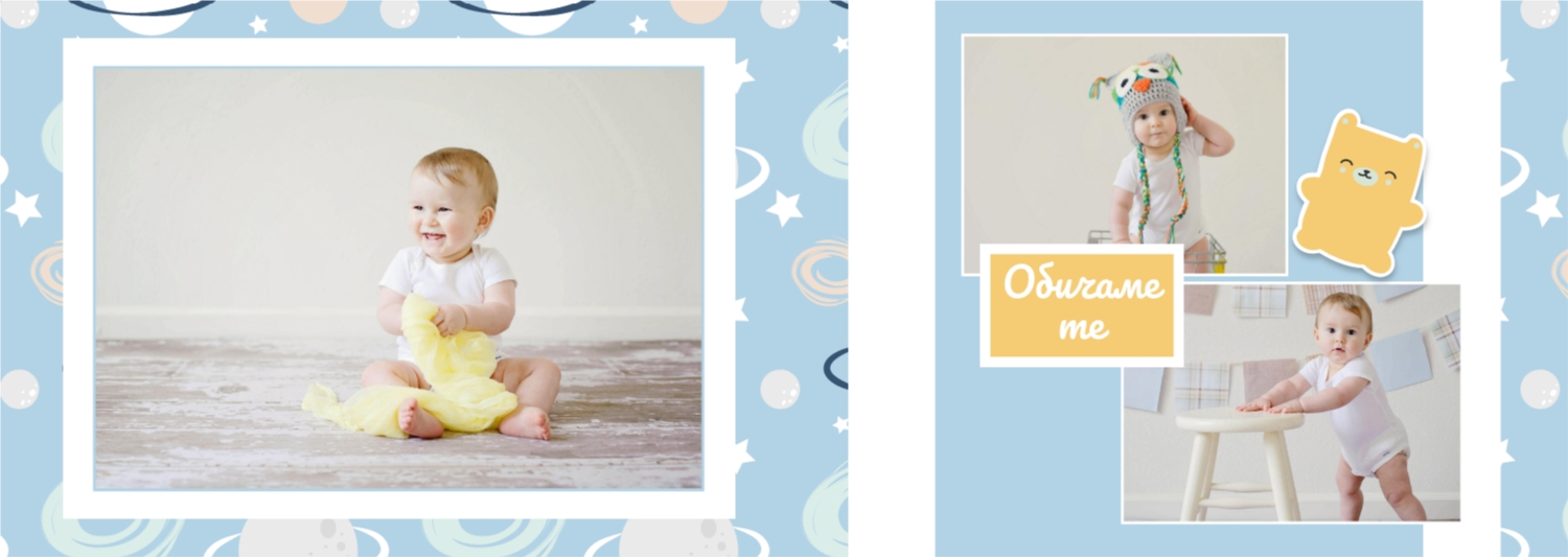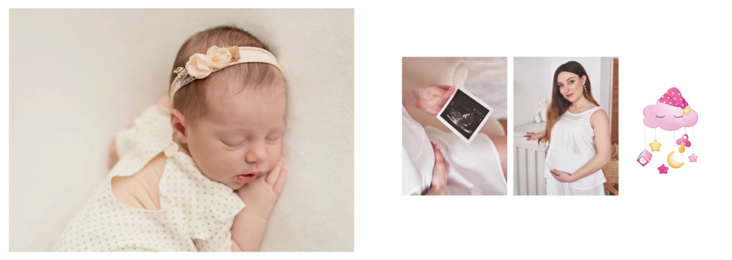 Безплатен шаблон за детска фотокнига за новородено момиче. Създайте оформление със собствените си ръце в онлайн конструктора на фотокниги.