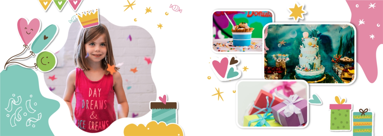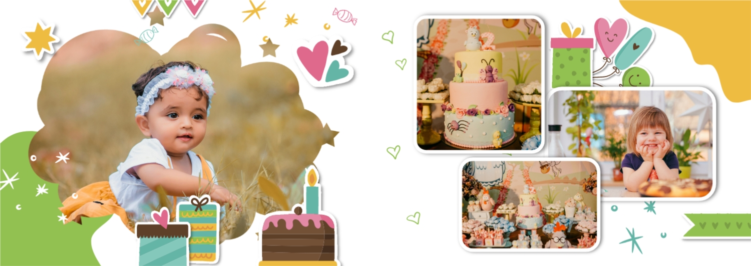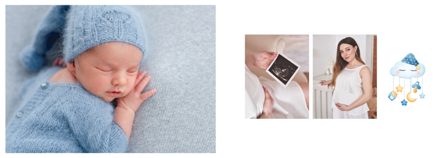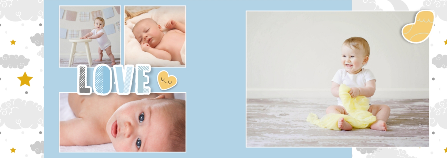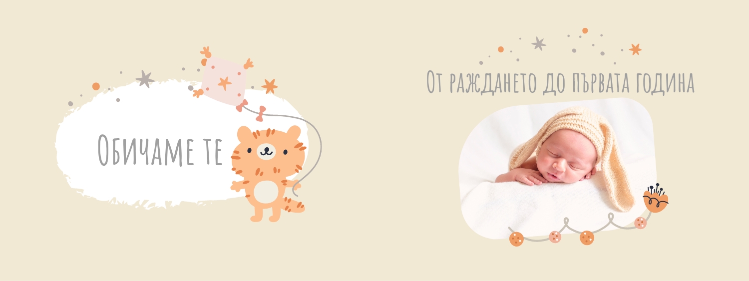Безплатен шаблон за детска фотокнига за новородено момиче. Създайте оформление със собствените си ръце в онлайн конструктора на фотокниги.