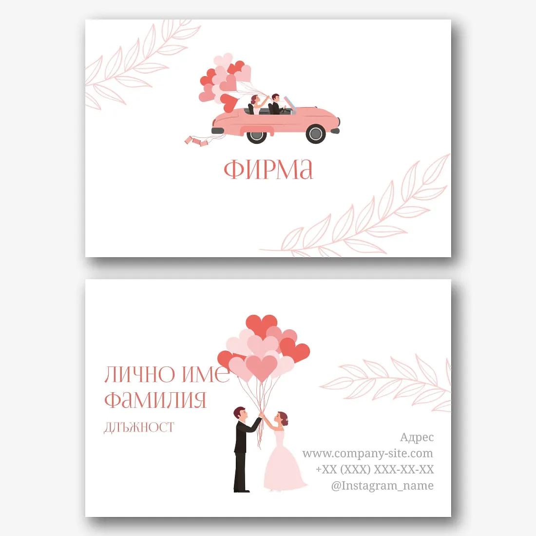 Безплатен шаблон за визитка за сватбен салон, Салон за сватбени рокли, сватбени рокли Под наем. Създайте оформление със собствените си ръце в дизайнера на визитки.