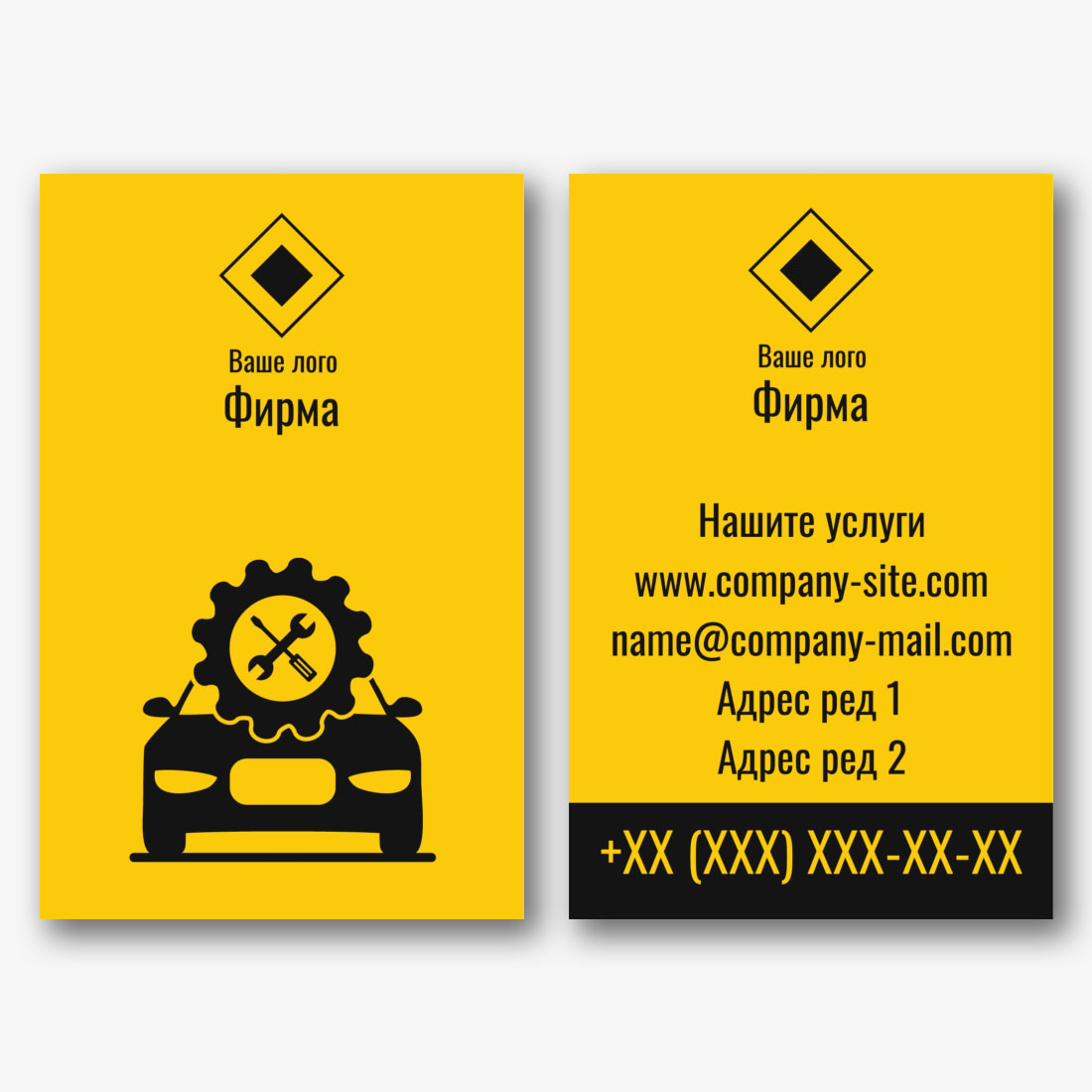 Безплатен шаблон за визитка за автосервиз, автомеханик, сервиз. Създайте оформление със собствените си ръце в дизайнера на визитки.