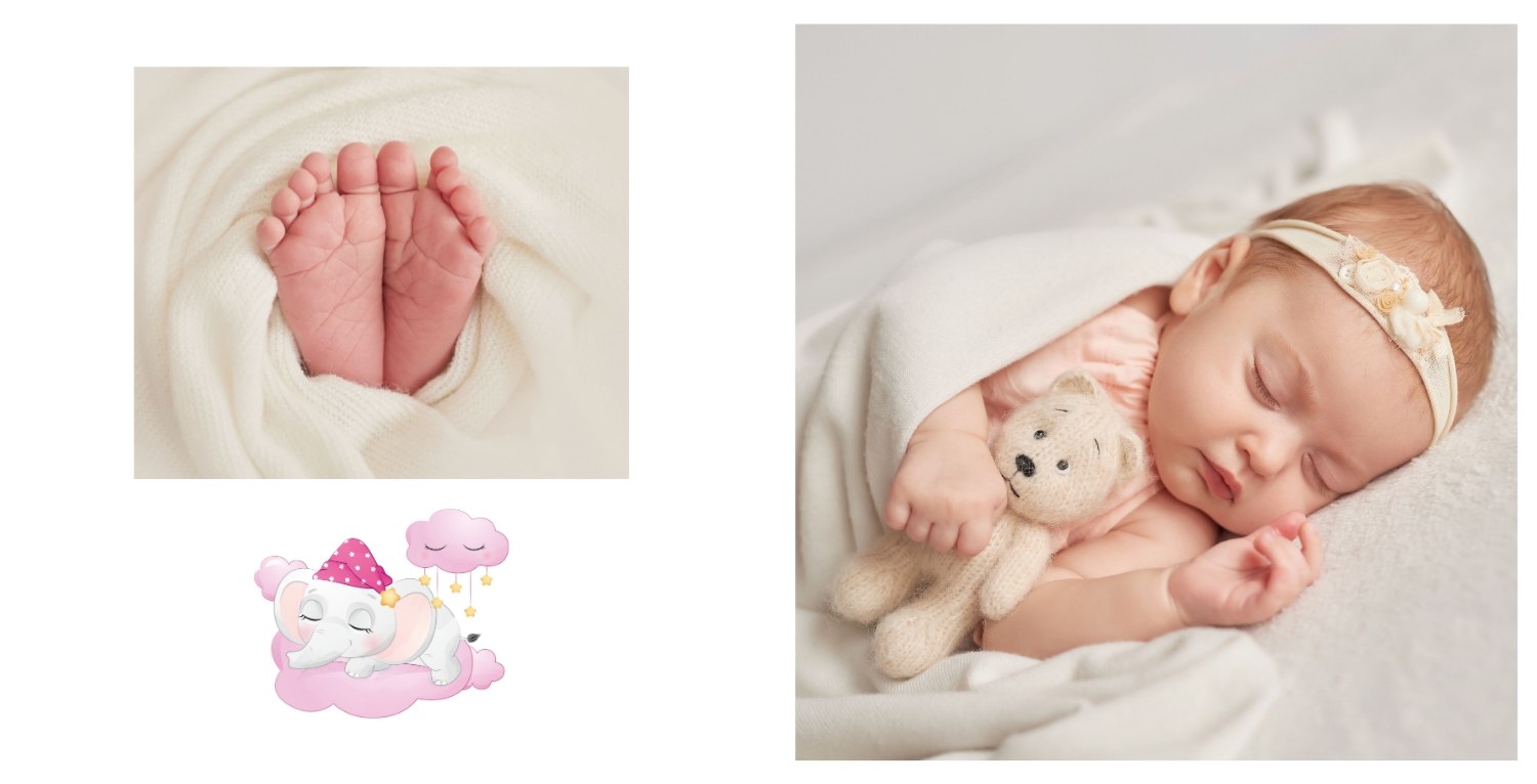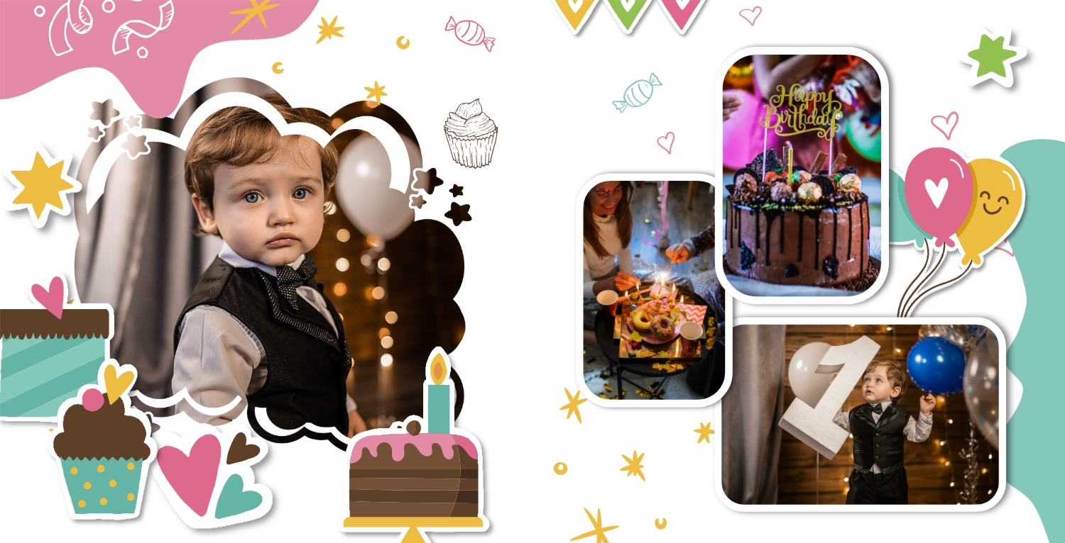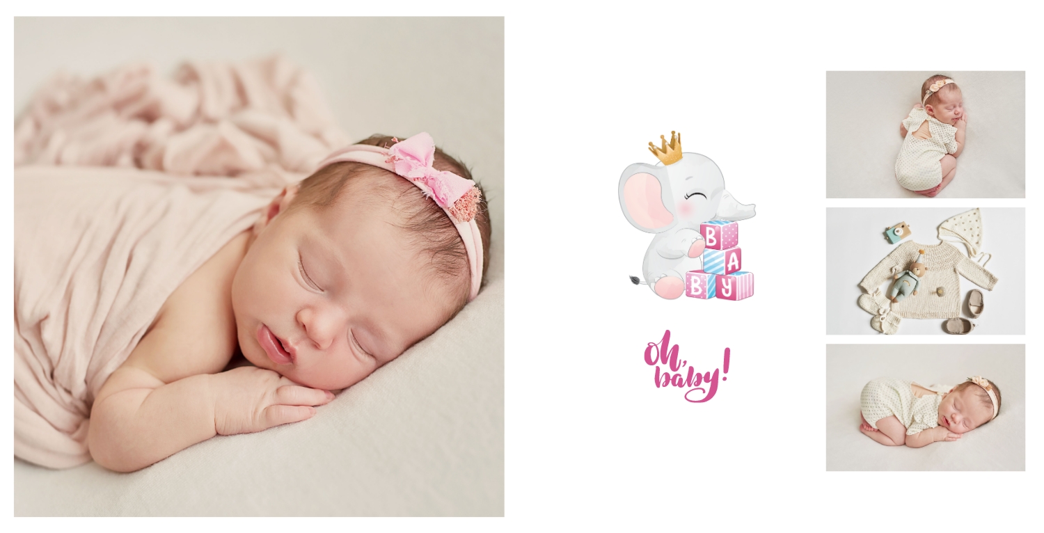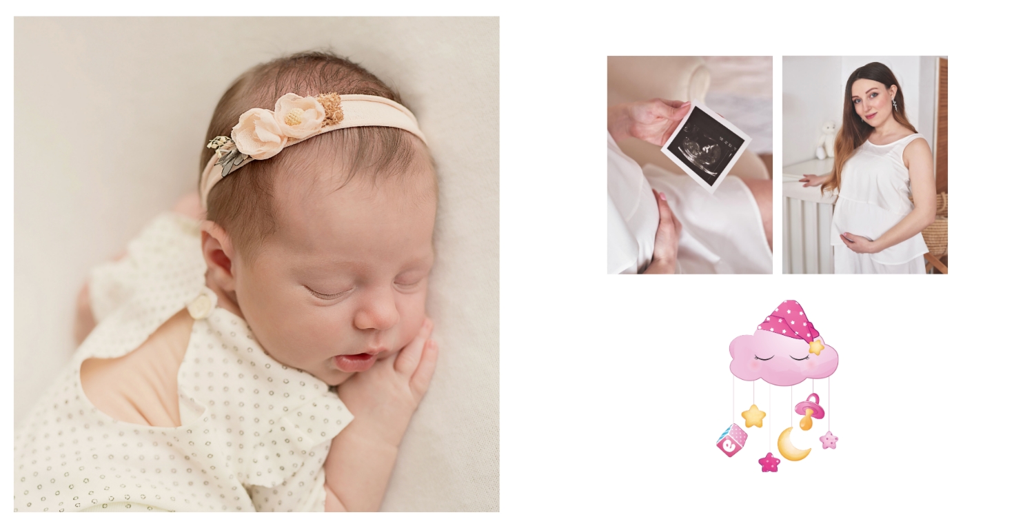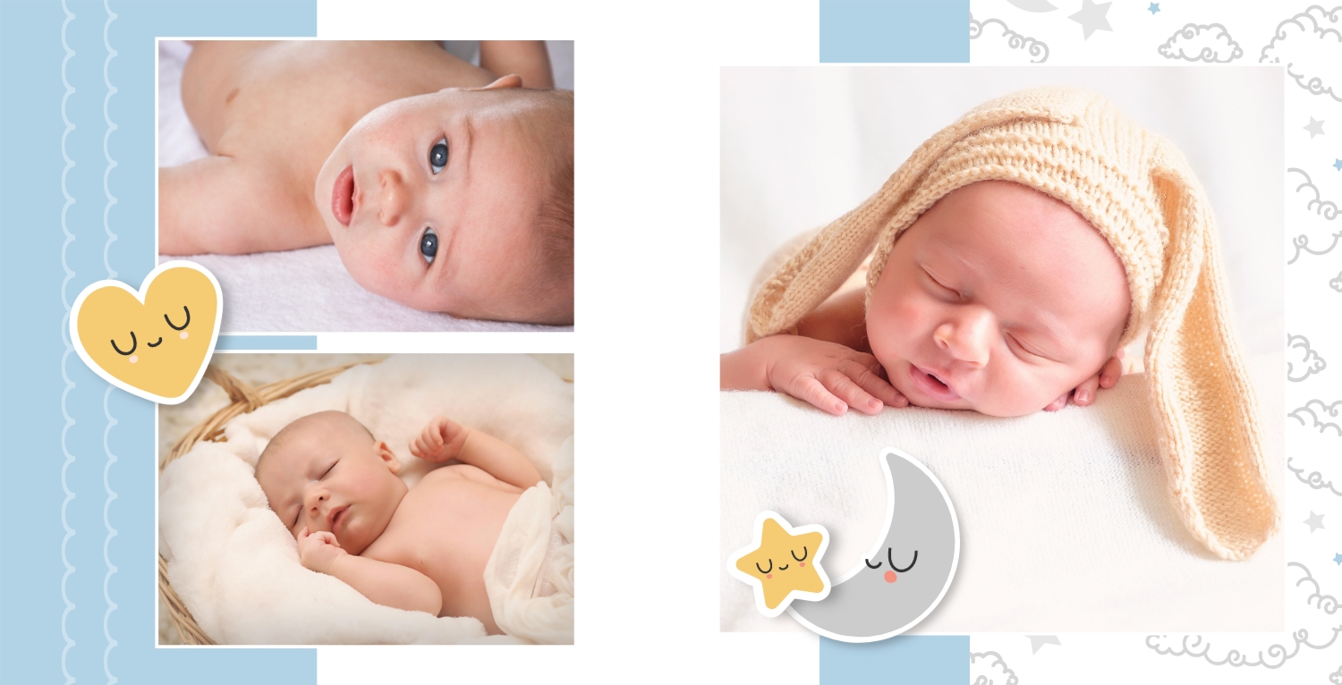 Безплатен шаблон за детска фотокнига от раждането до годината за момиче. Създайте оформление със собствените си ръце в онлайн конструктора на фотокниги.