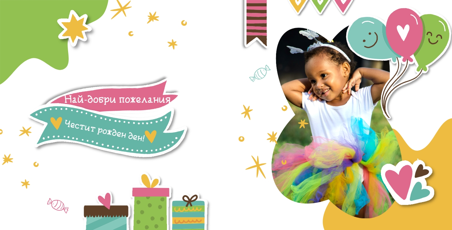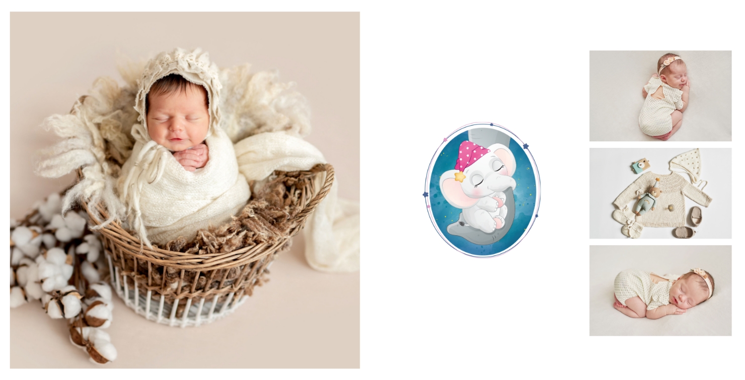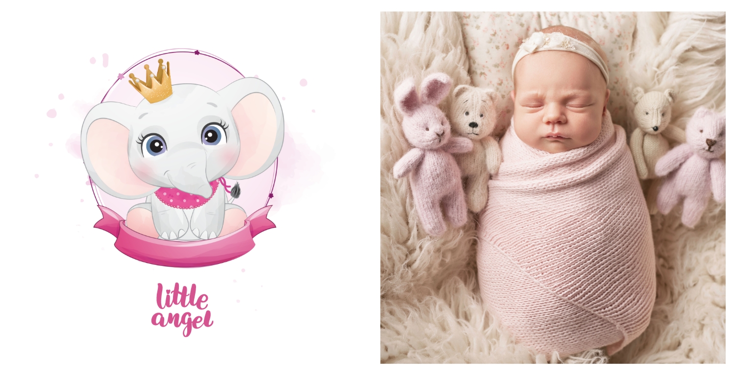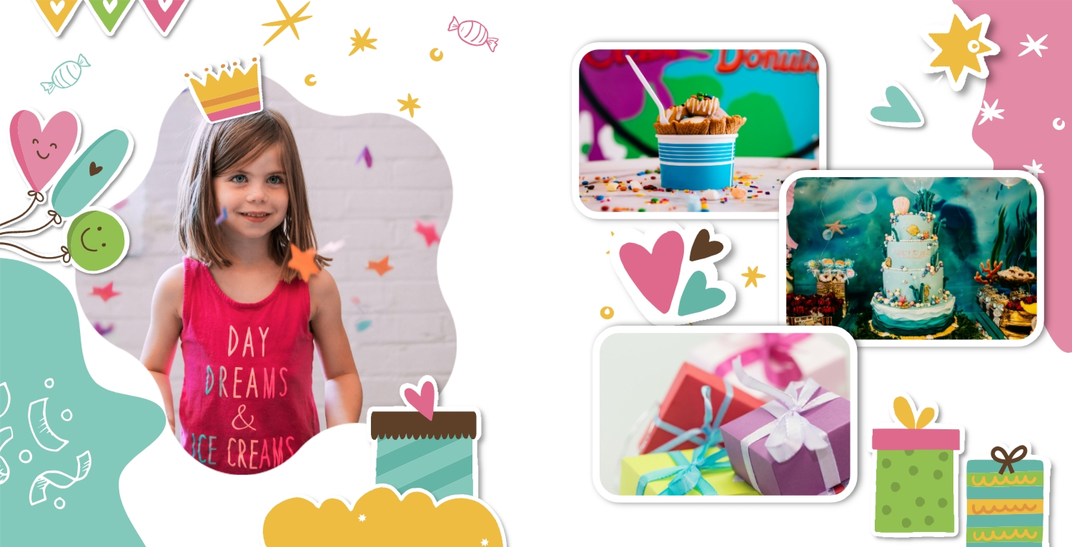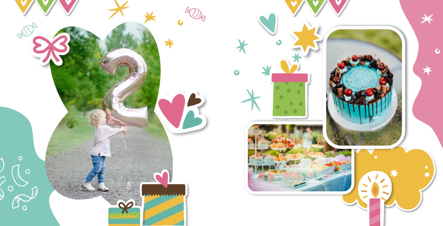 Безплатен шаблон за детска фотокнига от раждането до годината за момиче. Създайте оформление със собствените си ръце в онлайн конструктора на фотокниги.