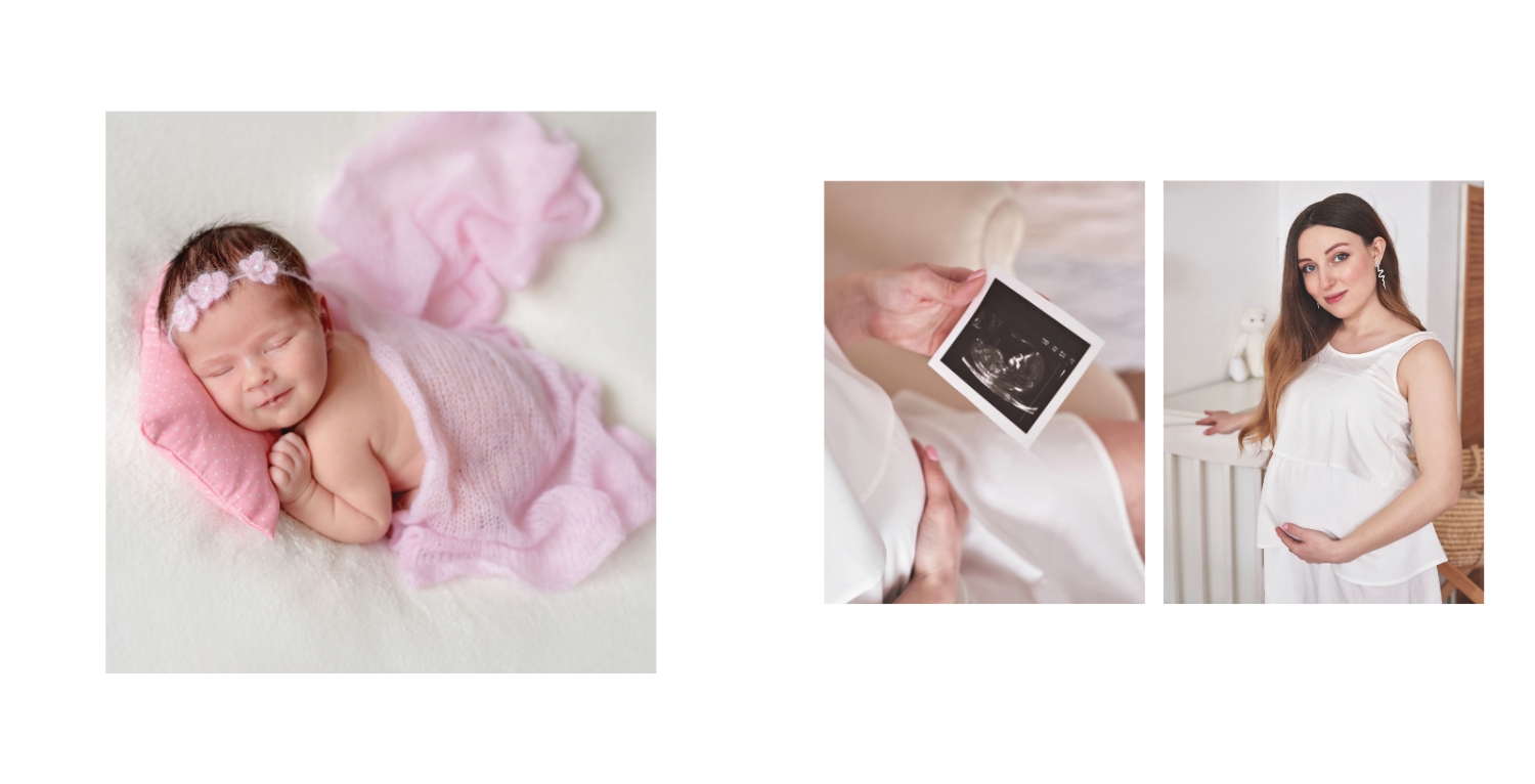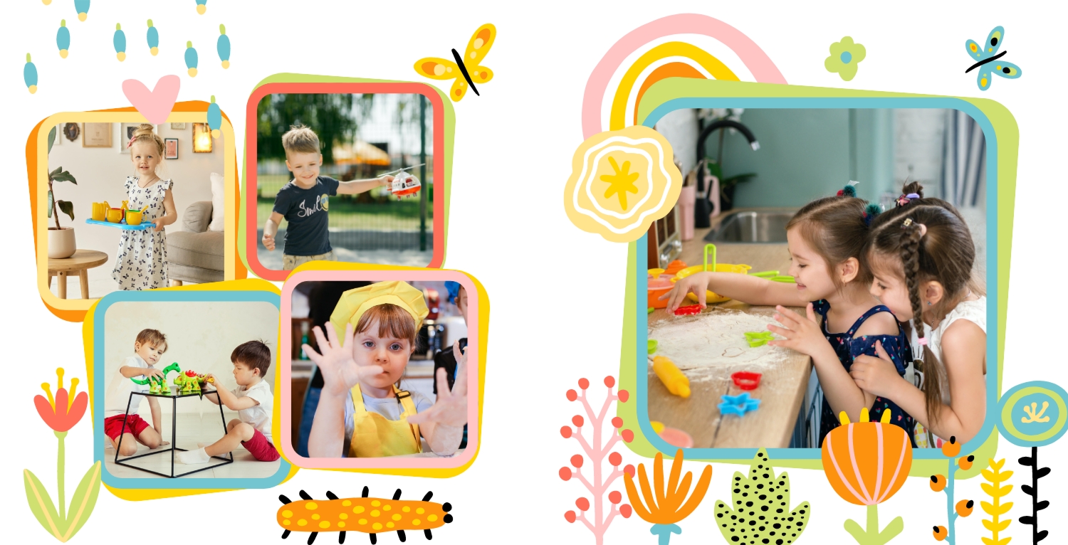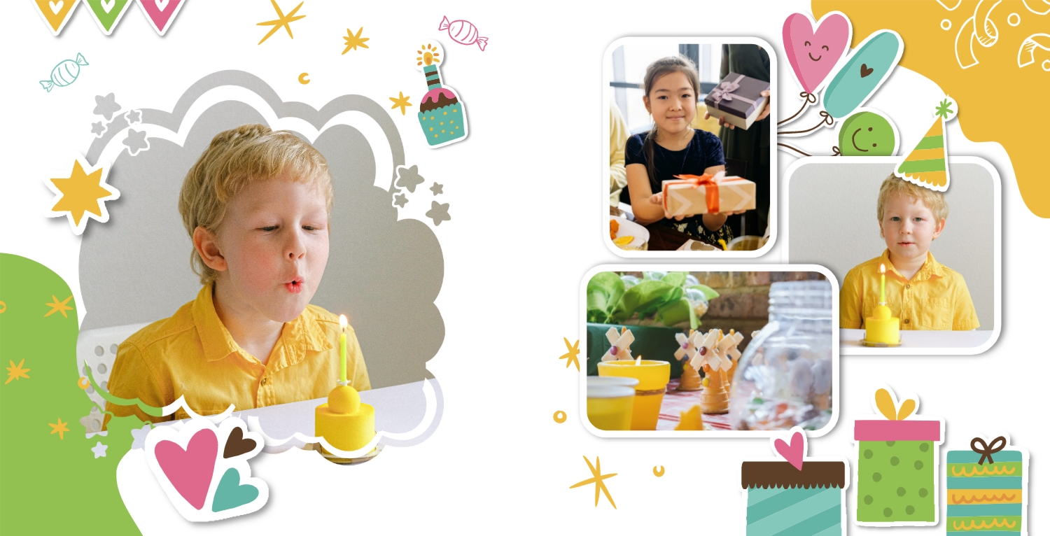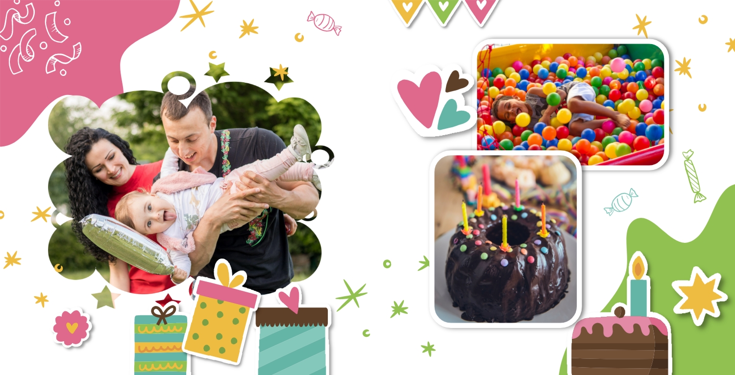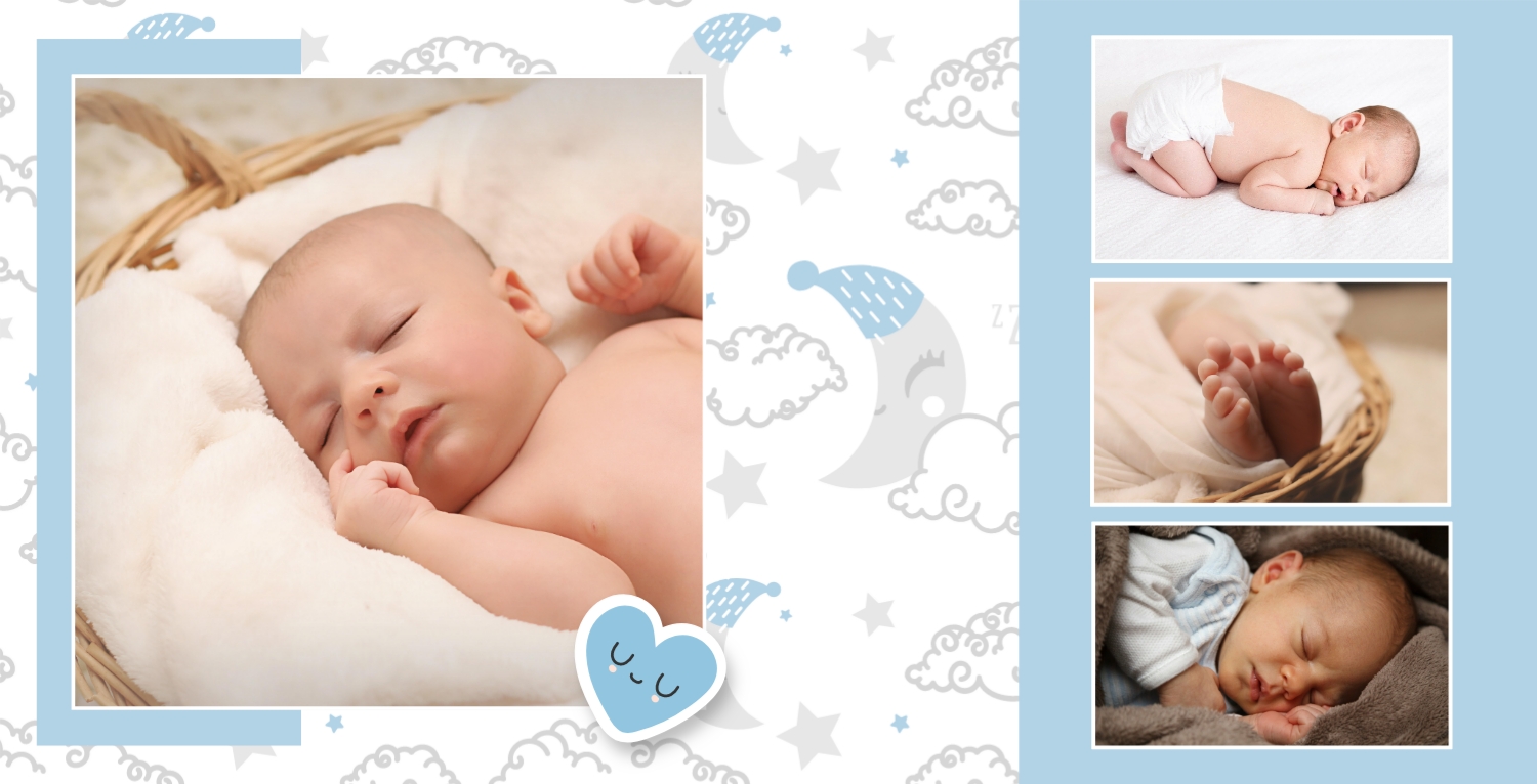 Безплатен шаблон за детска фотокнига от раждането до годината за момиче. Създайте оформление със собствените си ръце в онлайн конструктора на фотокниги.