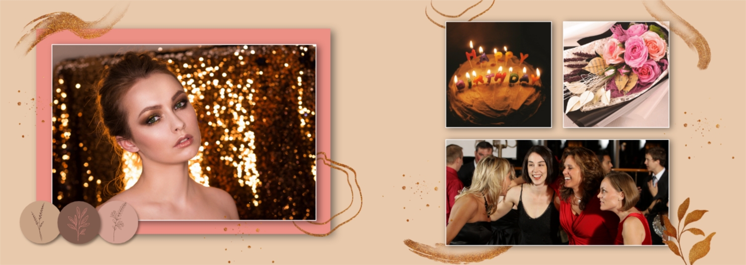 Безплатен шаблон за юбилейна фотокнига като подарък за рожден ден. Създайте оформление със собствените си ръце в онлайн конструктора на фотокниги.