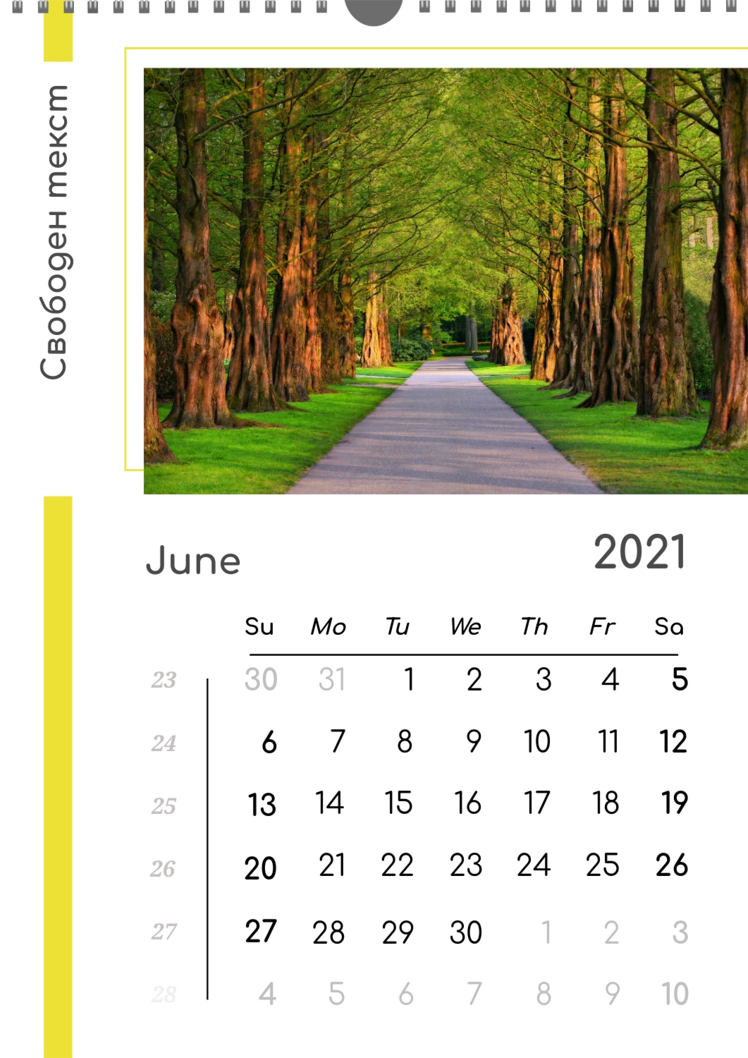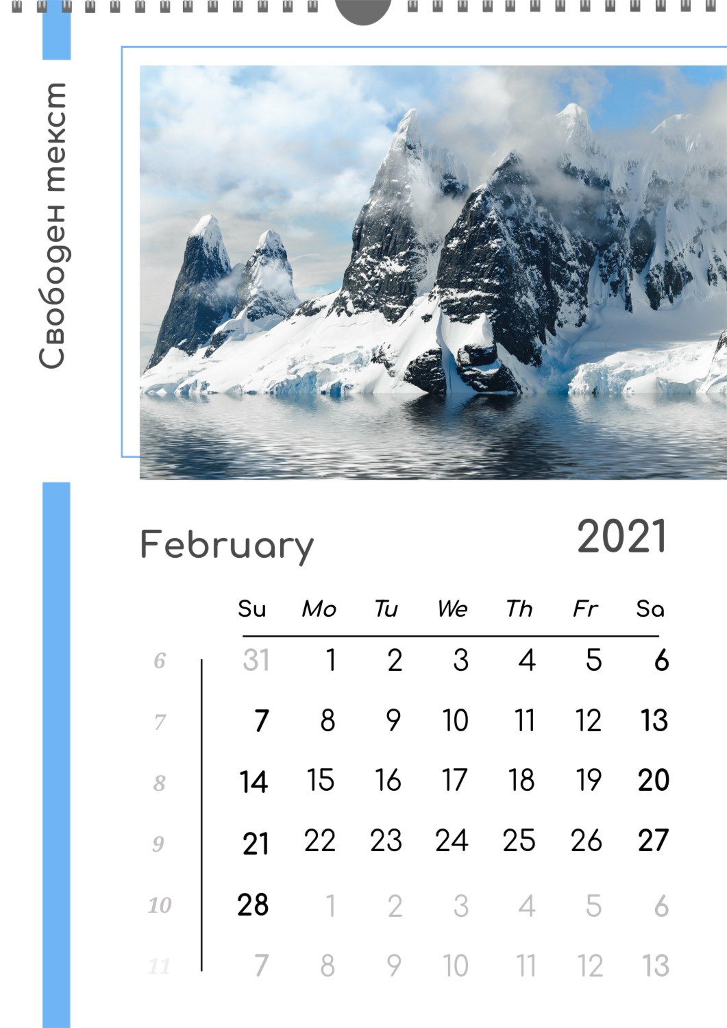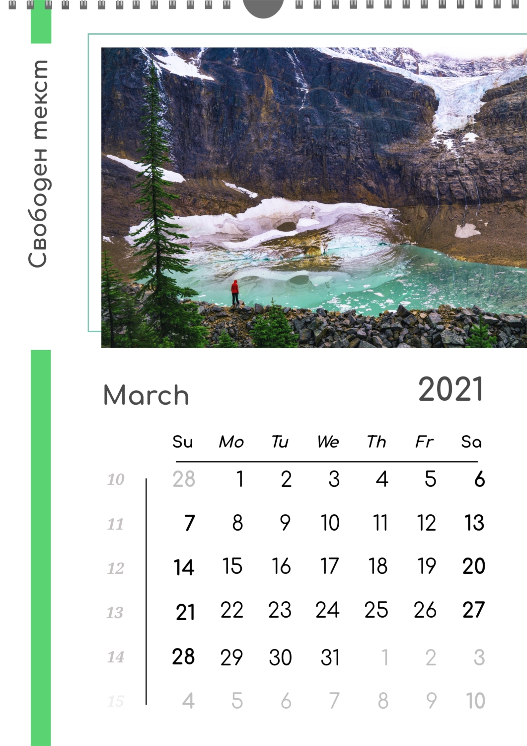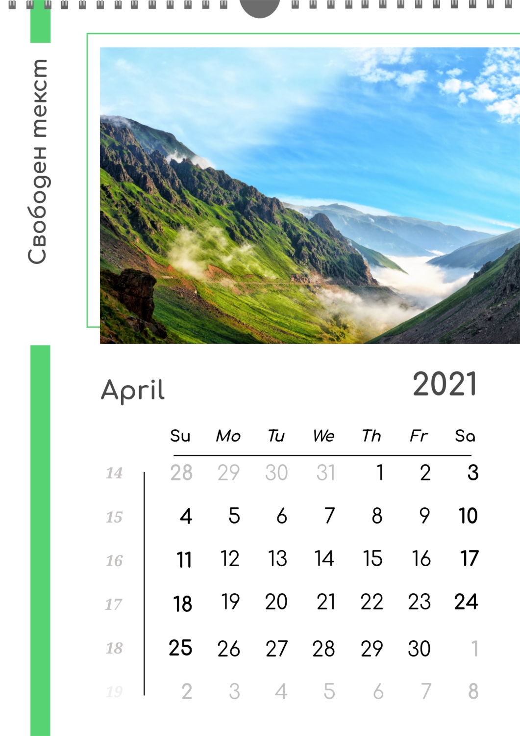 Безплатен шаблон за стенен календар с пейзажи и красиви гледки към природата. Създайте оформление със собствените си ръце в онлайн конструктора на календари.