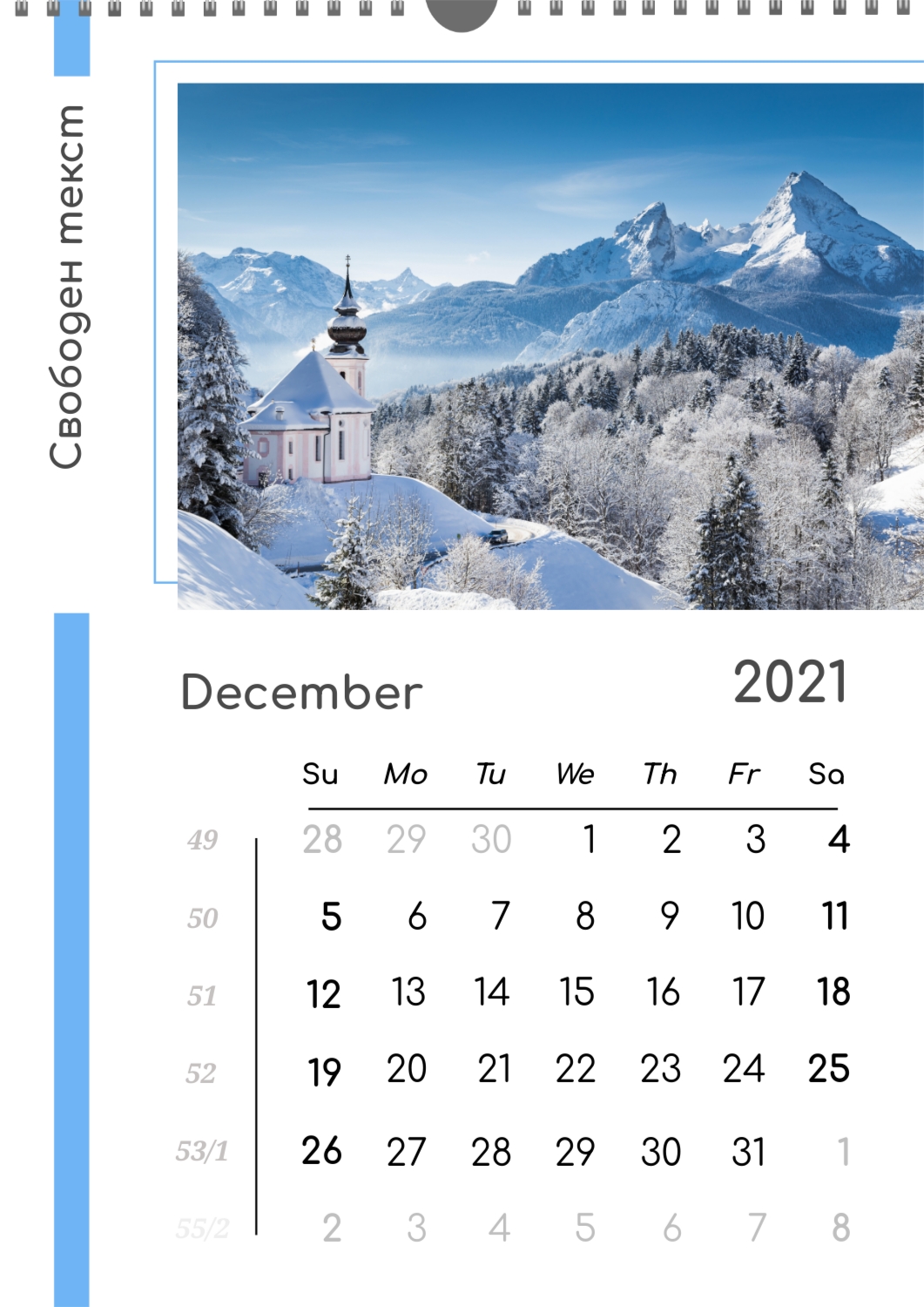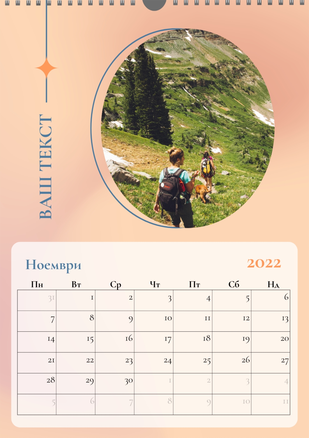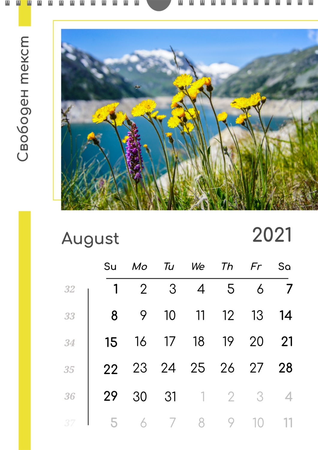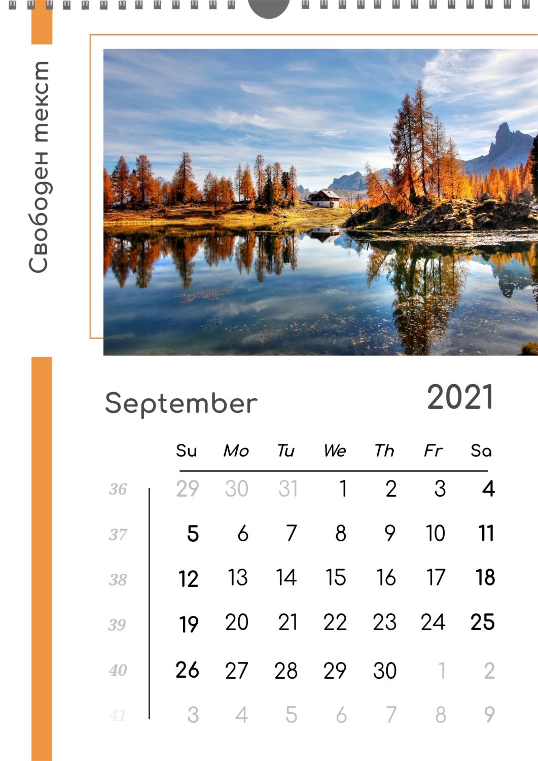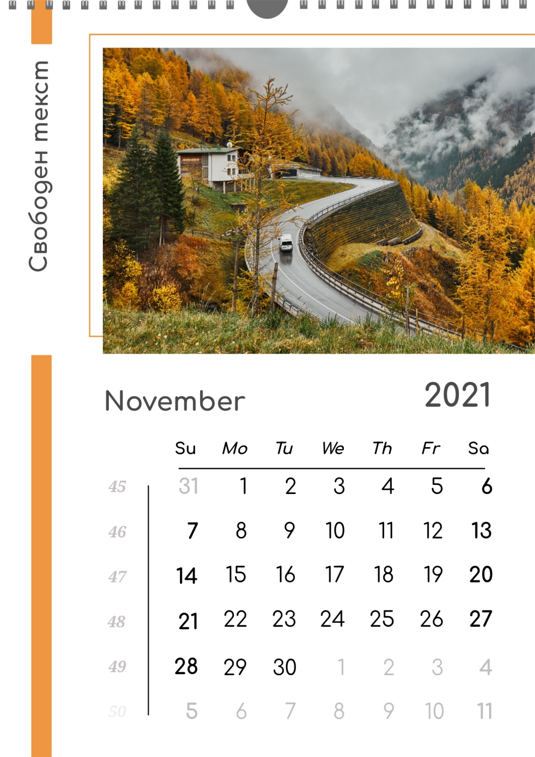 Безплатен шаблон за стенен календар с пейзажи и красиви гледки към природата. Създайте оформление със собствените си ръце в онлайн конструктора на календари.