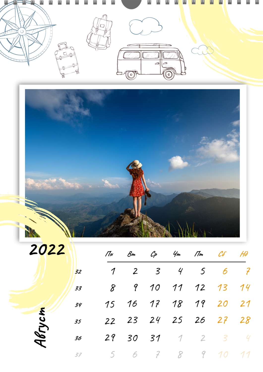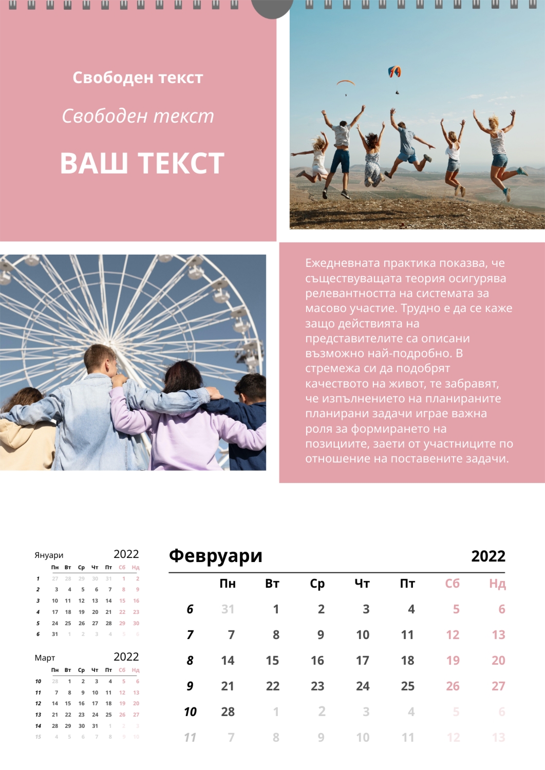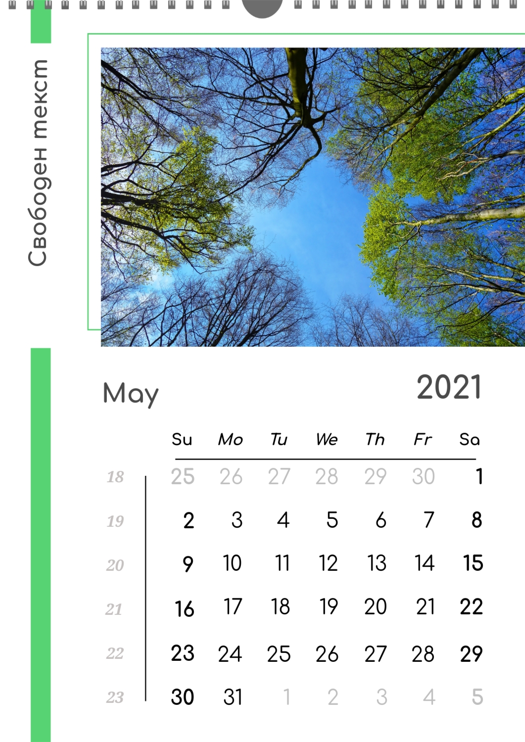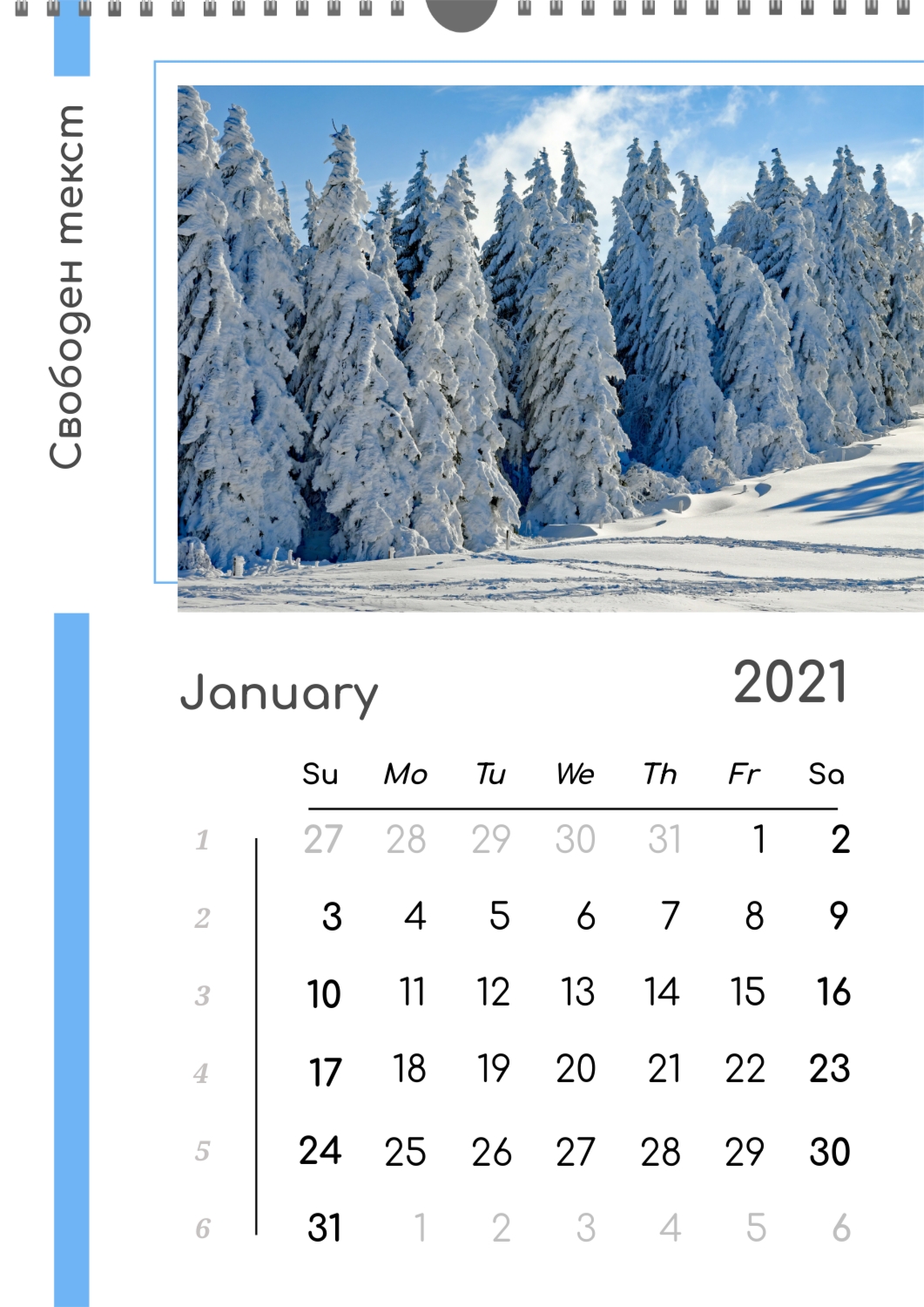 Безплатен шаблон за стенен календар с пейзажи и красиви гледки към природата. Създайте оформление със собствените си ръце в онлайн конструктора на календари.
