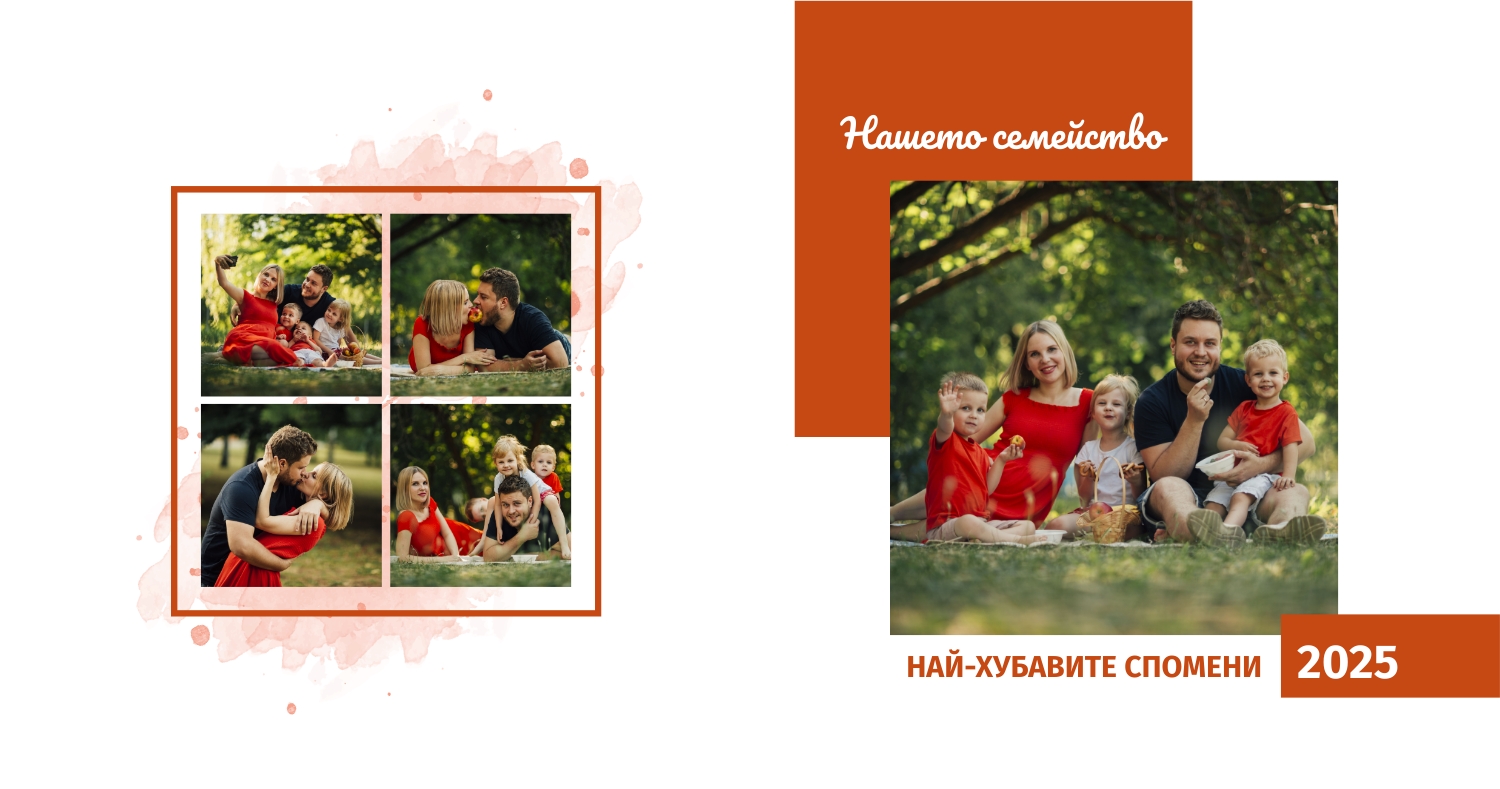 Безплатен шаблон за семейна фотокнига в ретро стил. Създайте оформление със собствените си ръце в онлайн конструктора на фотокниги.