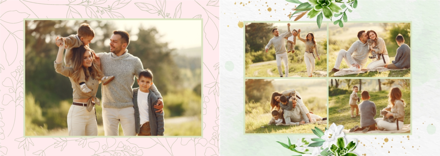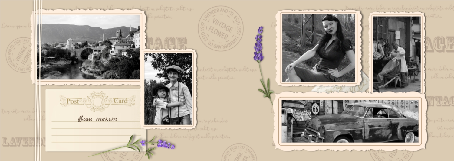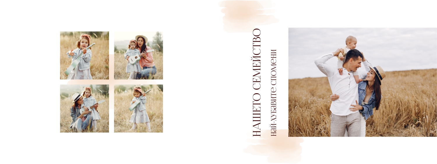 Безплатен шаблон за семейна фотокнига в ретро стил. Създайте оформление със собствените си ръце в онлайн конструктора на фотокниги.