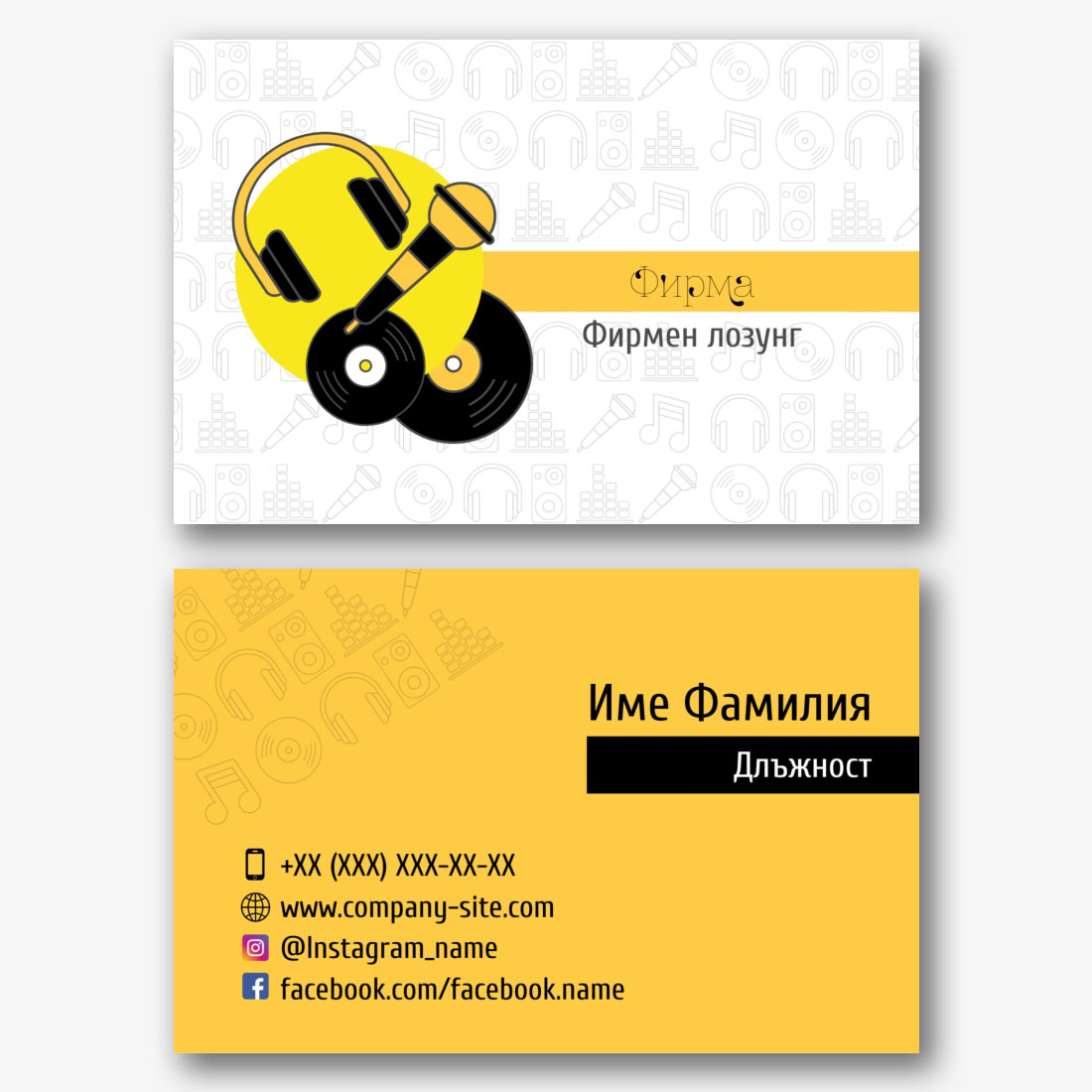 Безплатен шаблон за визитка на пианист, учител по музика, Музикално училище, магазин за музикални инструменти. Създайте оформление със собствените си ръце в дизайнера на визитки.