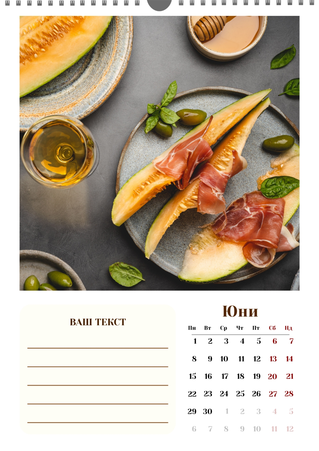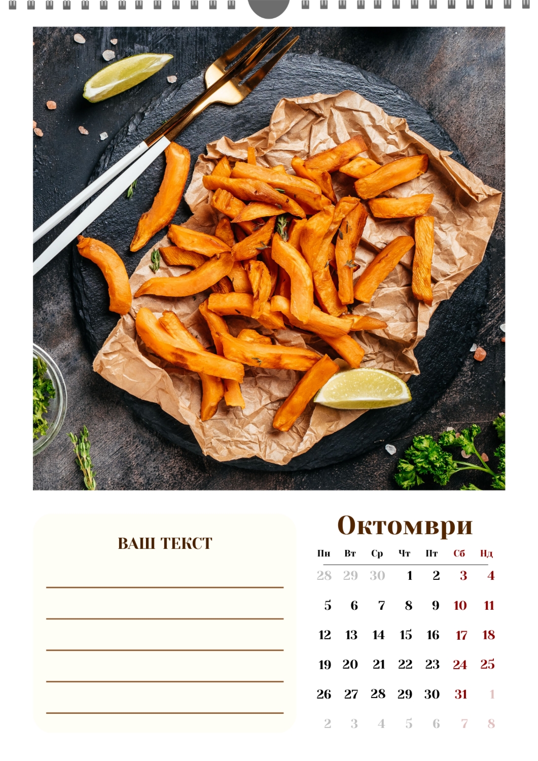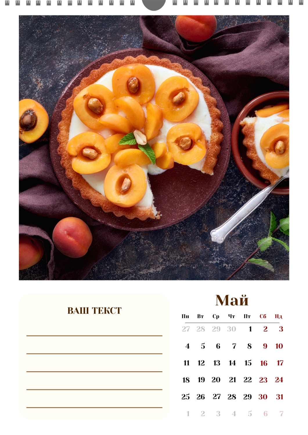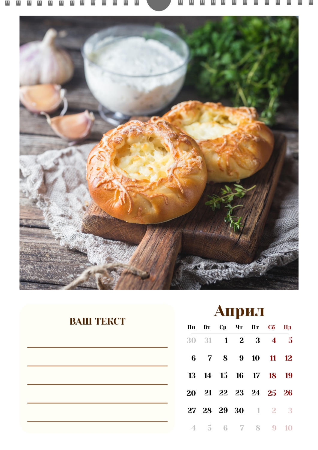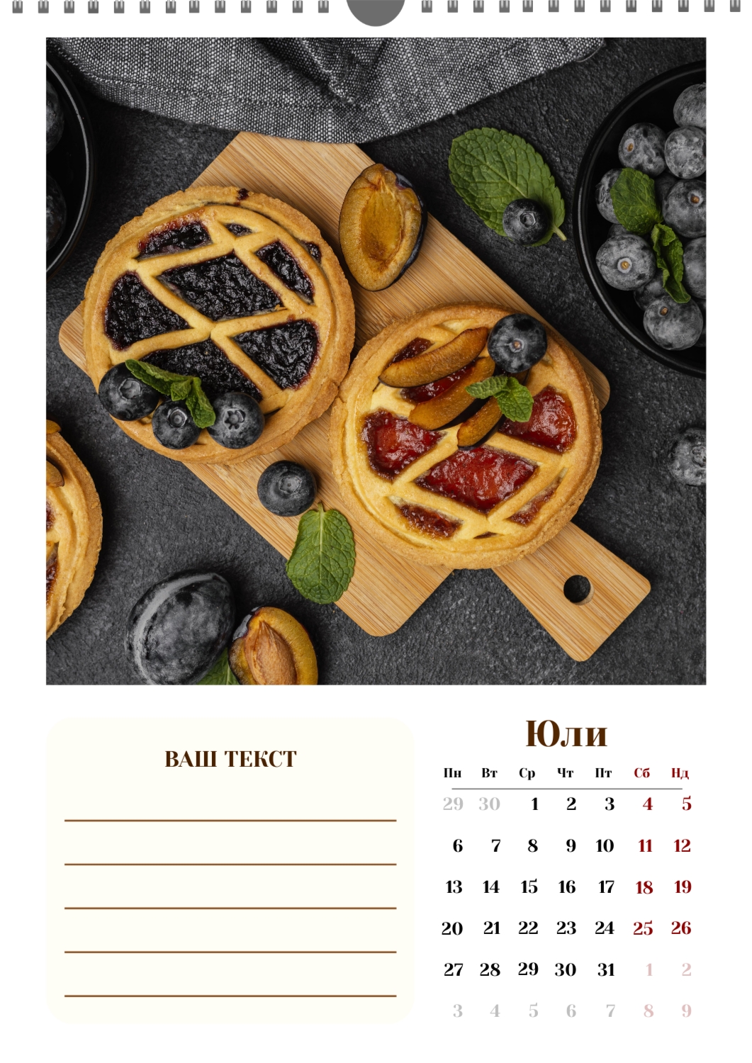 Безплатен шаблон за стенен календар за реклама на Сладкарница, Пекарна, кулинарни курсове. Създайте оформление "направи си сам" в онлайн конструктора на календари.