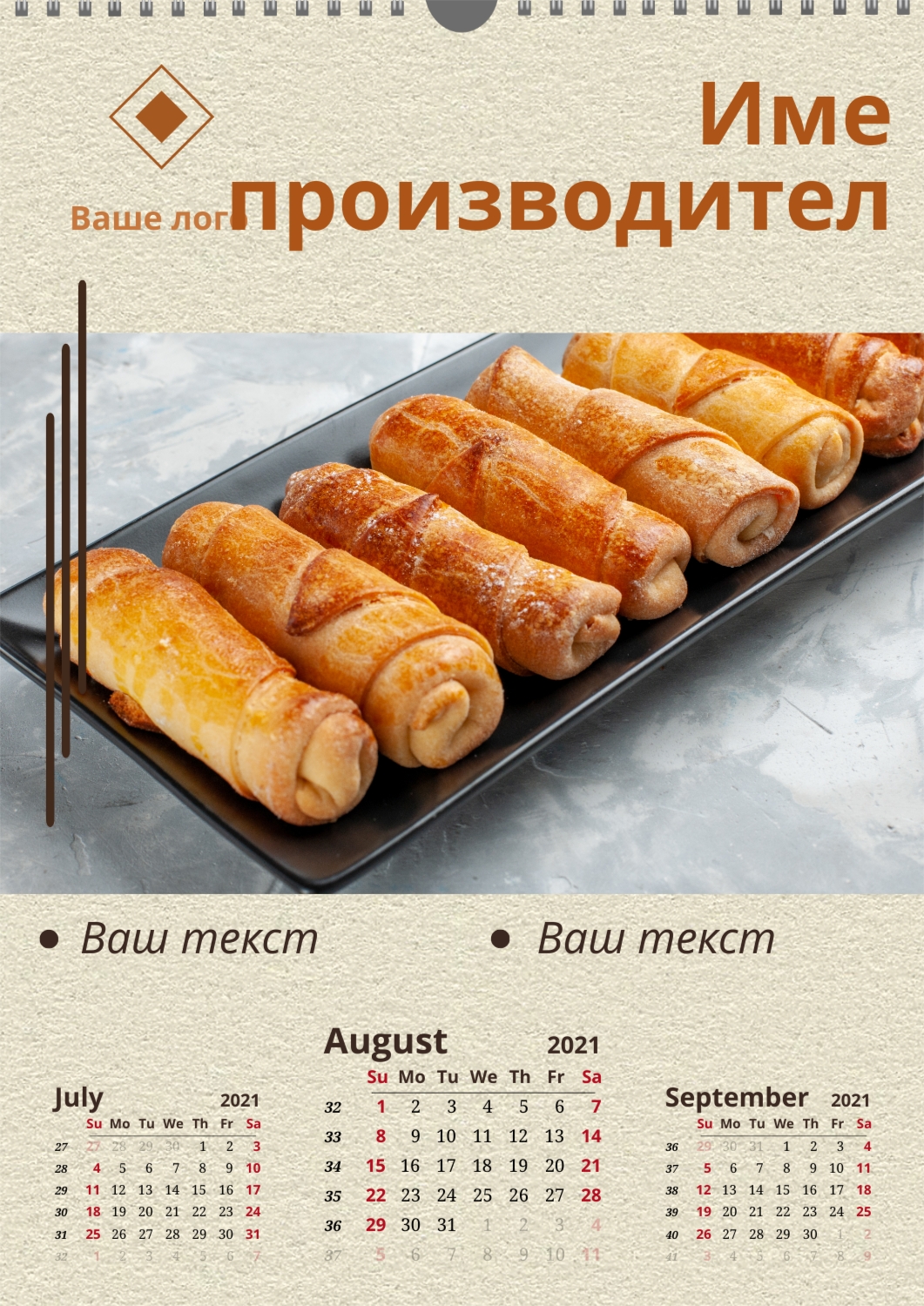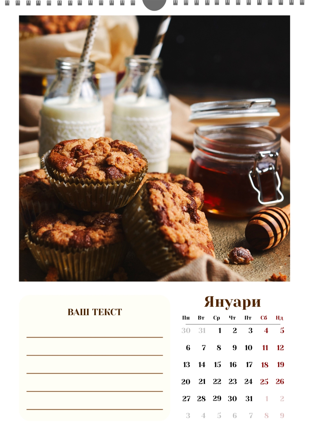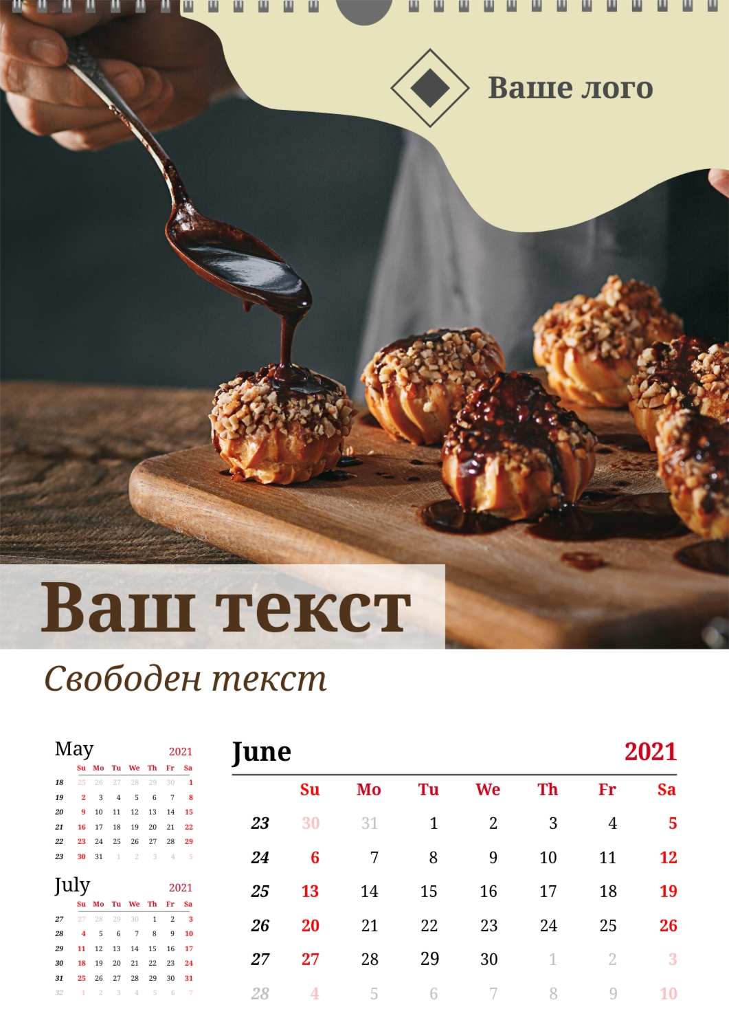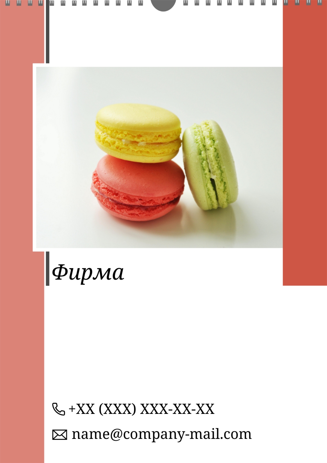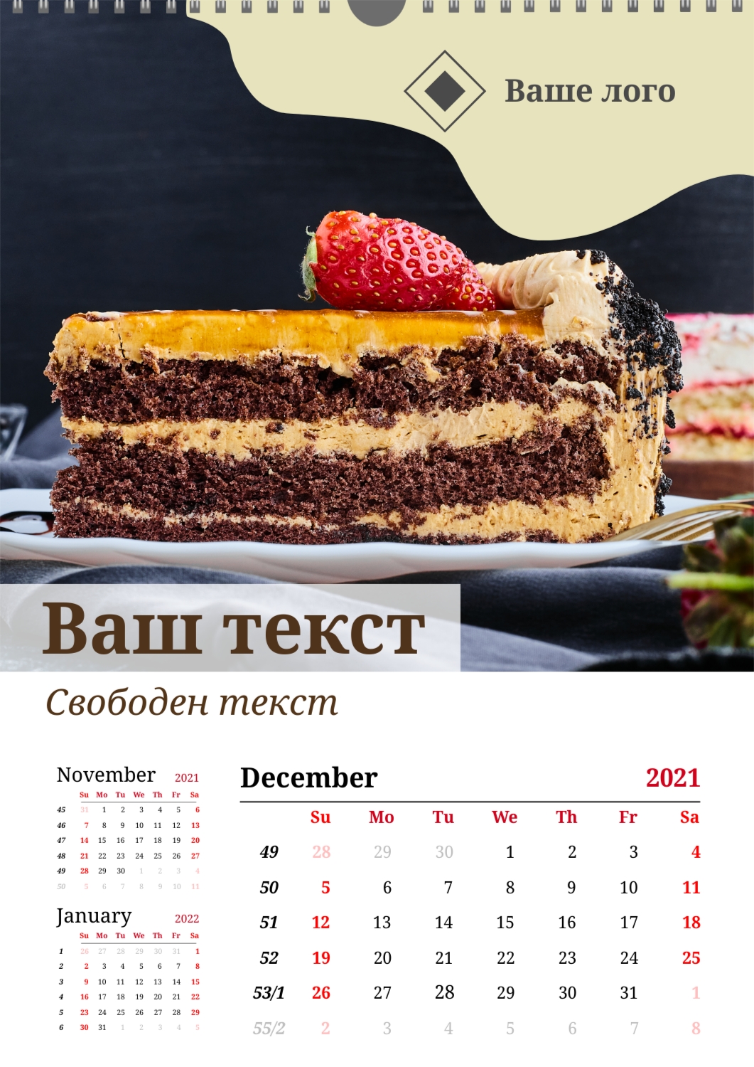 Безплатен шаблон за стенен календар за реклама на Сладкарница, Пекарна, Магазин за сладкиши. Създайте оформление "направи си сам" в онлайн конструктора на календари.
