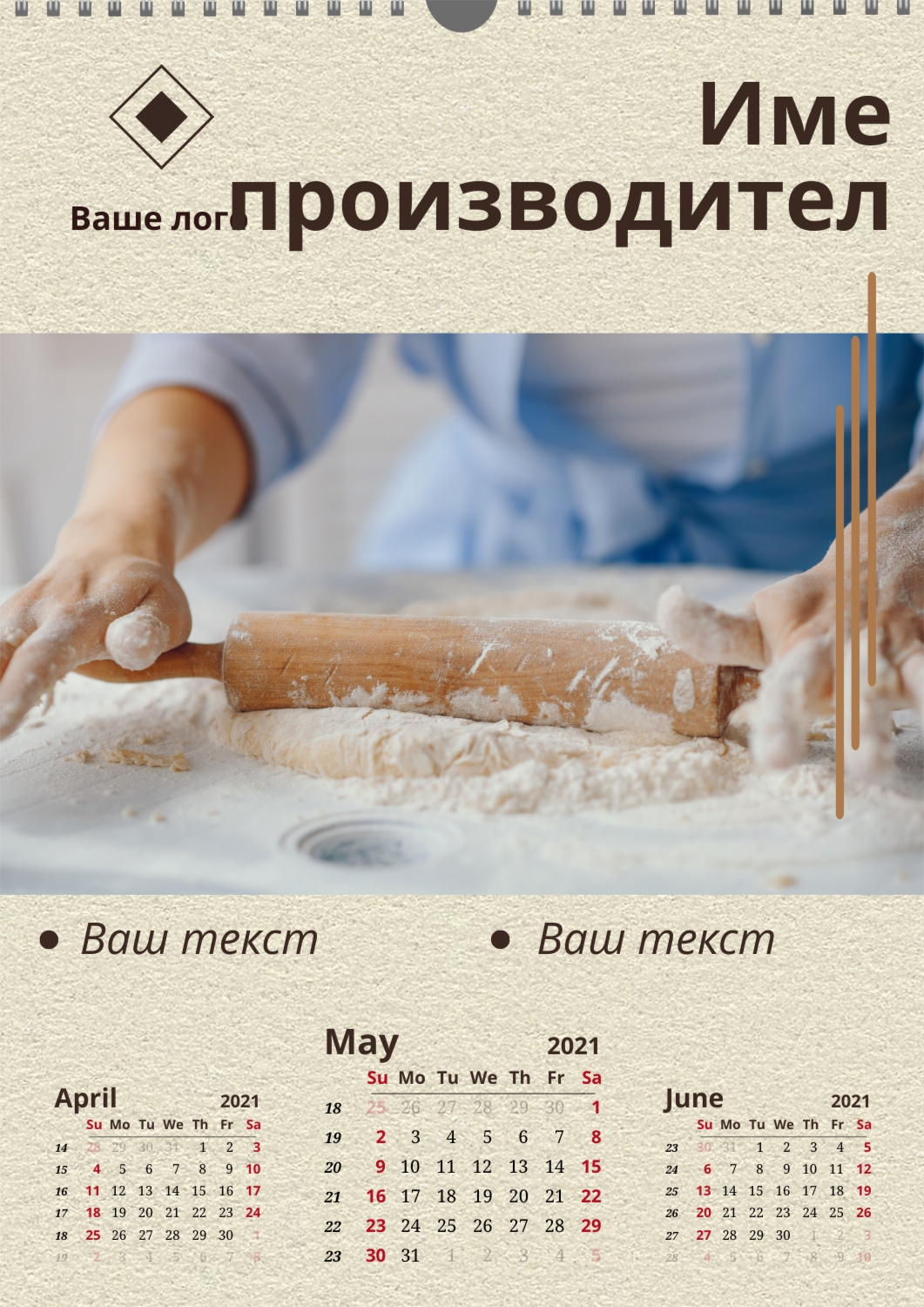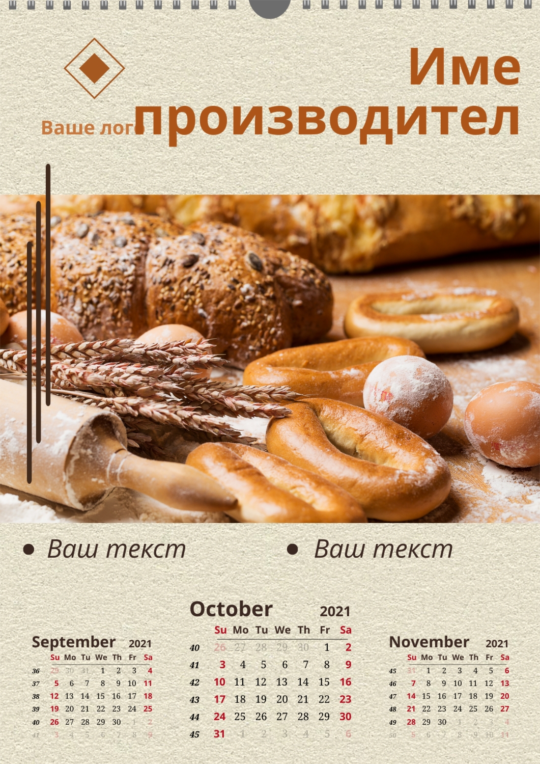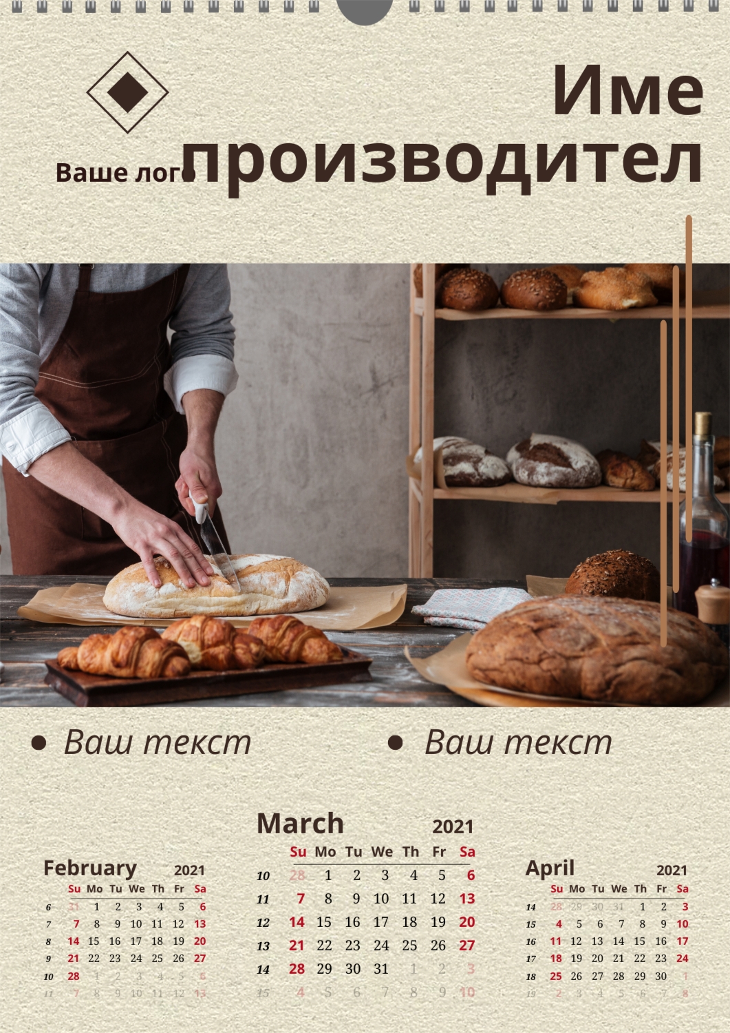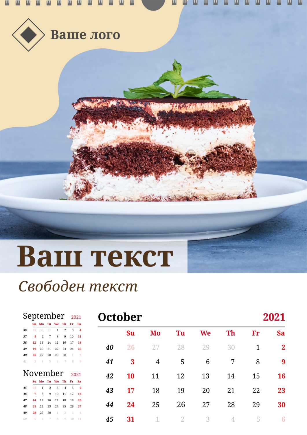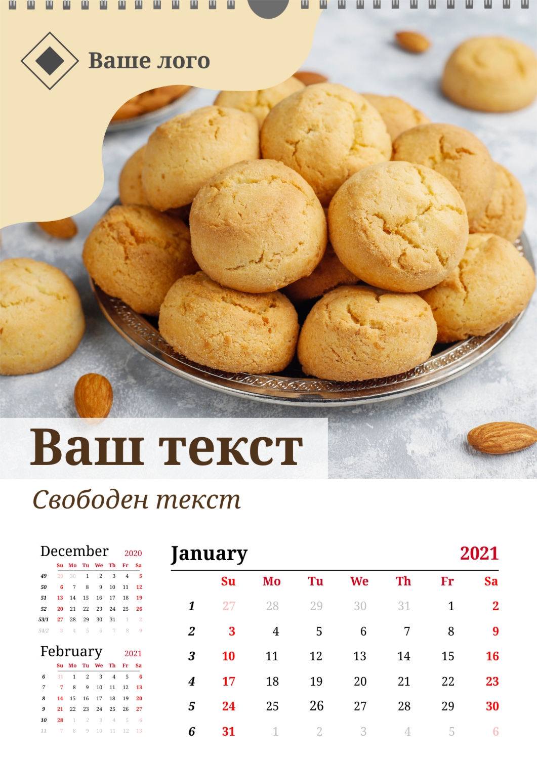 Безплатен шаблон за стенен календар за реклама на Сладкарница, Пекарна, Магазин за сладкиши. Създайте оформление "направи си сам" в онлайн конструктора на календари.