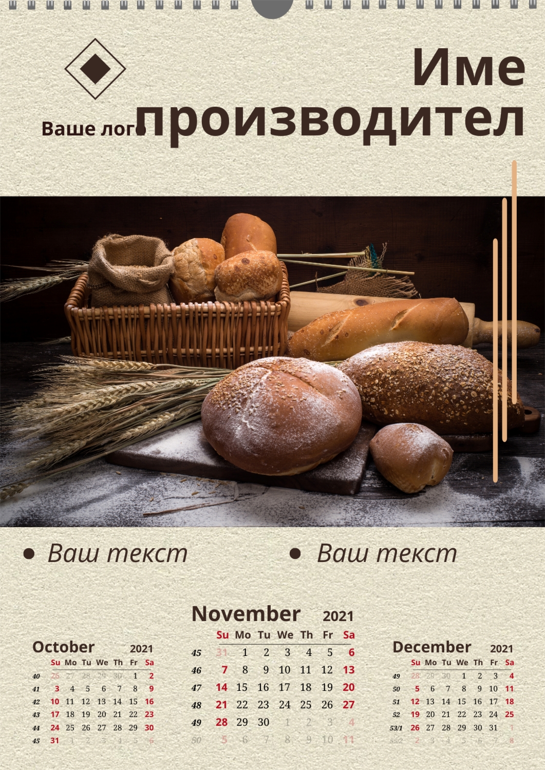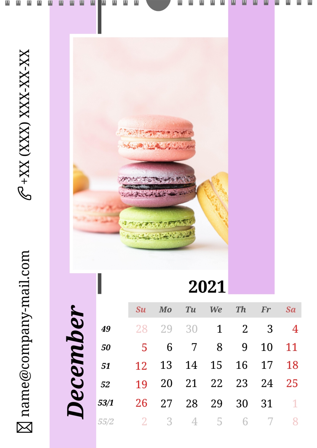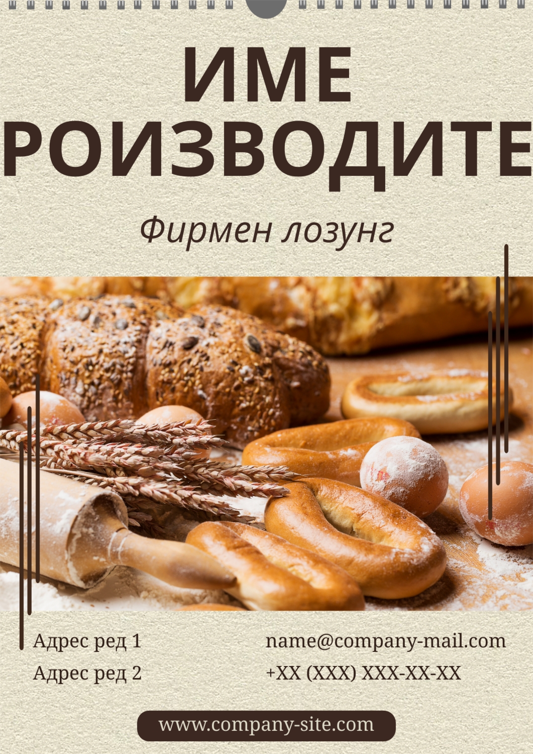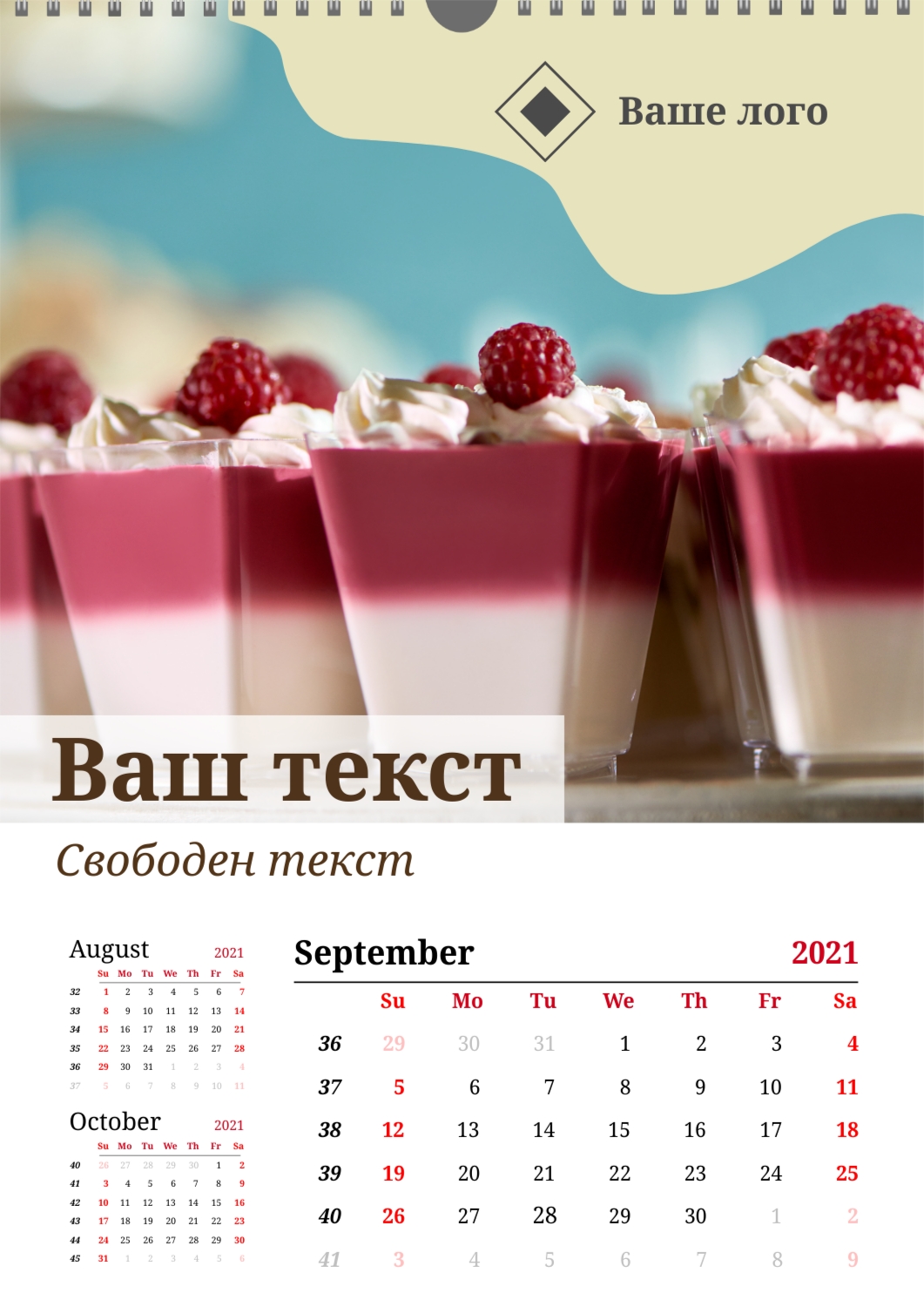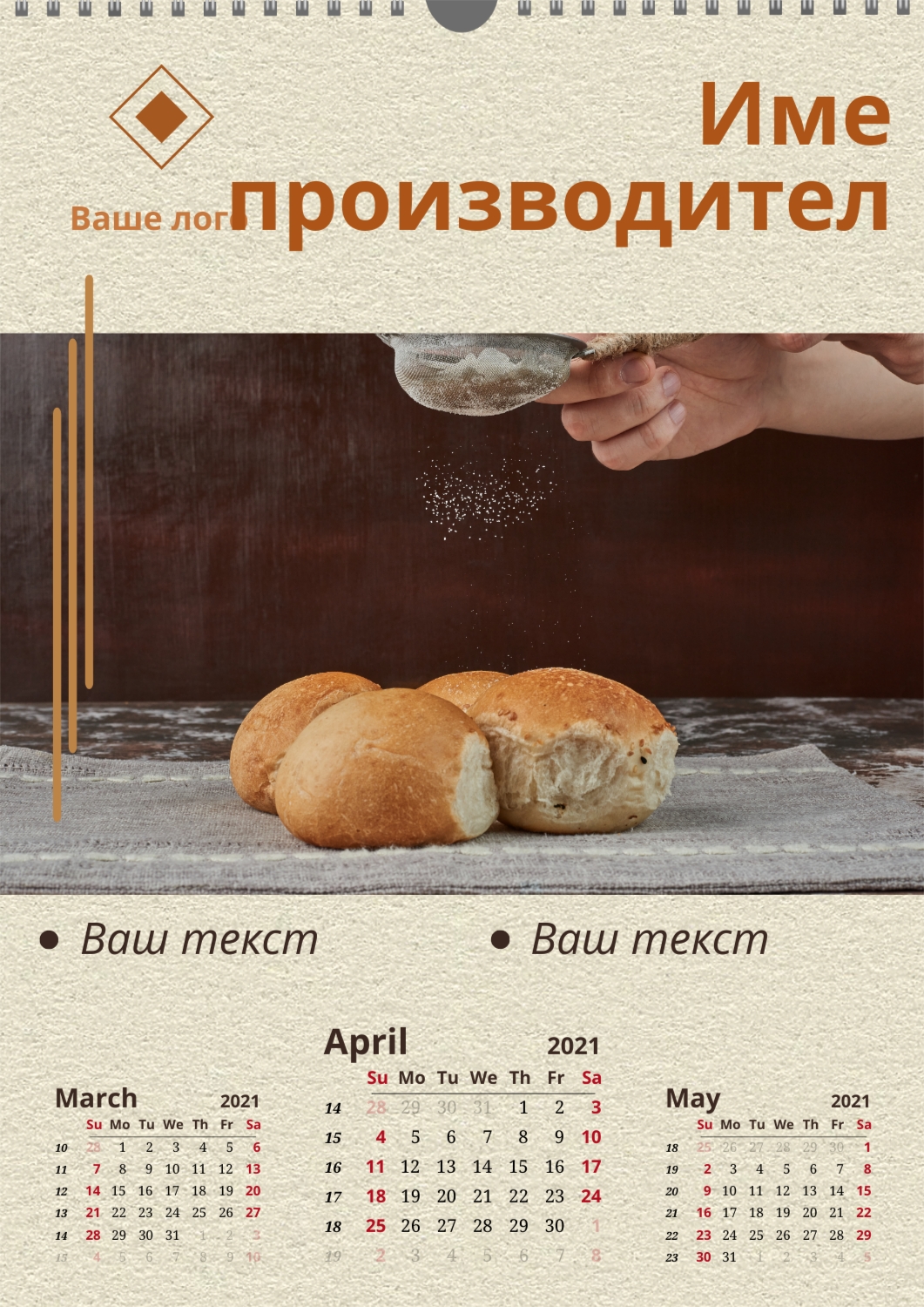 Безплатен шаблон за стенен календар за реклама на Сладкарница, Пекарна, Магазин за сладкиши. Създайте оформление "направи си сам" в онлайн конструктора на календари.