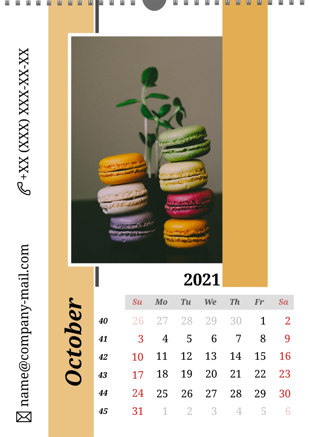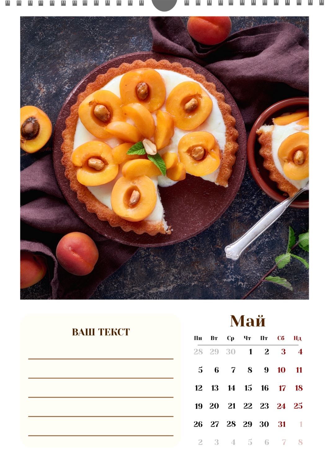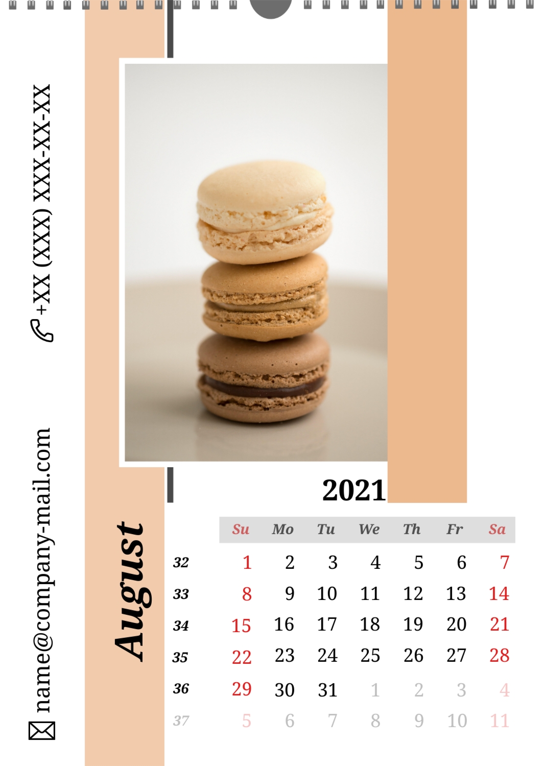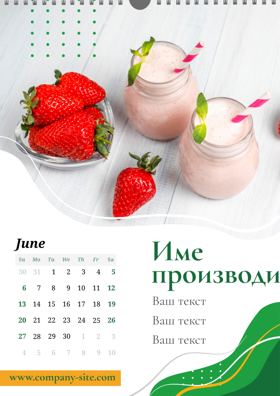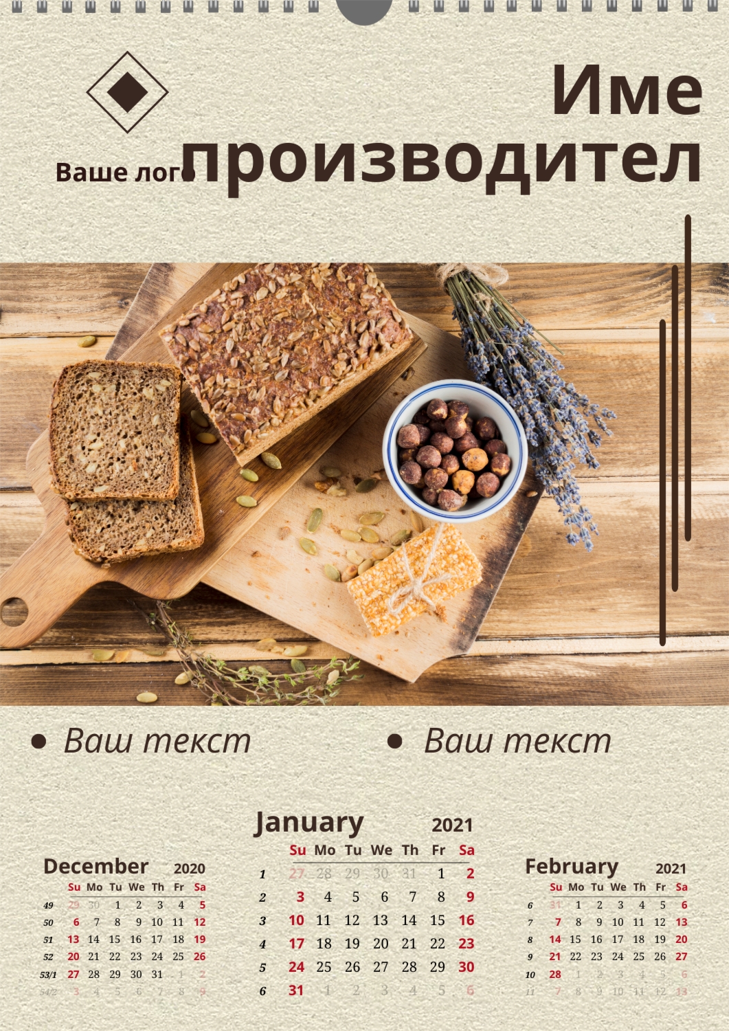 Безплатен шаблон за стенен календар за реклама на Сладкарница, Пекарна, Магазин за сладкиши. Създайте оформление "направи си сам" в онлайн конструктора на календари.