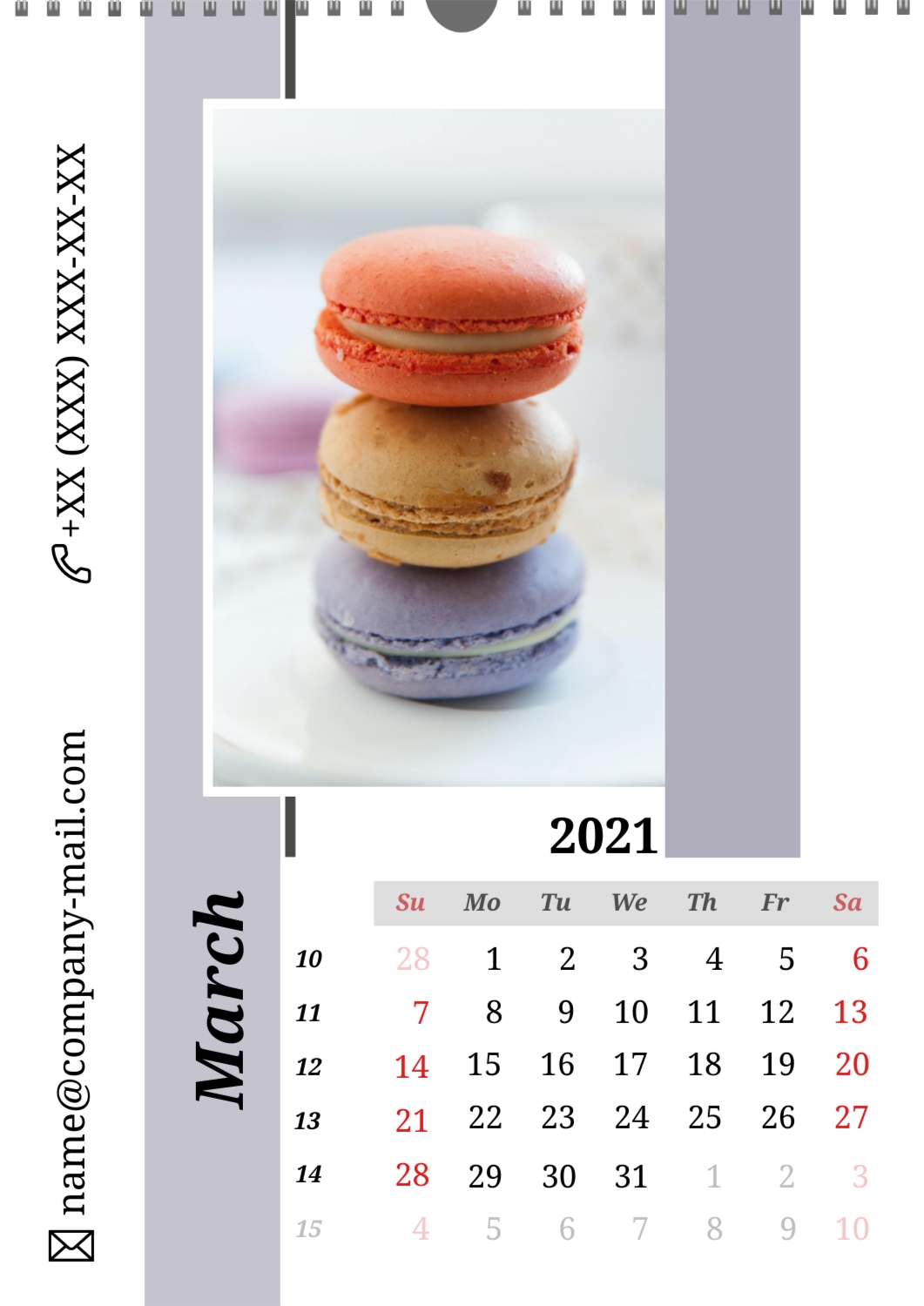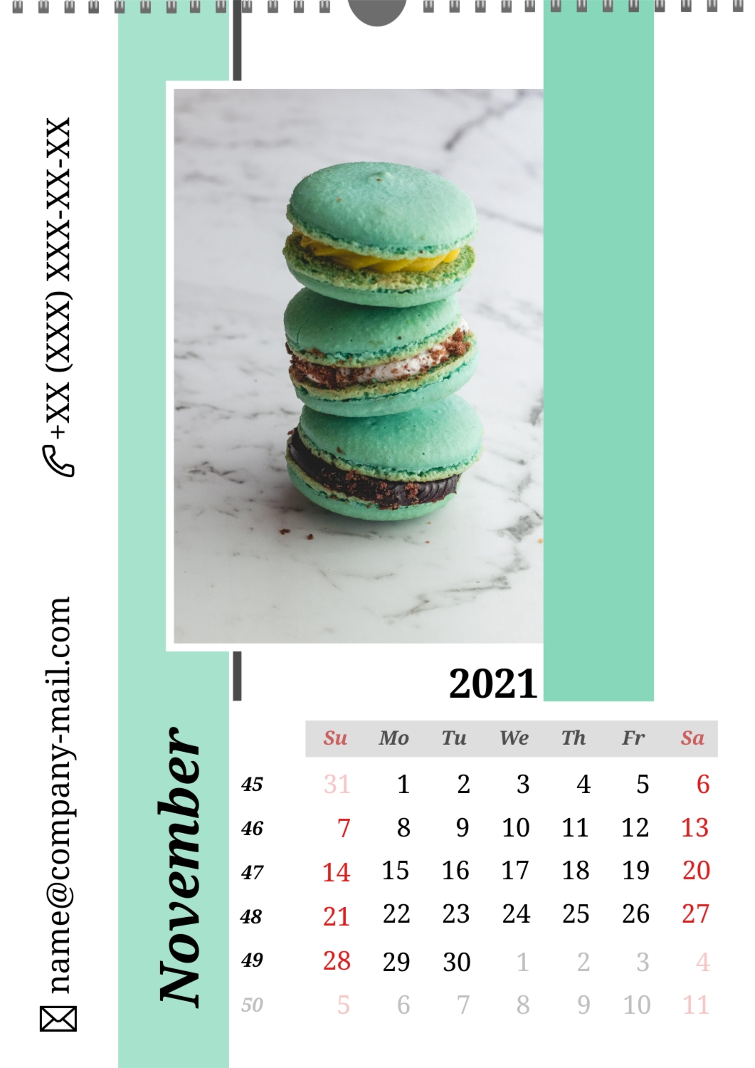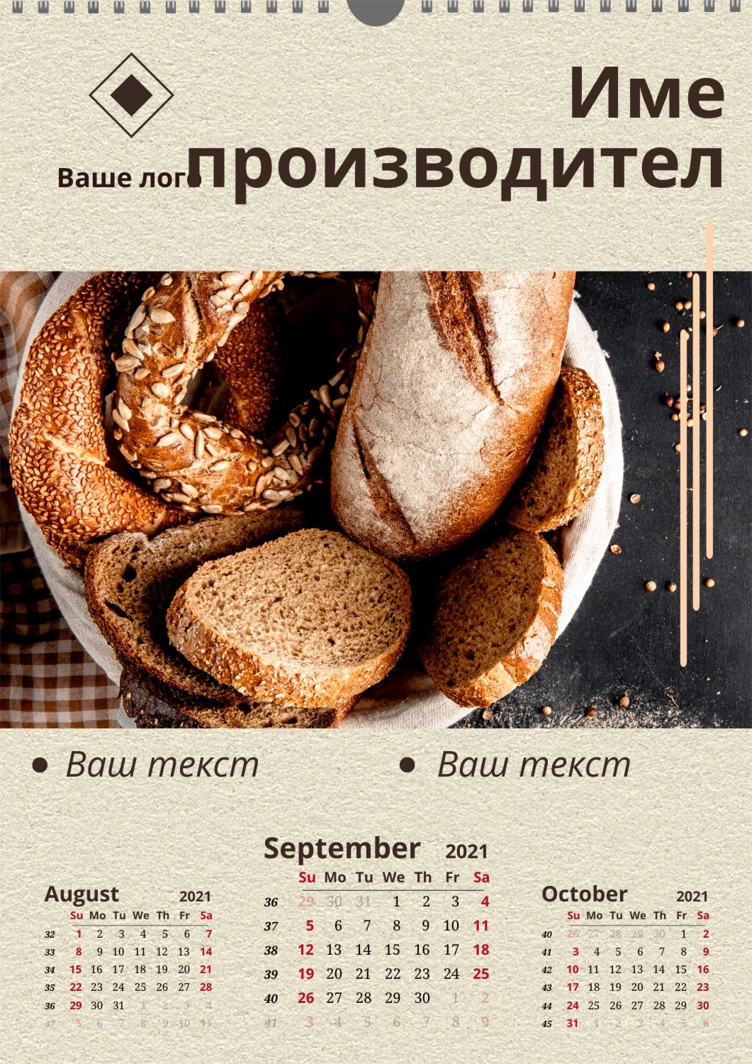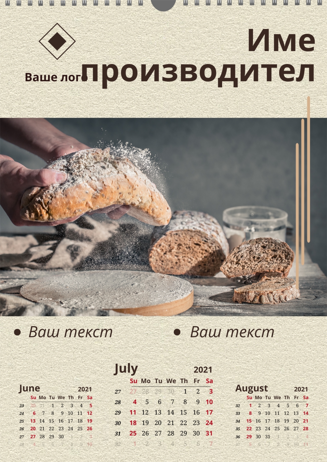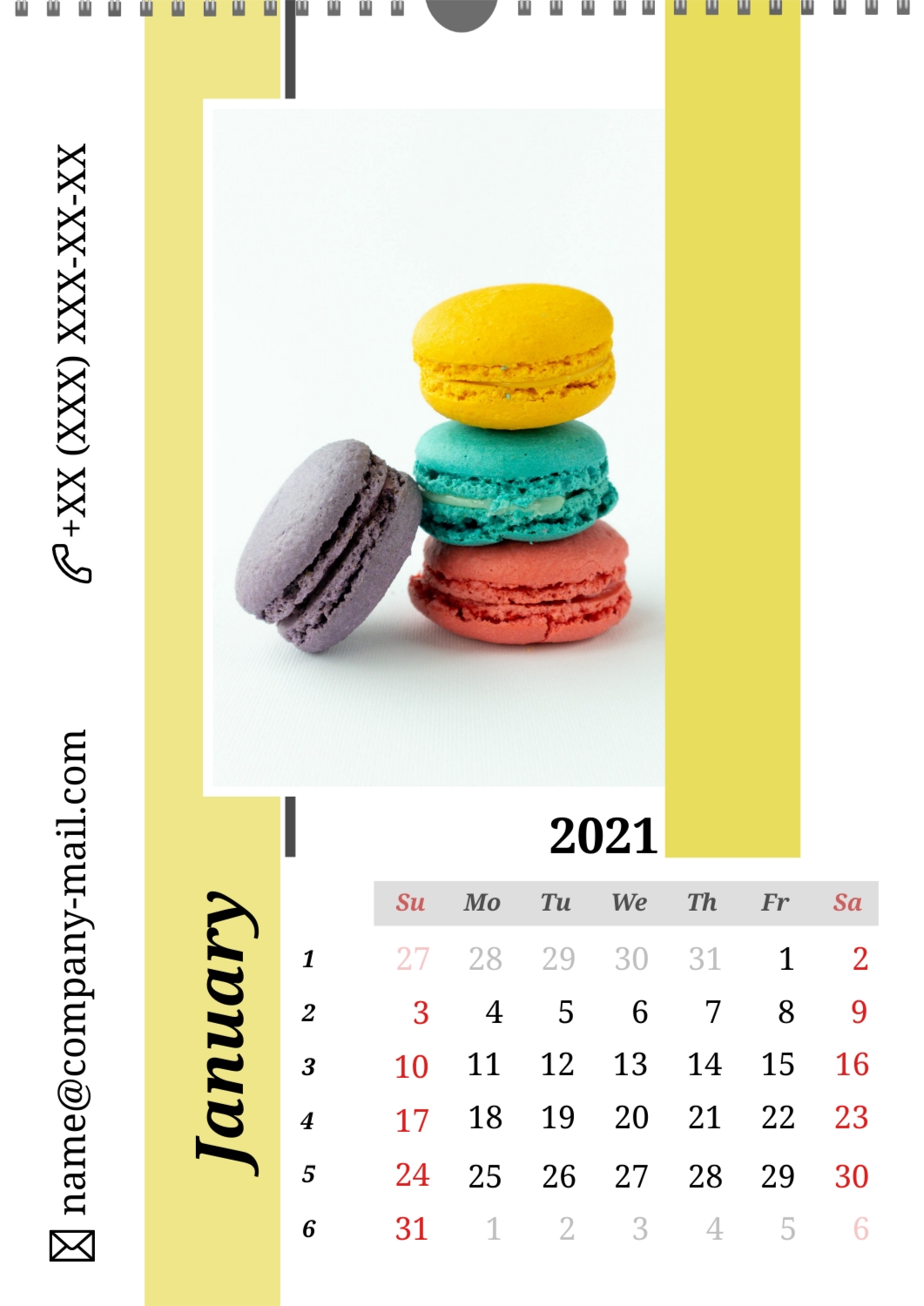 Безплатен шаблон за стенен календар за реклама на Сладкарница, Пекарна, Магазин за сладкиши. Създайте оформление "направи си сам" в онлайн конструктора на календари.