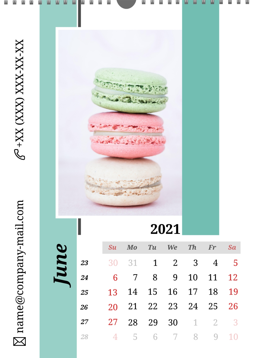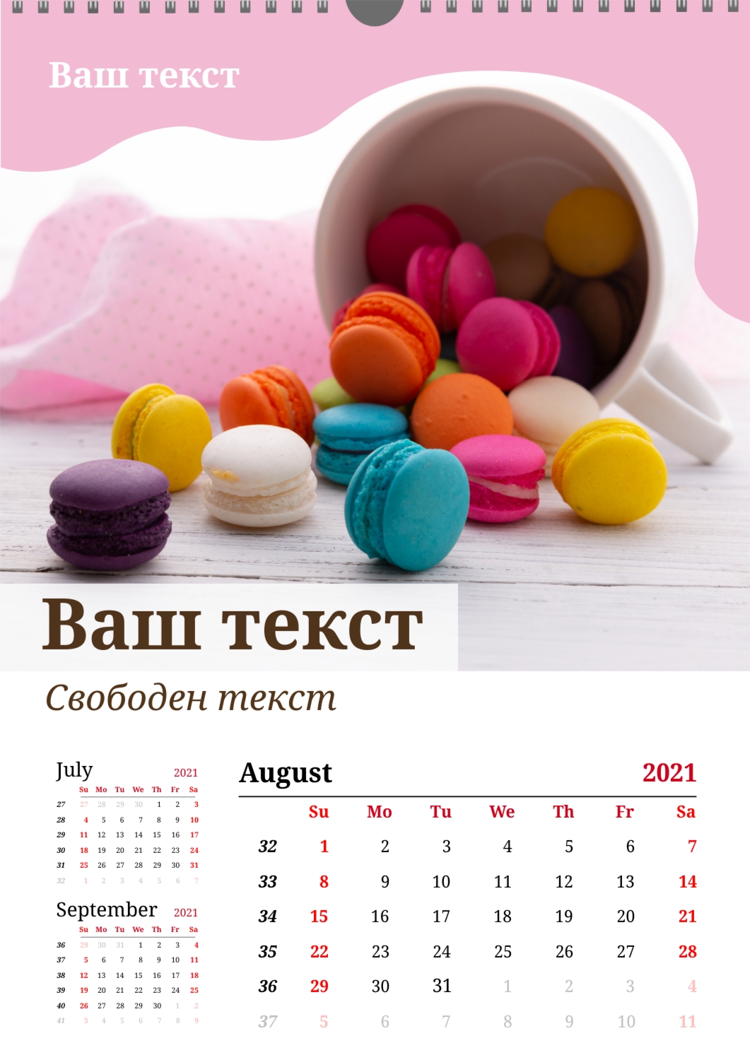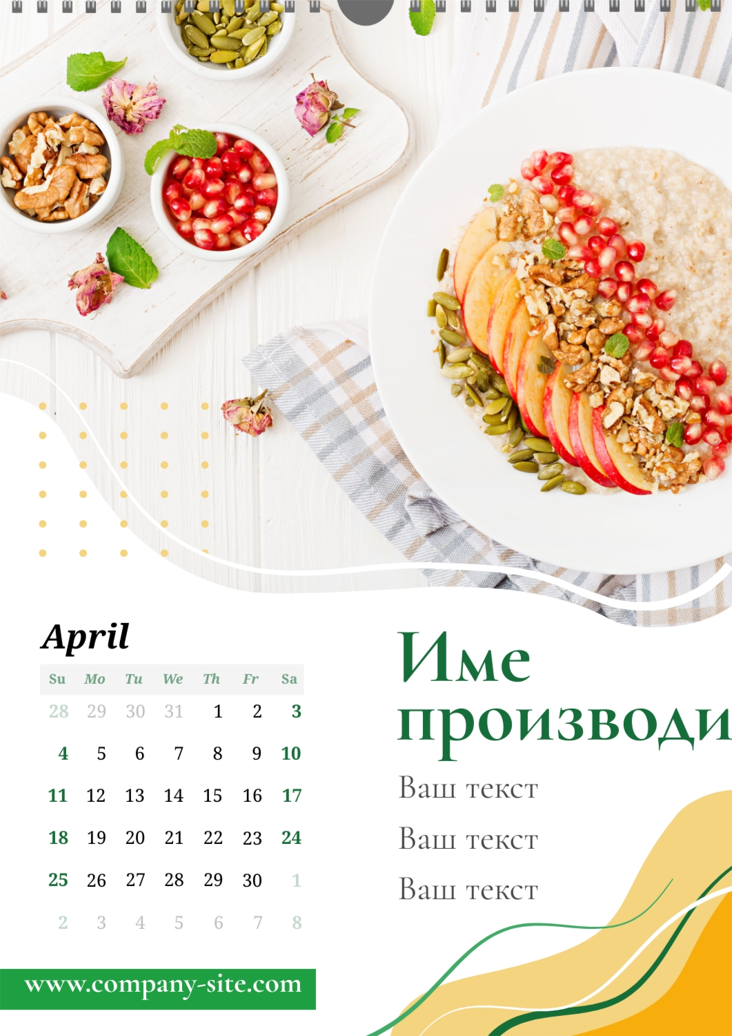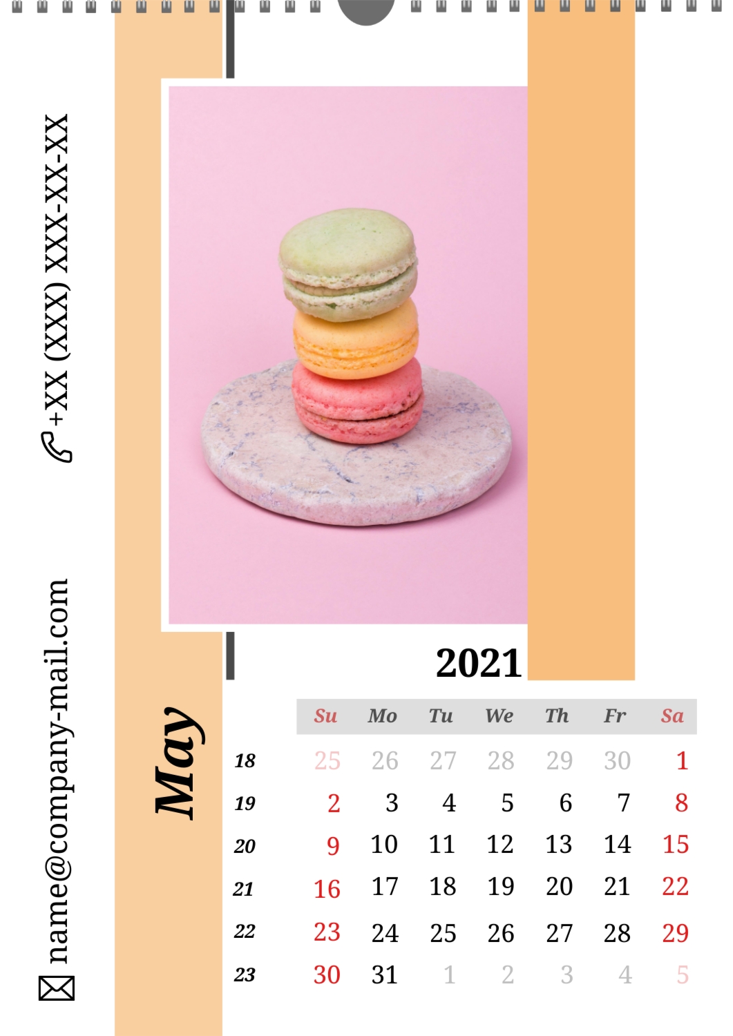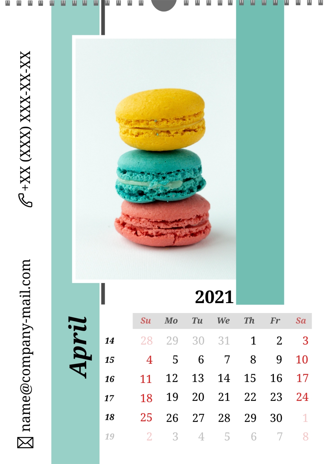 Безплатен шаблон за стенен календар за реклама на Сладкарница, Пекарна, Магазин за сладкиши. Създайте оформление "направи си сам" в онлайн конструктора на календари.