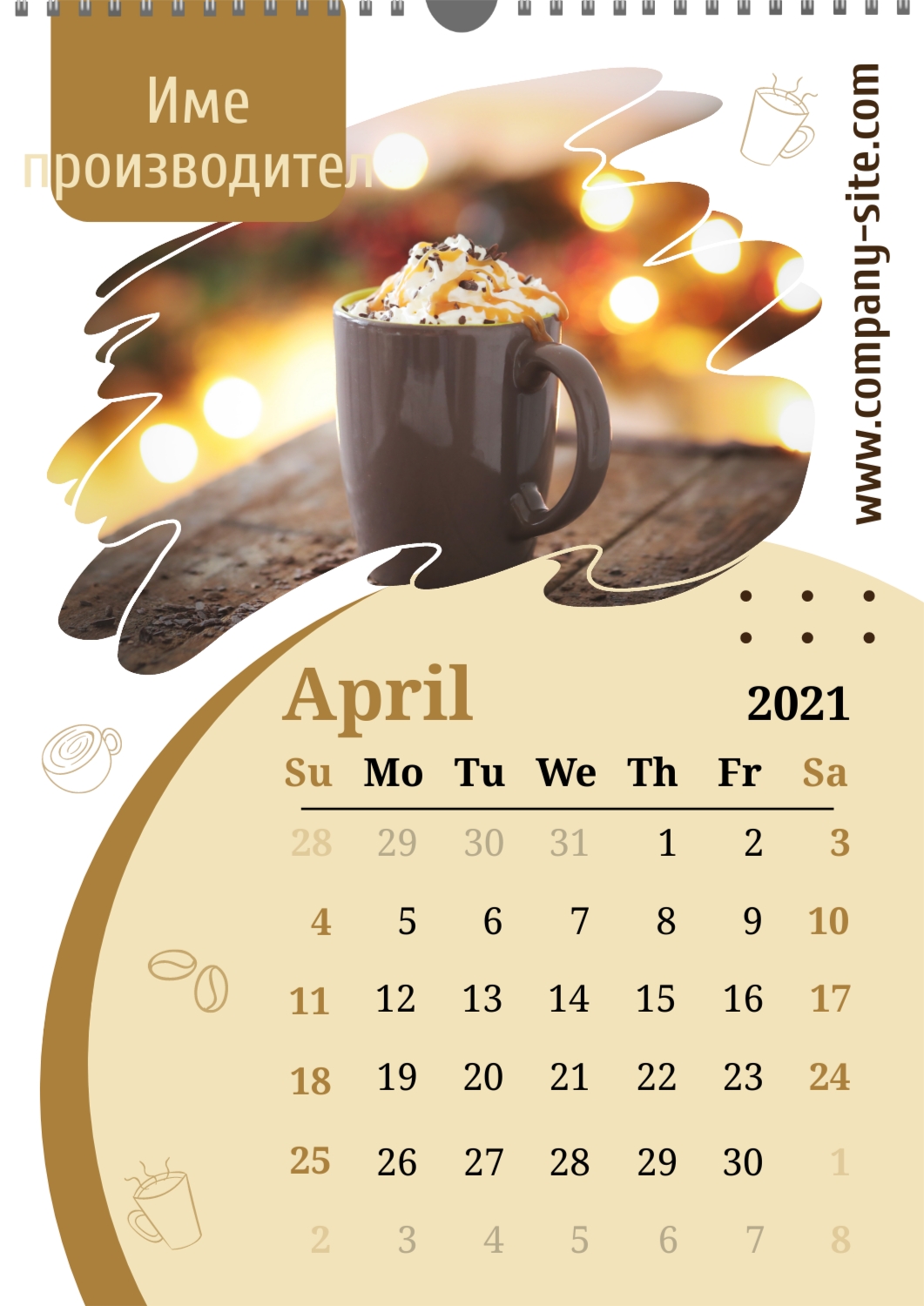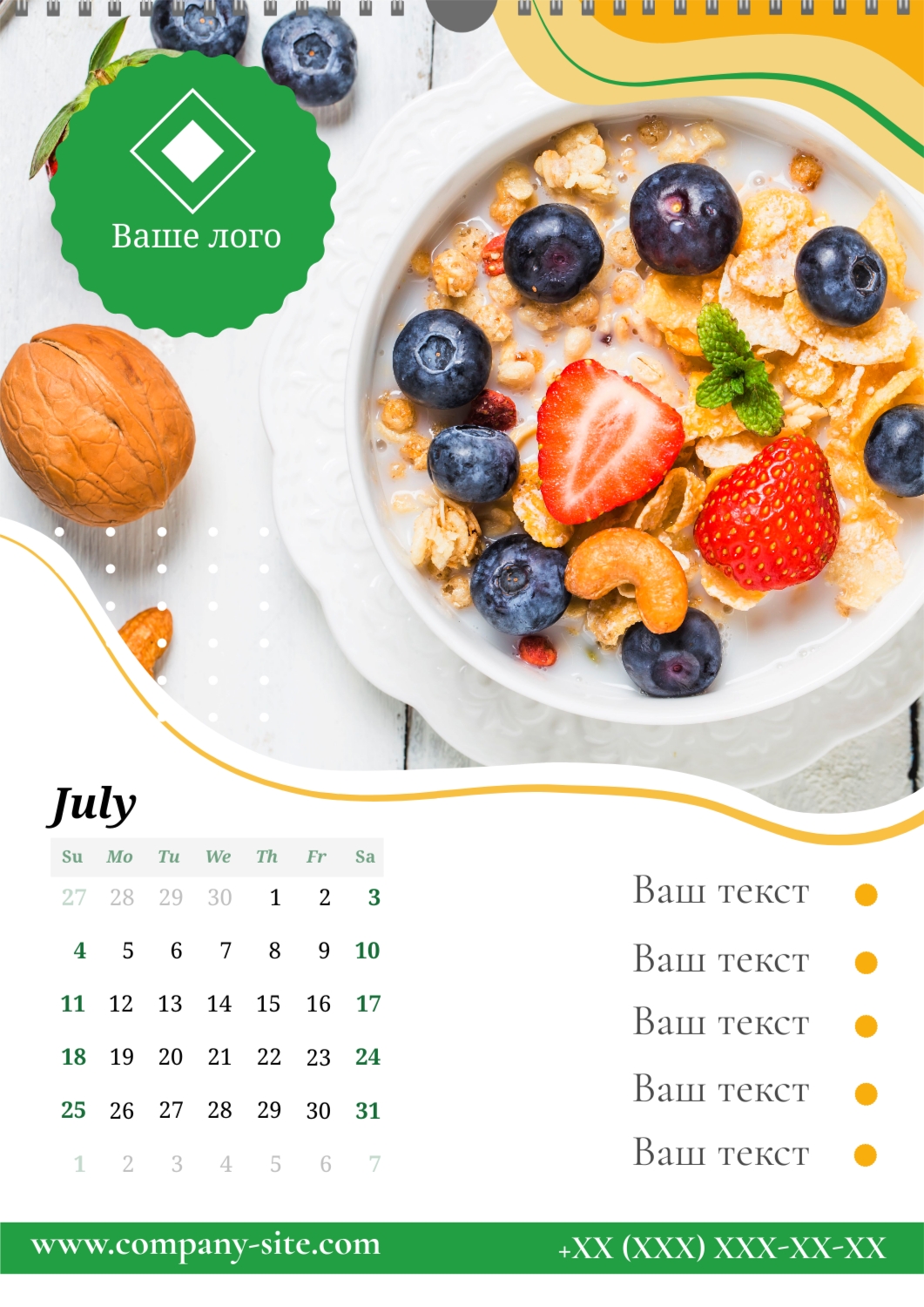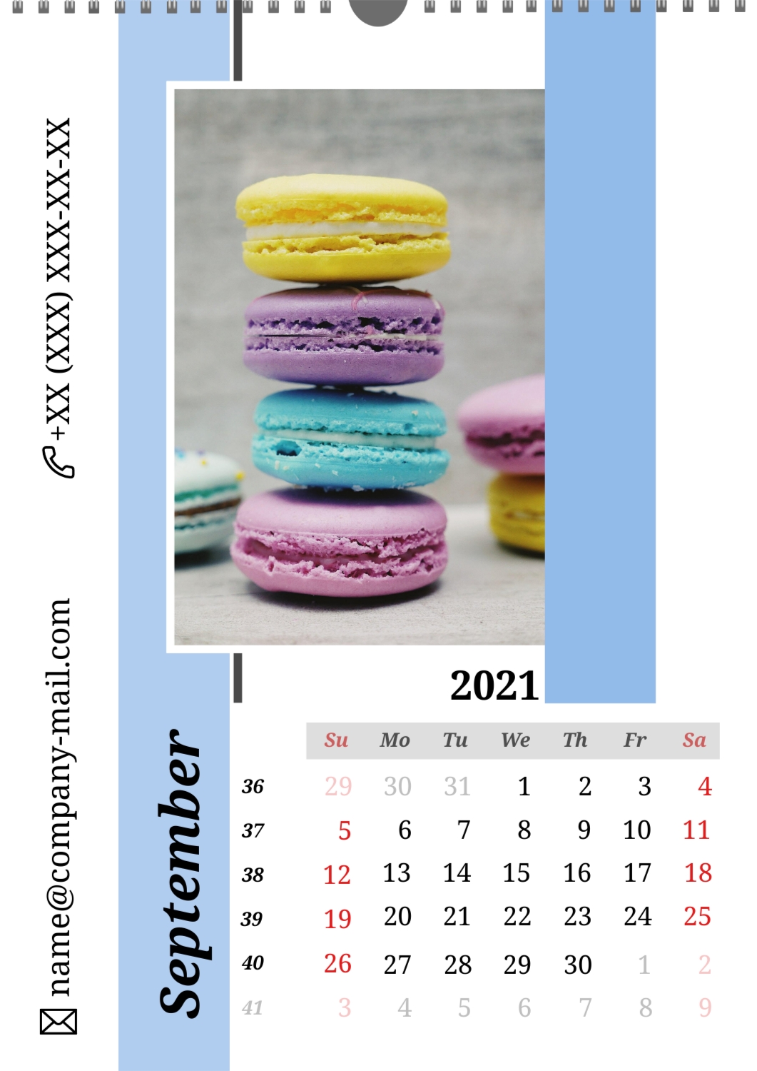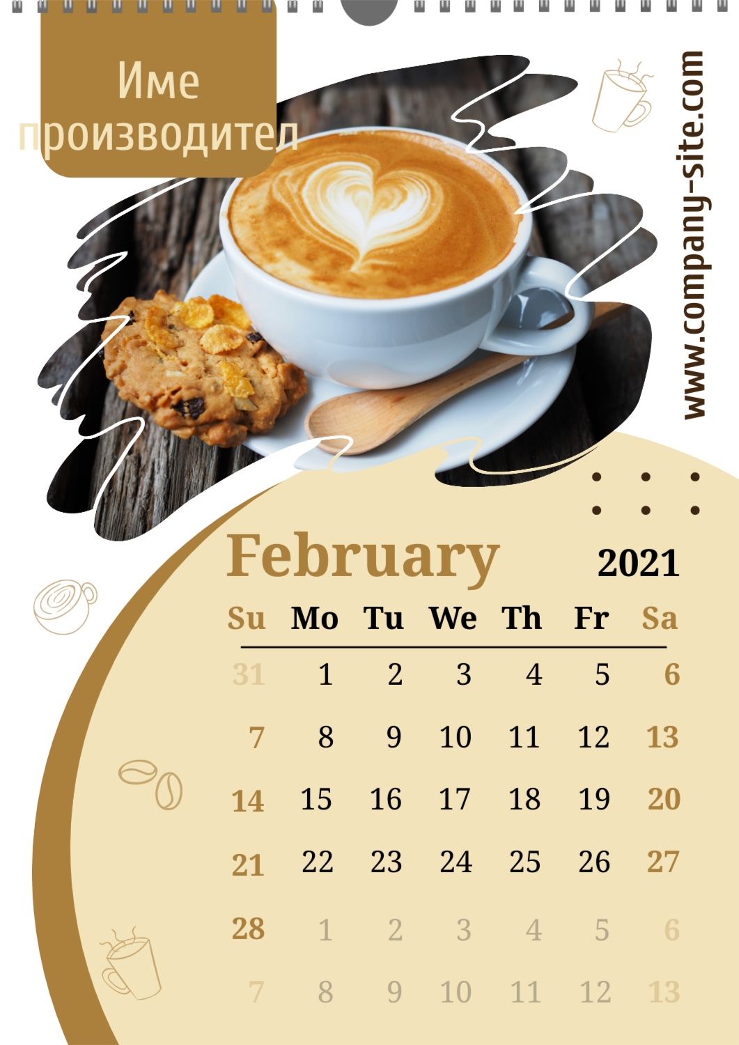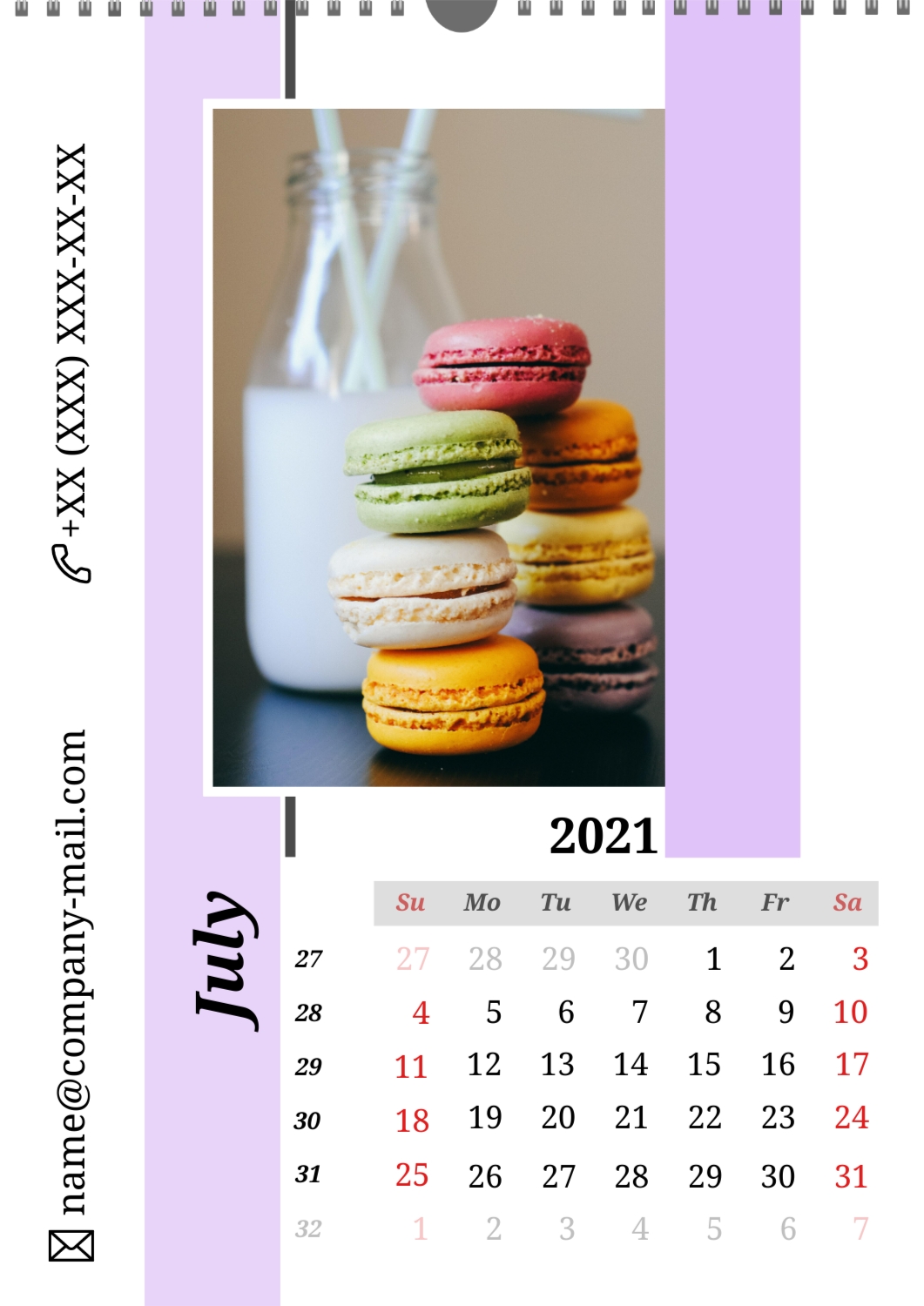 Безплатен шаблон за стенен календар за реклама на Сладкарница, Пекарна, Магазин за сладкиши. Създайте оформление "направи си сам" в онлайн конструктора на календари.