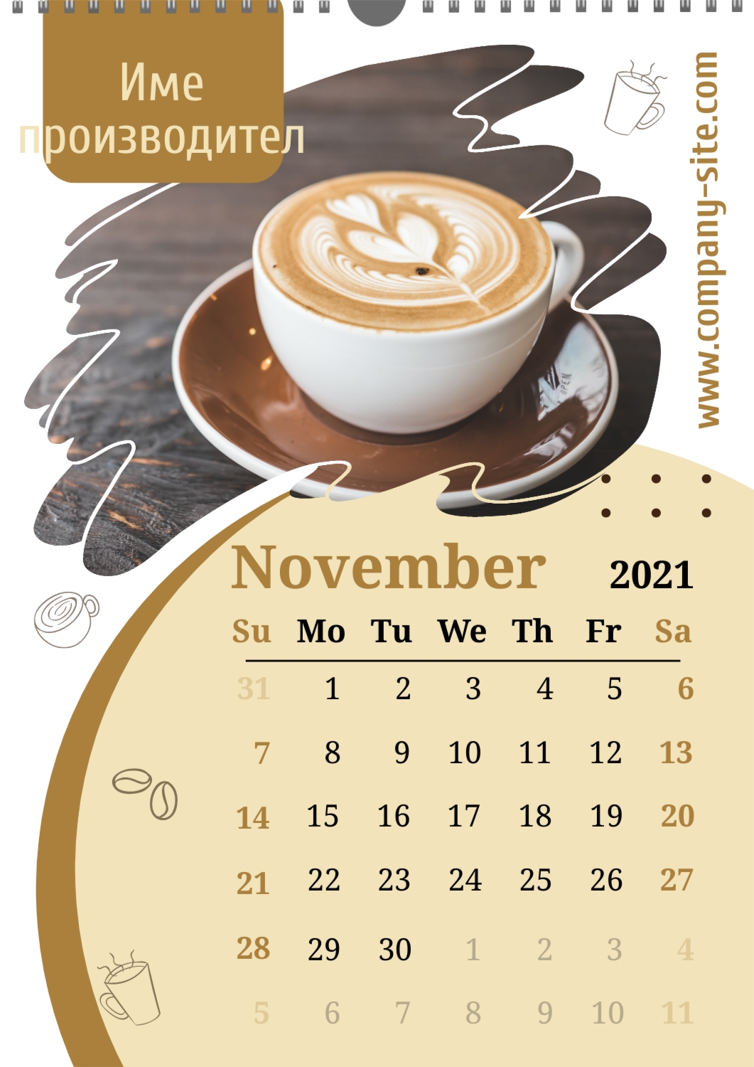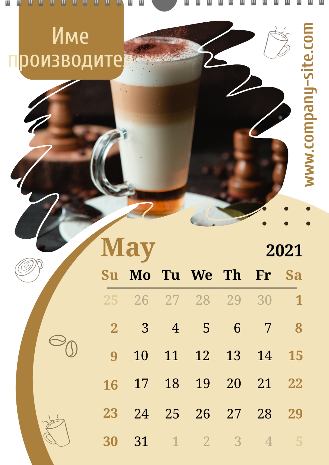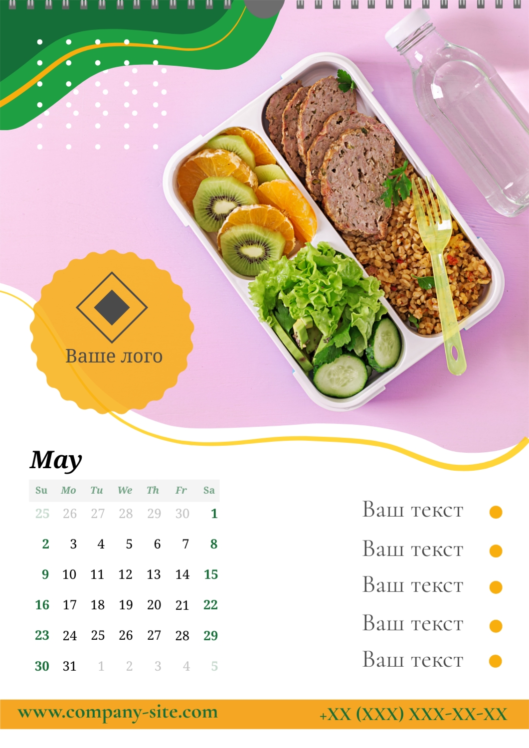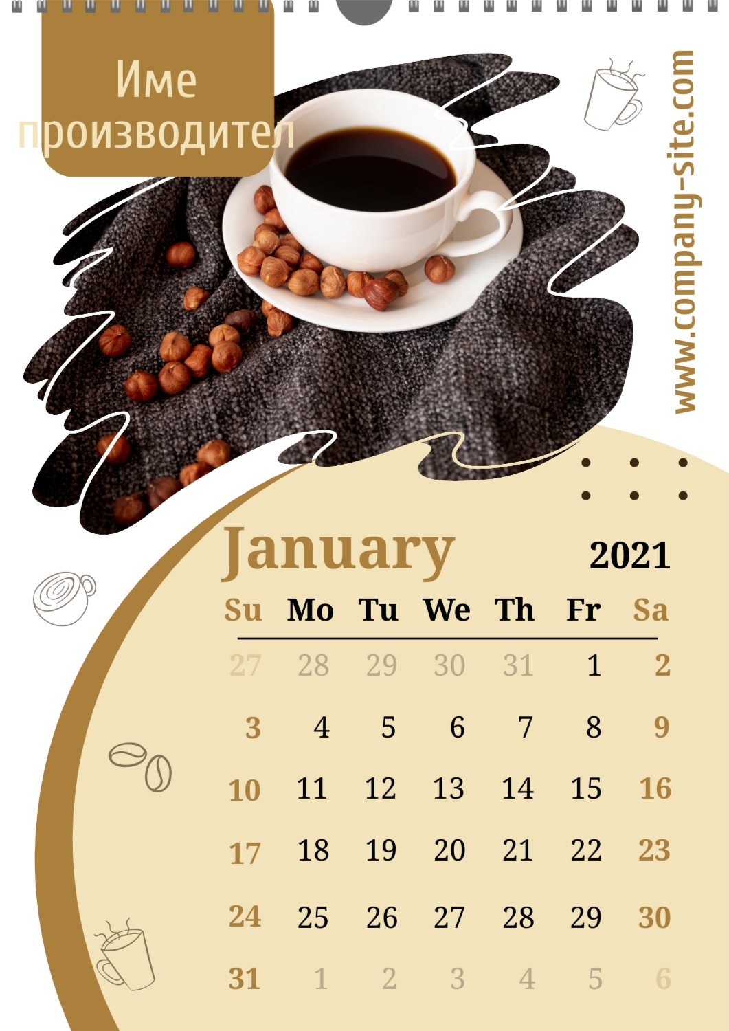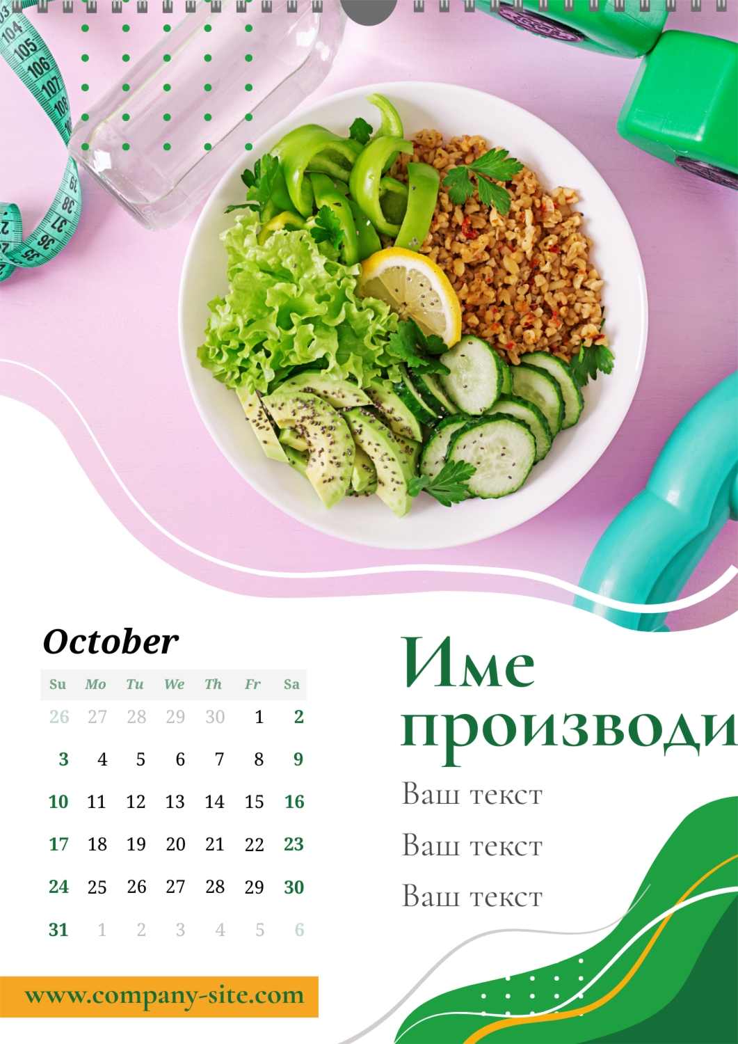 Безплатен шаблон за стенен календар за реклама на Сладкарница, Пекарна, Магазин за сладкиши. Създайте оформление "направи си сам" в онлайн конструктора на календари.