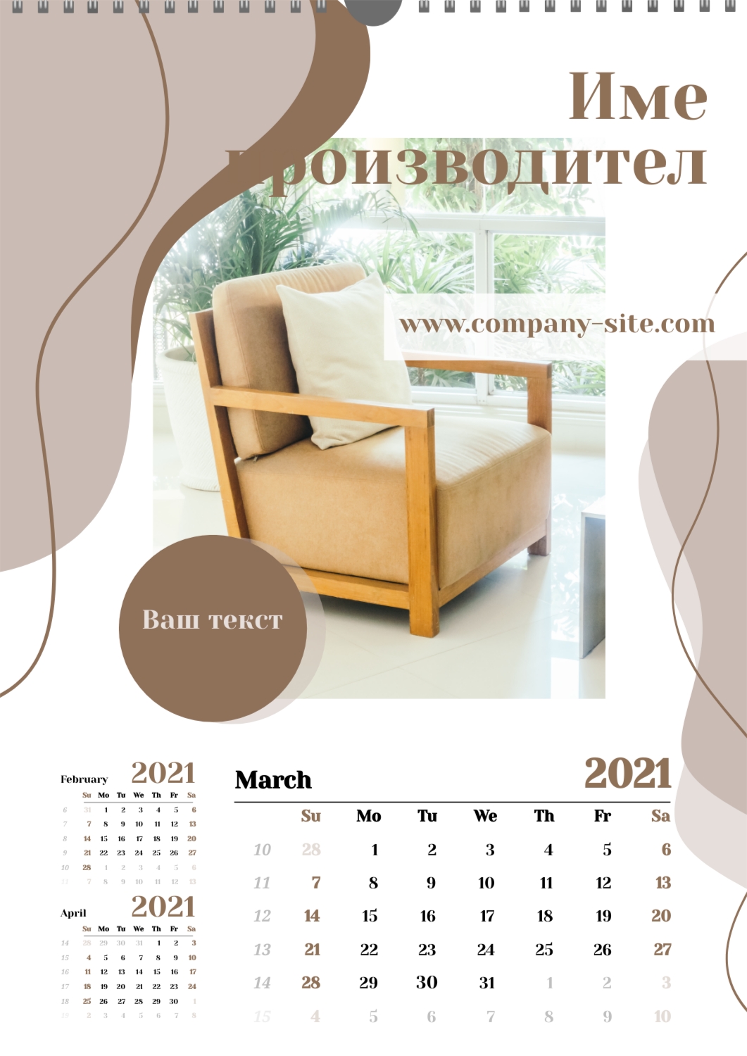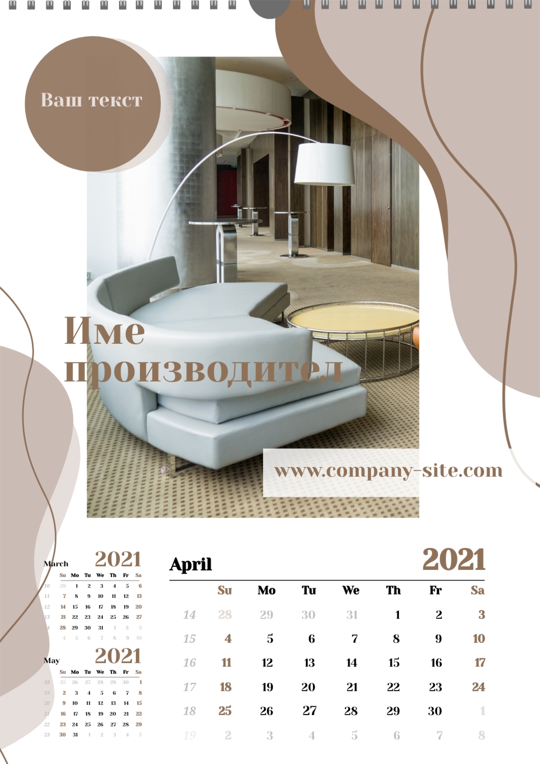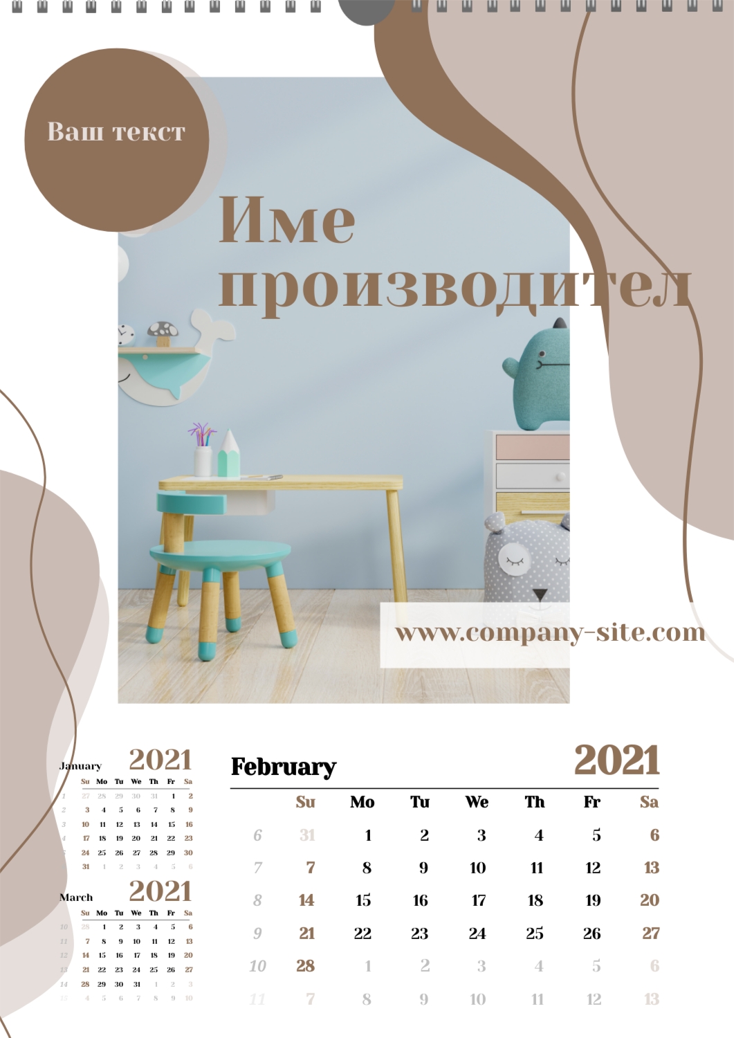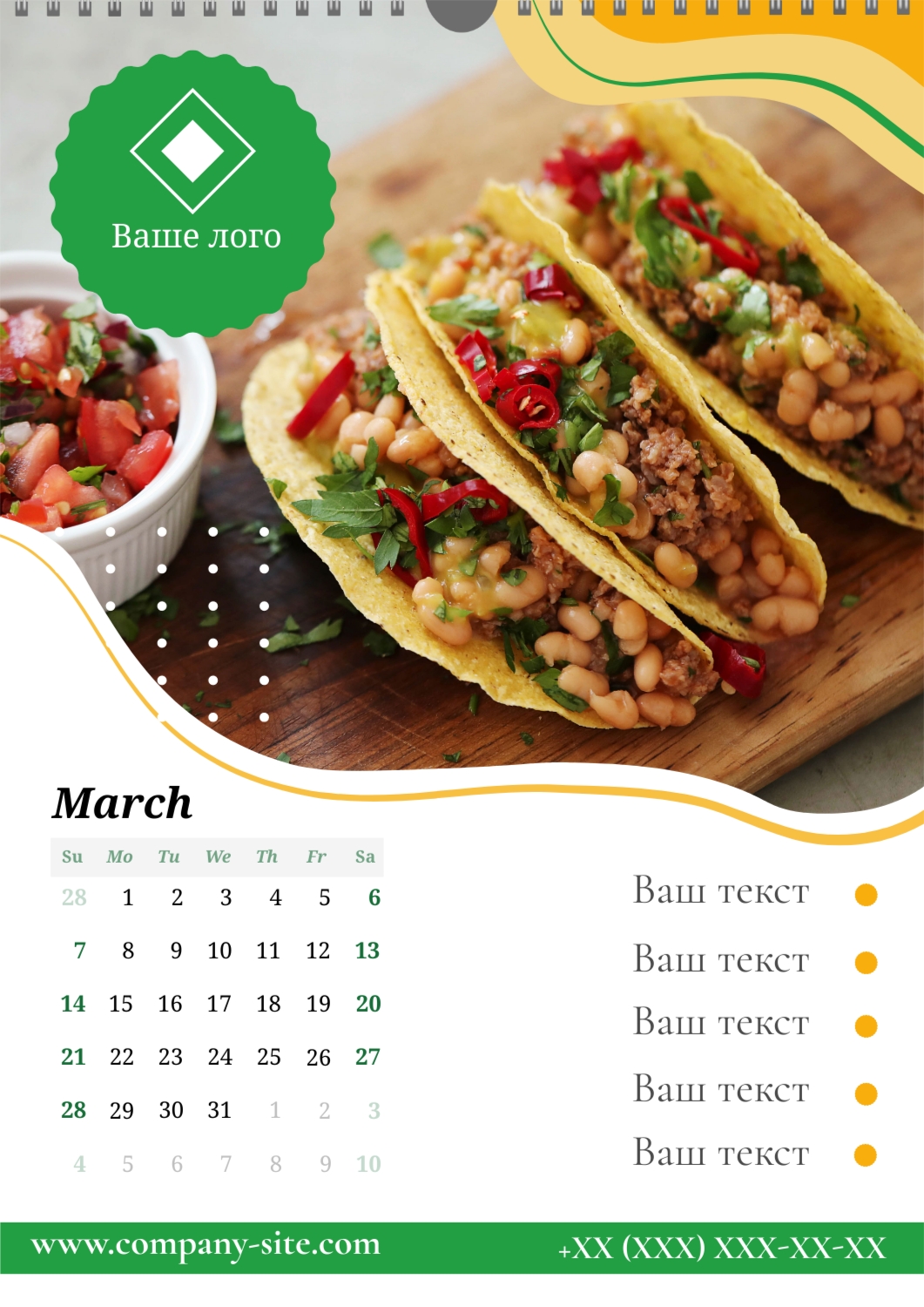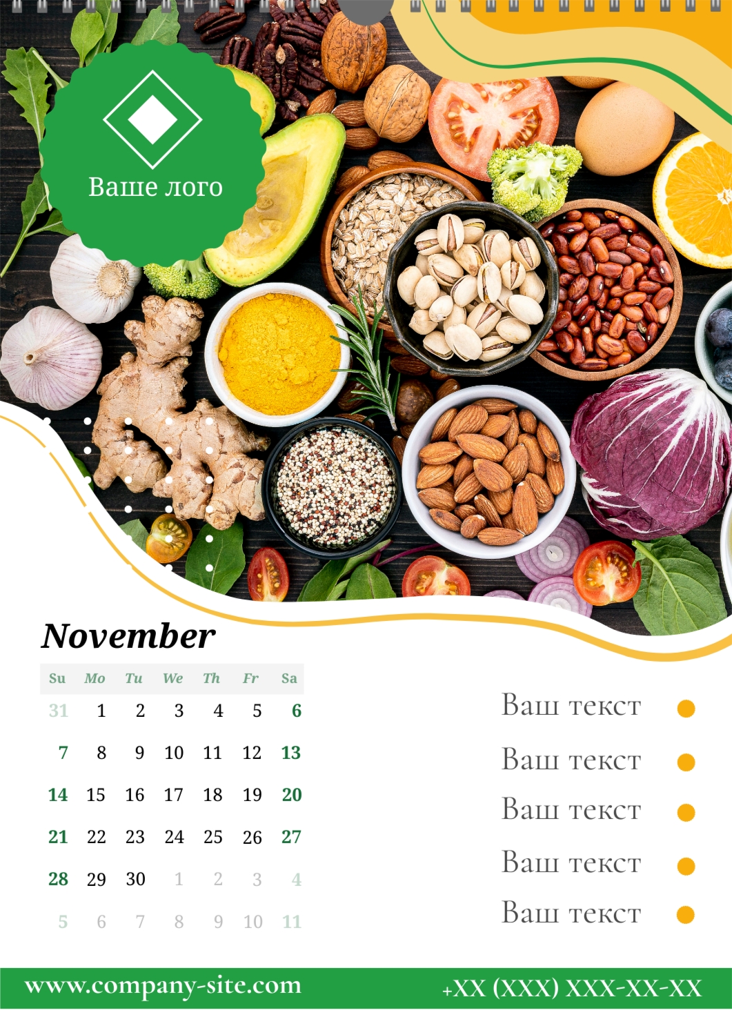 Безплатен шаблон за стенен календар за реклама на Сладкарница, Пекарна, Магазин за сладкиши. Създайте оформление "направи си сам" в онлайн конструктора на календари.