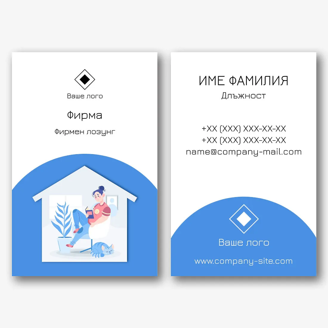 Безплатен шаблон за визитка на интериорен дизайнер, дизайнерска агенция, дизайнери. Създайте оформление със собствените си ръце в дизайнера на визитки.