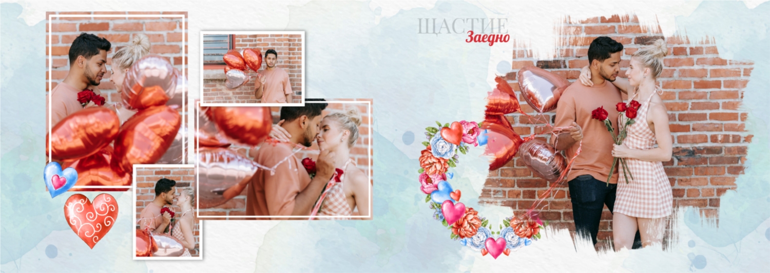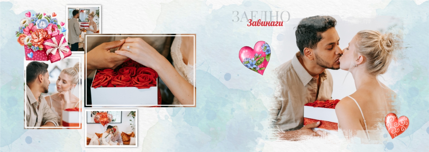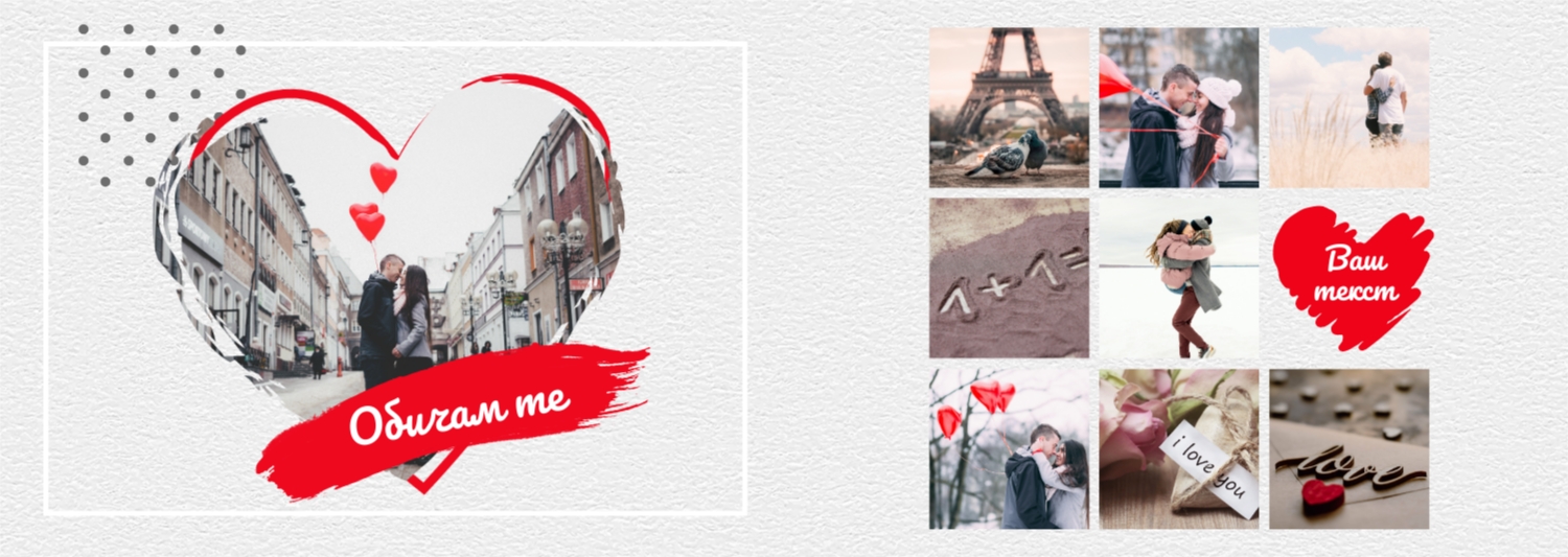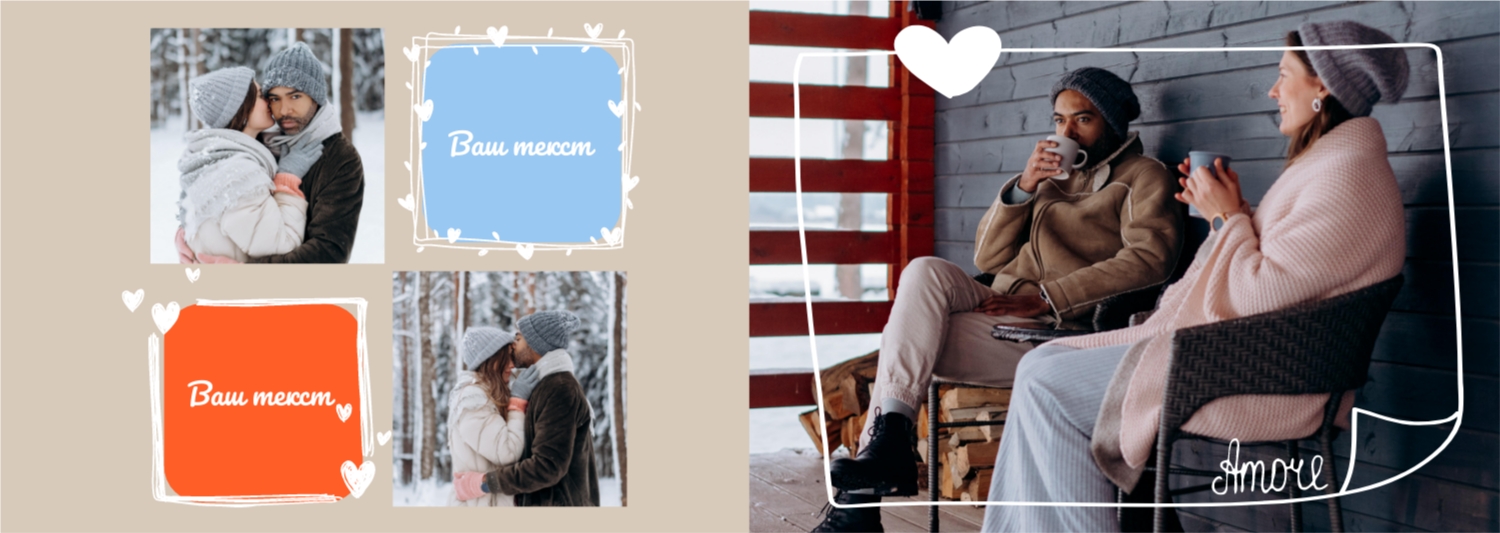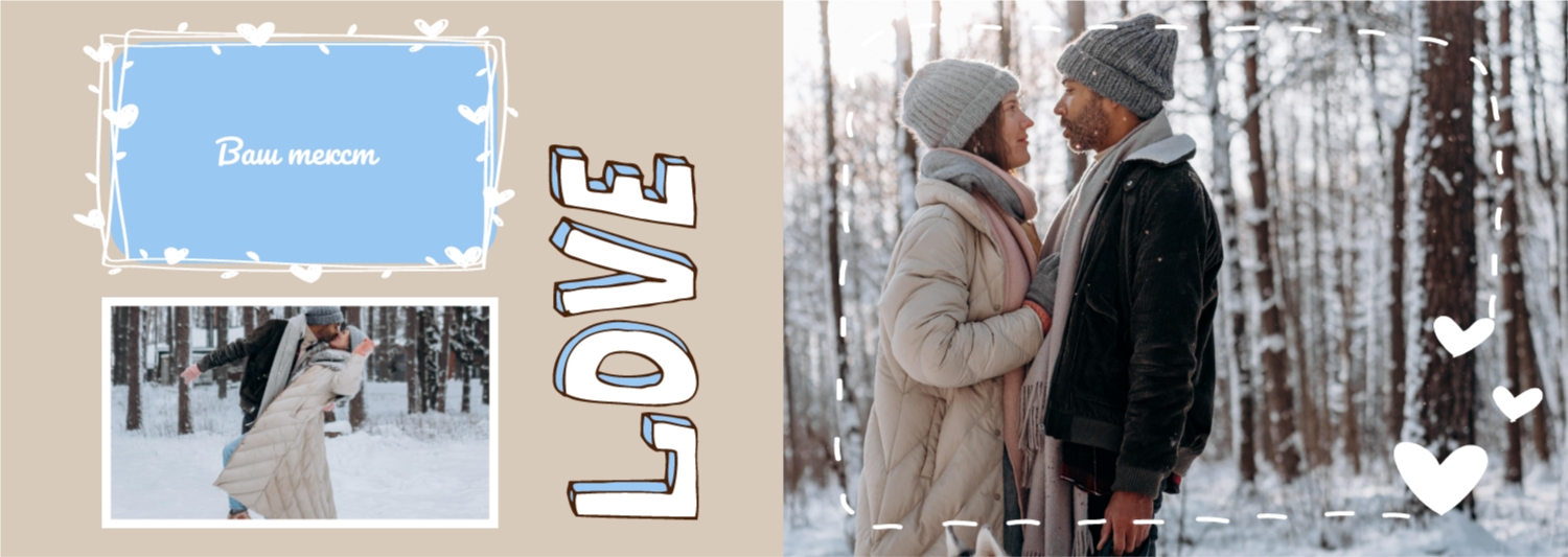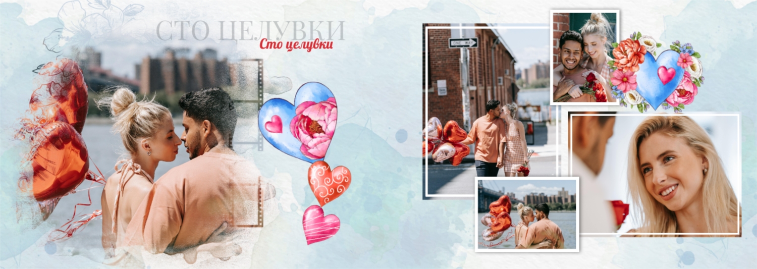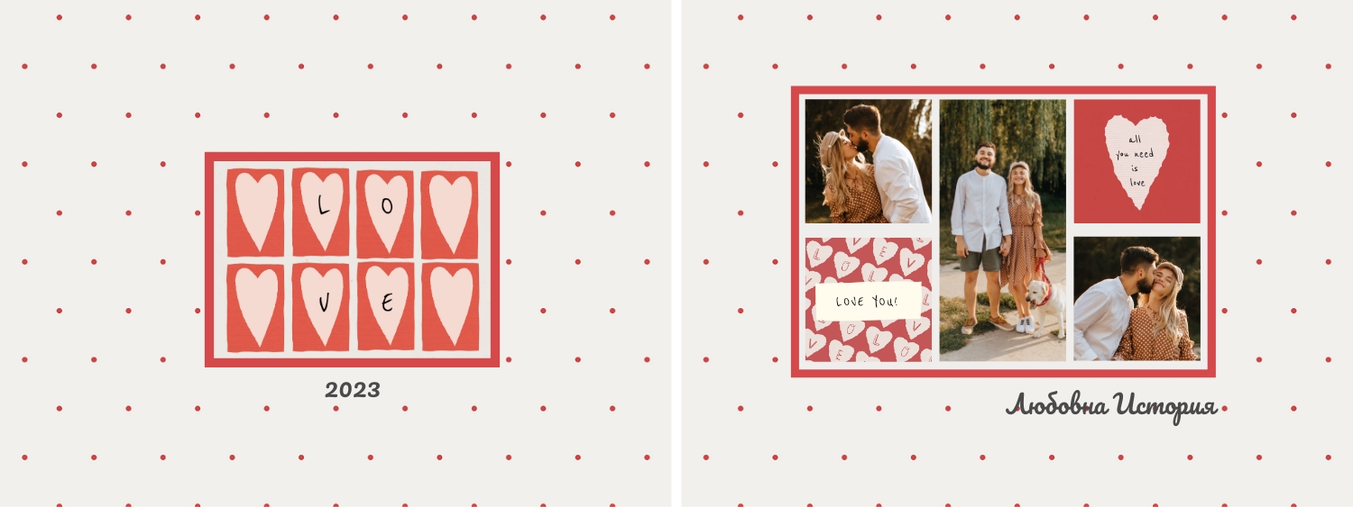 Безплатен шаблон за фотокнига с най-добрите спомени за влюбените. Създайте оформление със собствените си ръце в онлайн конструктора на фотокниги.