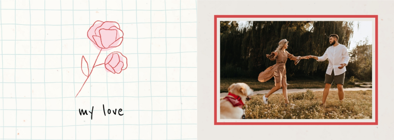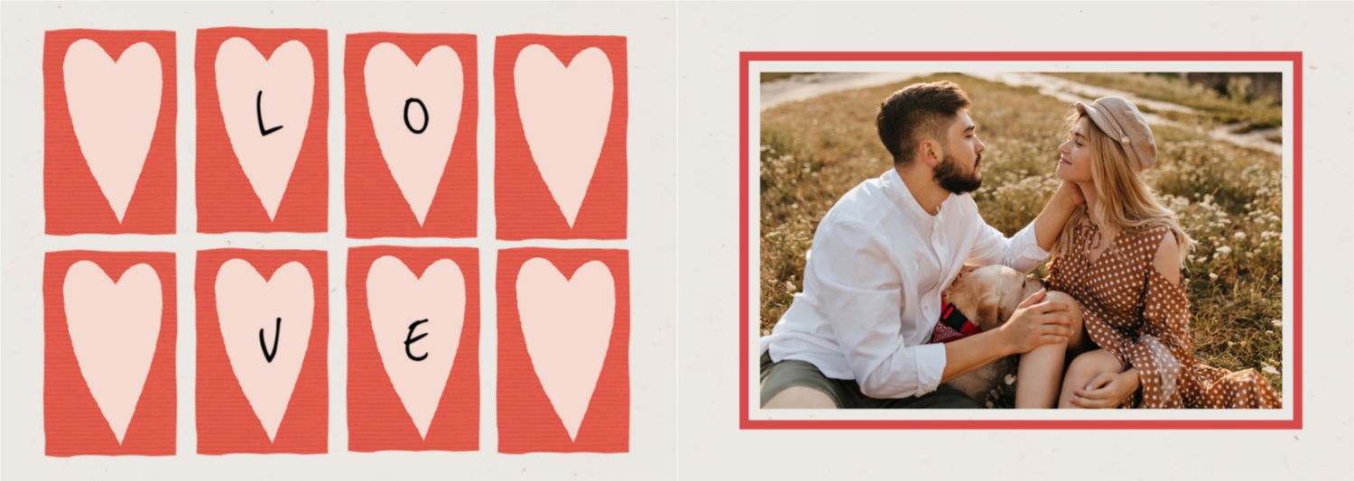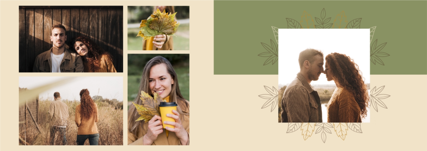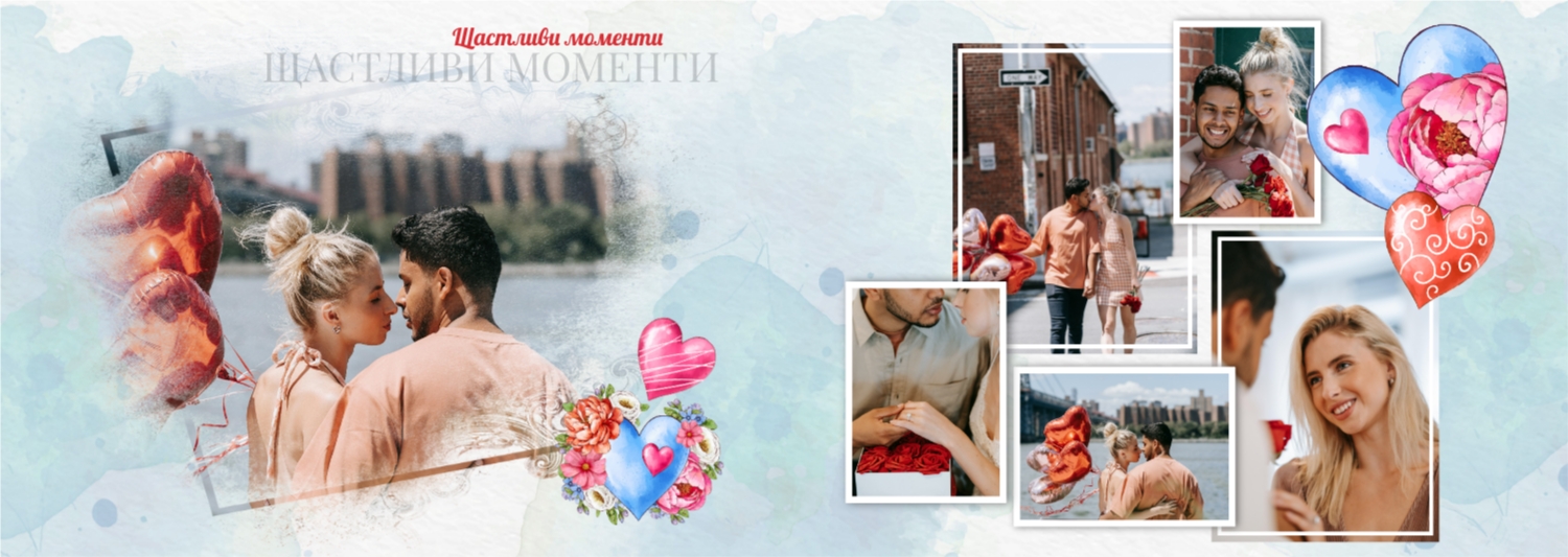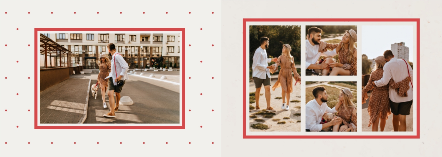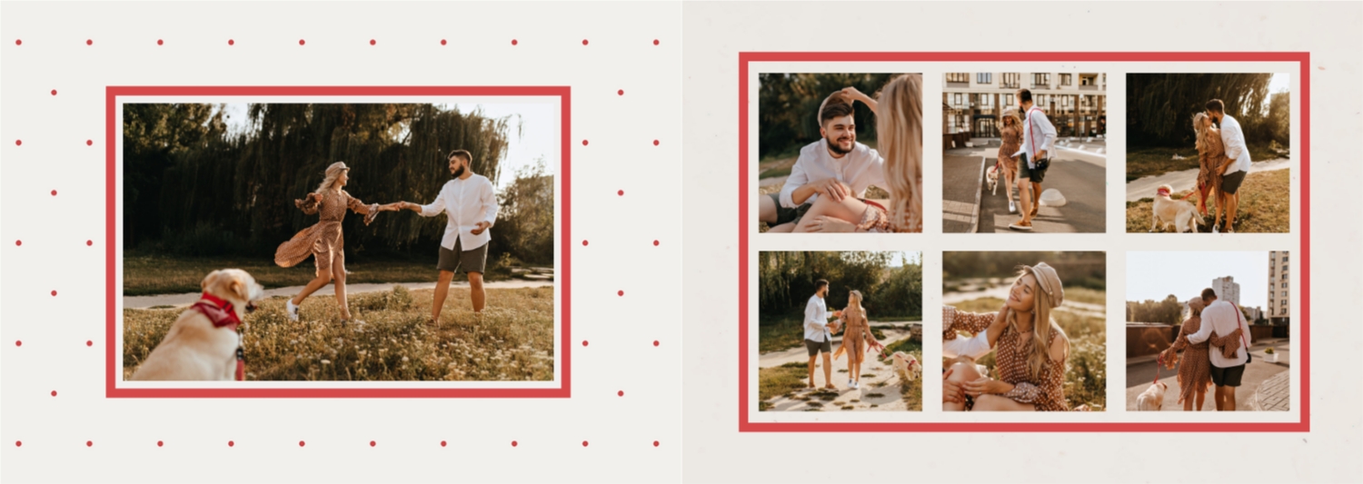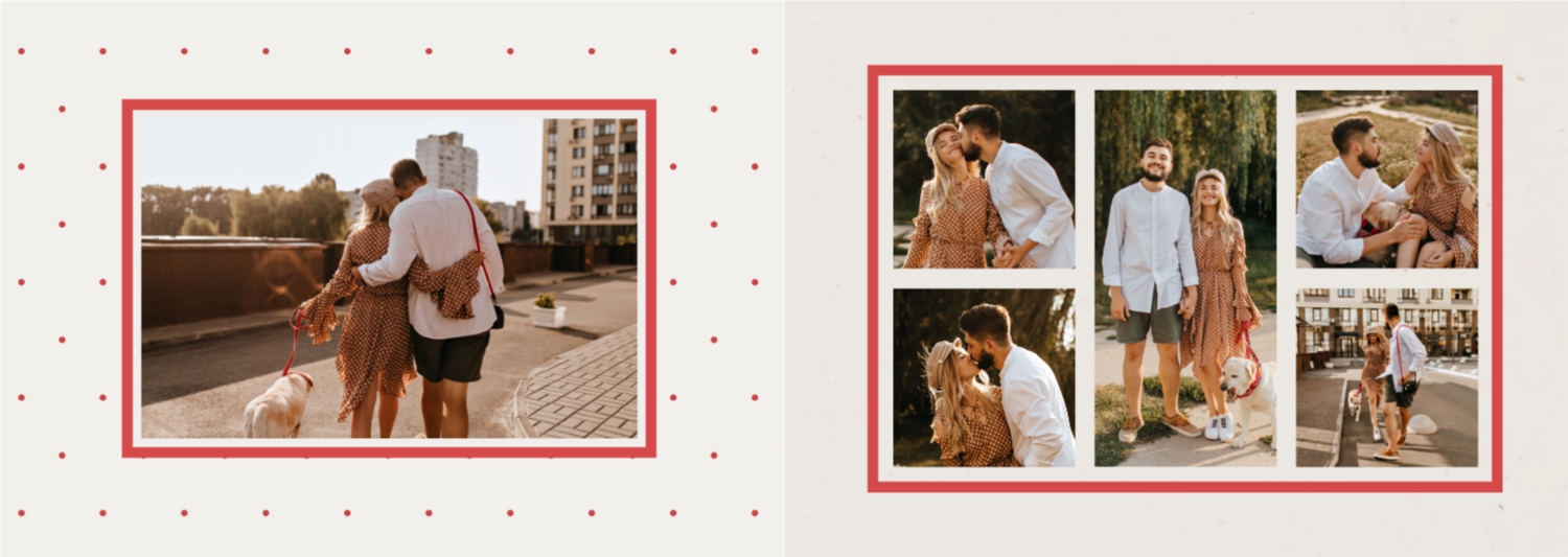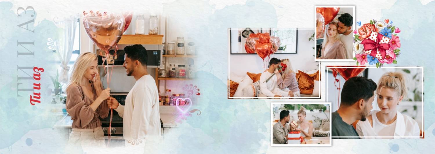 Безплатен шаблон за фотокнига с най-добрите спомени за влюбените. Създайте оформление със собствените си ръце в онлайн конструктора на фотокниги.