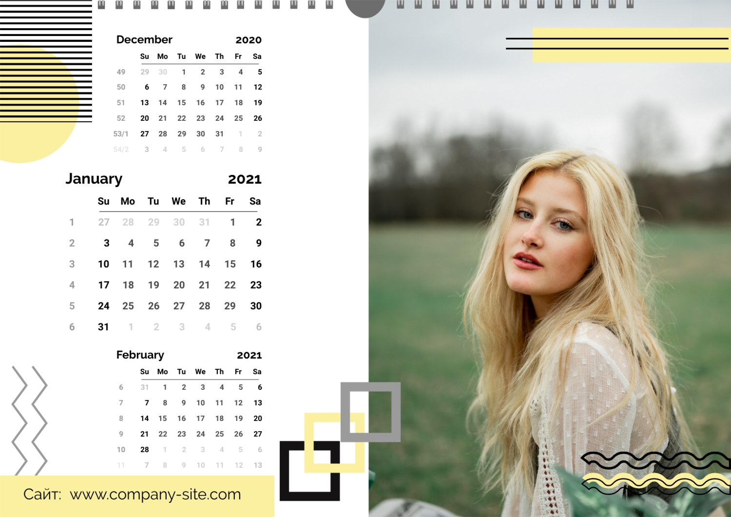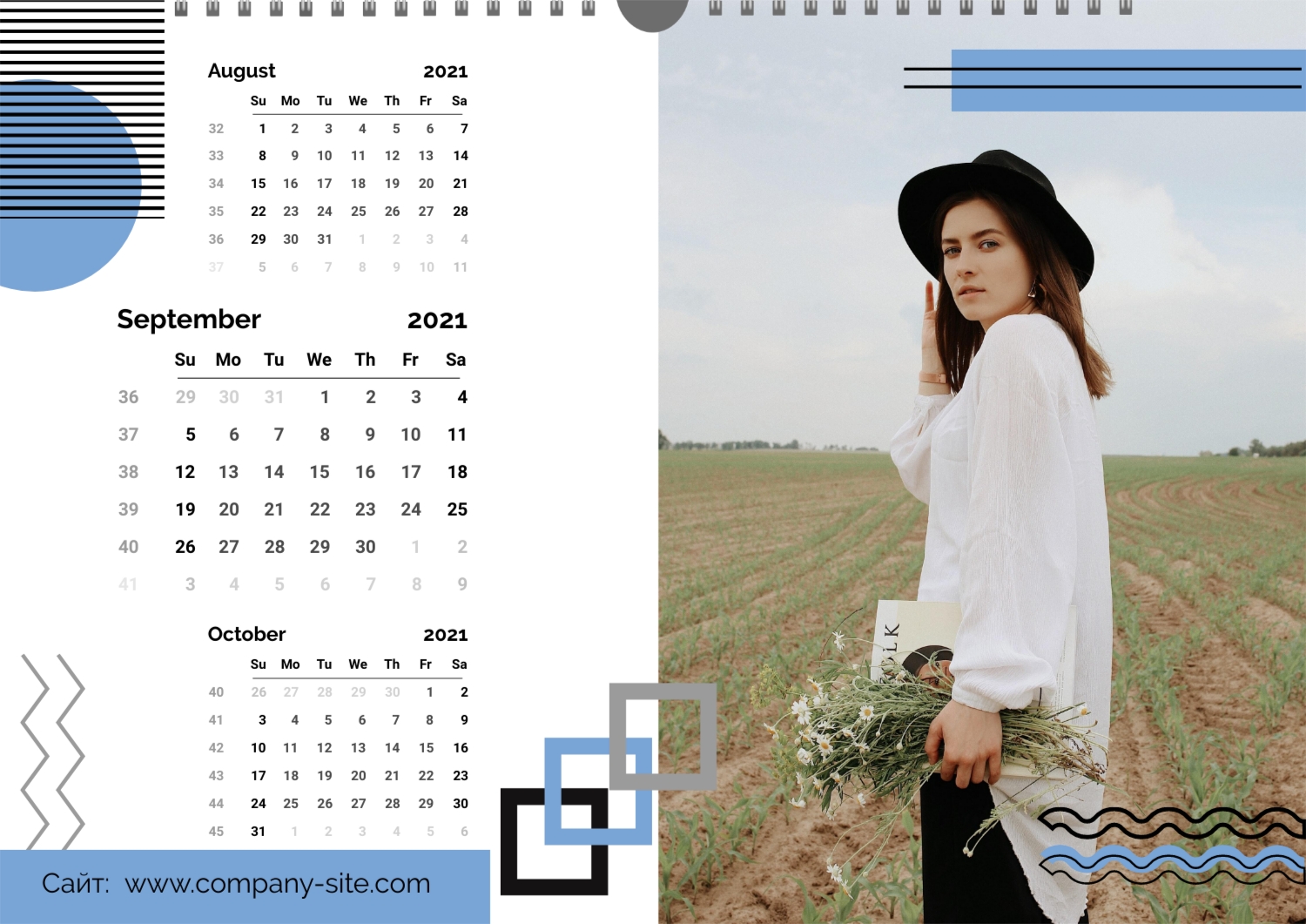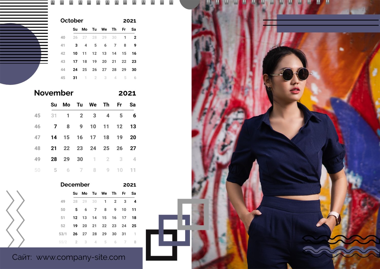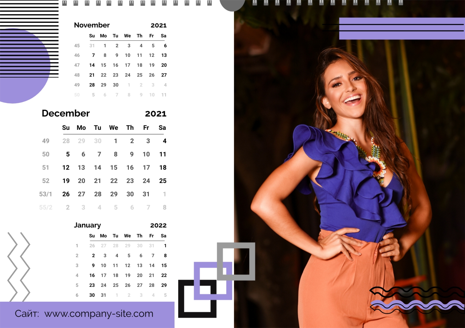 Безплатен шаблон за стенен календар-портфолио за фотостудии, фотографи и фотохудожници, с възможност за редактирането му в конструктора на календари.